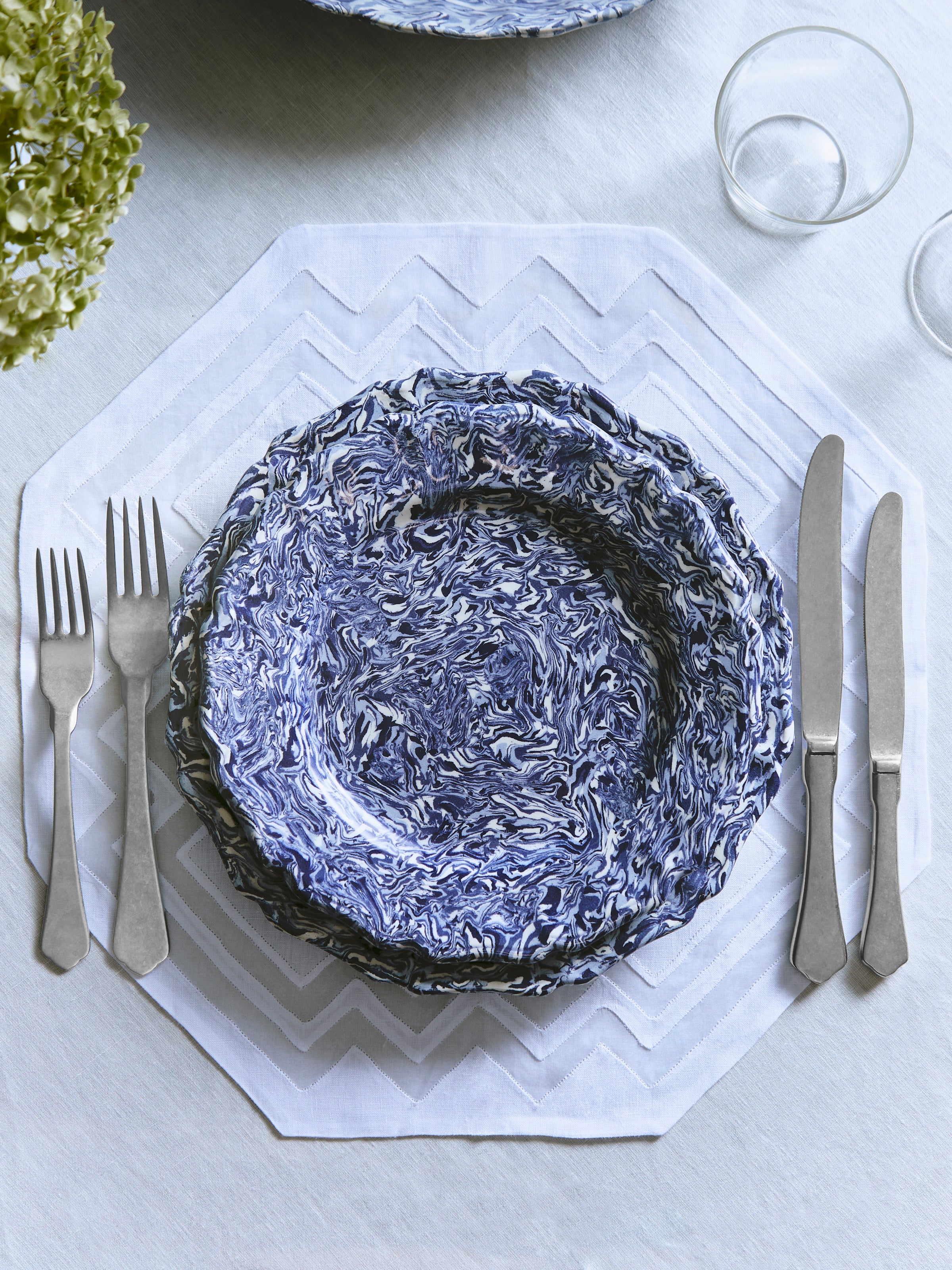 Aptware started to make waves during the mid-18th century. Named after Apt, a small town in Provence, France, the art form is inspired by the region's colored soils, which potters evoked through mixed and marbleized faïence in pretty palettes. The style—terre mêlée—simulates the natural marbling of stone by kneading different colors of clay together and pressing them into enchanting forms. Bold blends pave the way for vivid outcomes in our selection—each one hand-picked from a French workshop to form a series of serveware in unique shapes and shades.