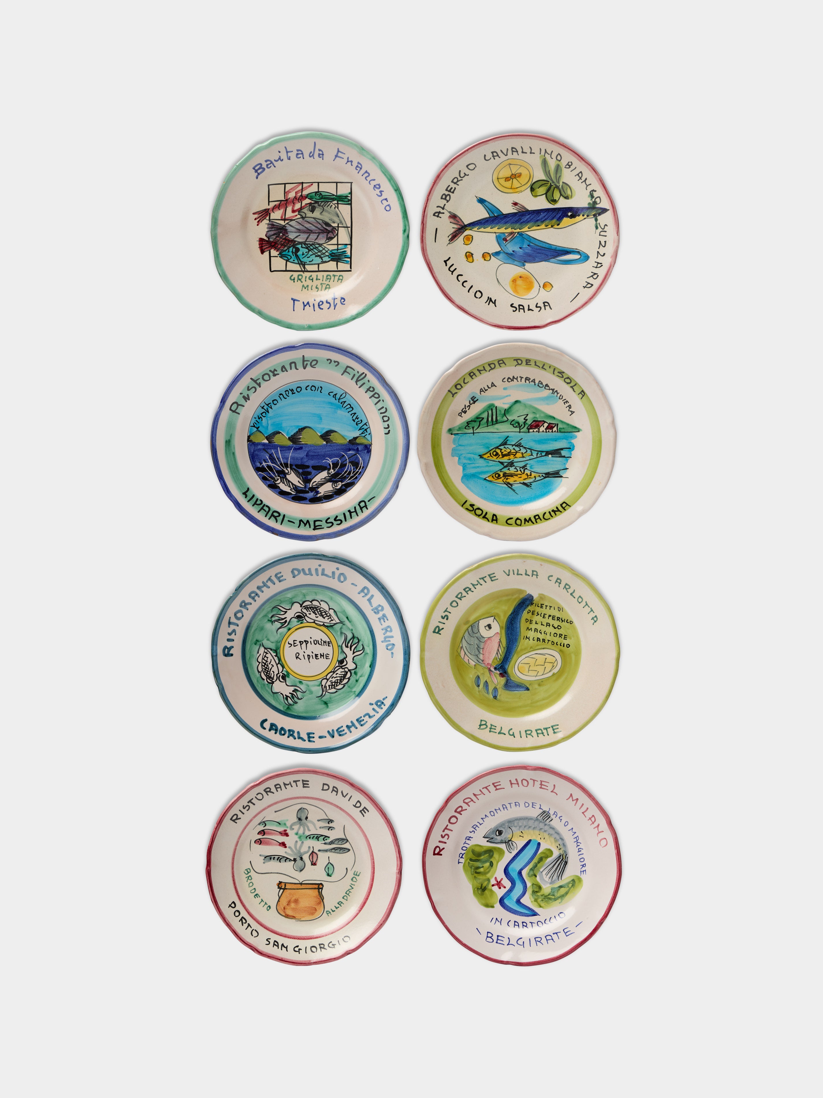 Antique and Vintage Mid-Century Italian Ceramic Restaurant Plates – 9in/22.5cm (Set of 8)