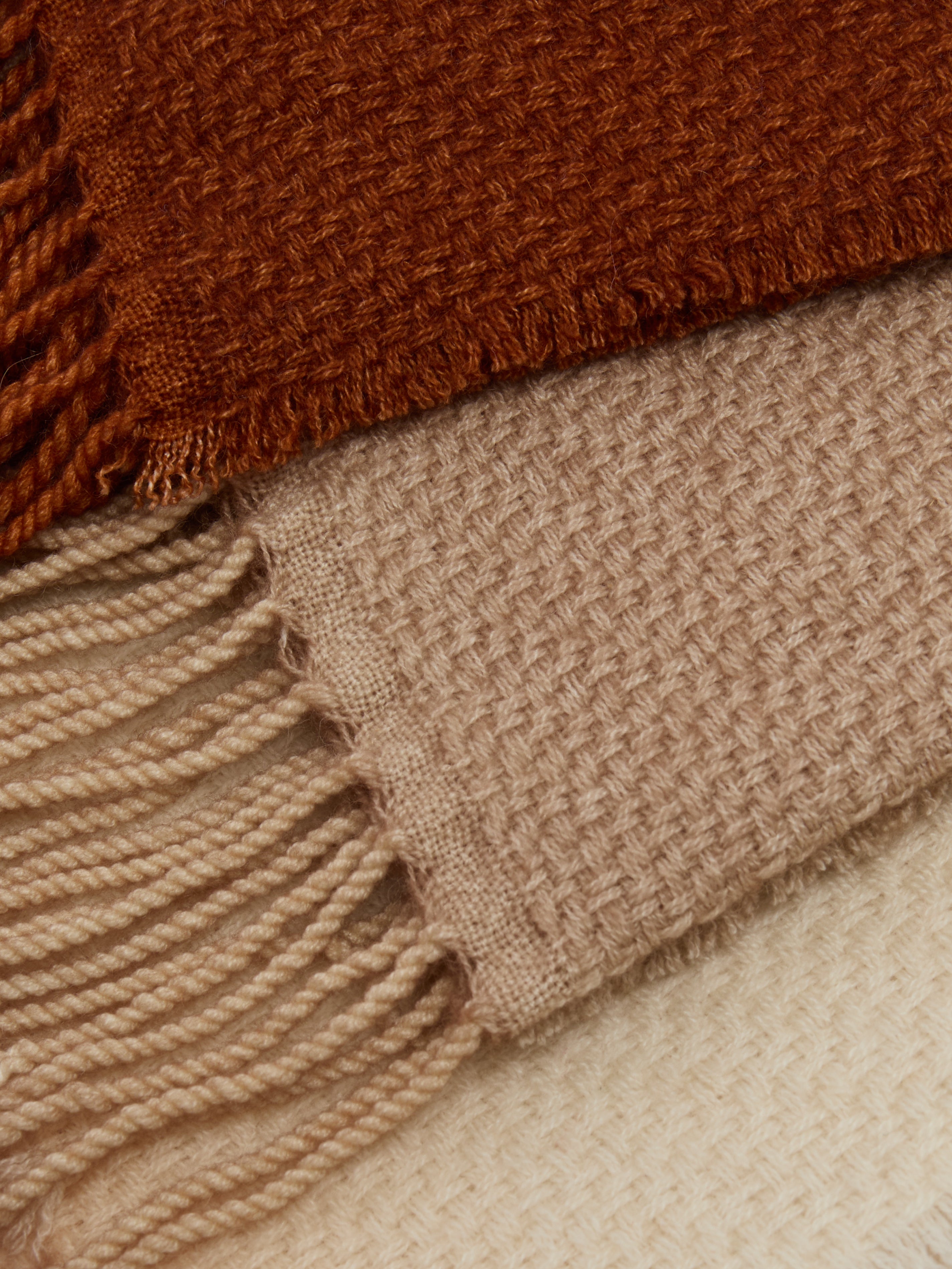 Tucked away in the foothills of the Italian Alps sits Alonpi, the cashmere cognoscenti with decades of experience under its belt. Helmed by design-lovers Alfredo Magliola and Gianpietro Tonel, this creative endeavor is guided by a shared appreciation of fine craft. In the ateliers dotted across Como and Biella, expert artisans fuse the traditional techniques of these two cities with innovative technical enhancements. All fabrics are produced by parent company Achille Pinto in Casnate con Bernate, where every detail—from embroidery to borders and fringing—is carried out by hand. Each craft tale follows the order of spinning, weaving, and finishing, with these steps often entertaining age-old arts such as screen-printing and fringe-knotting.