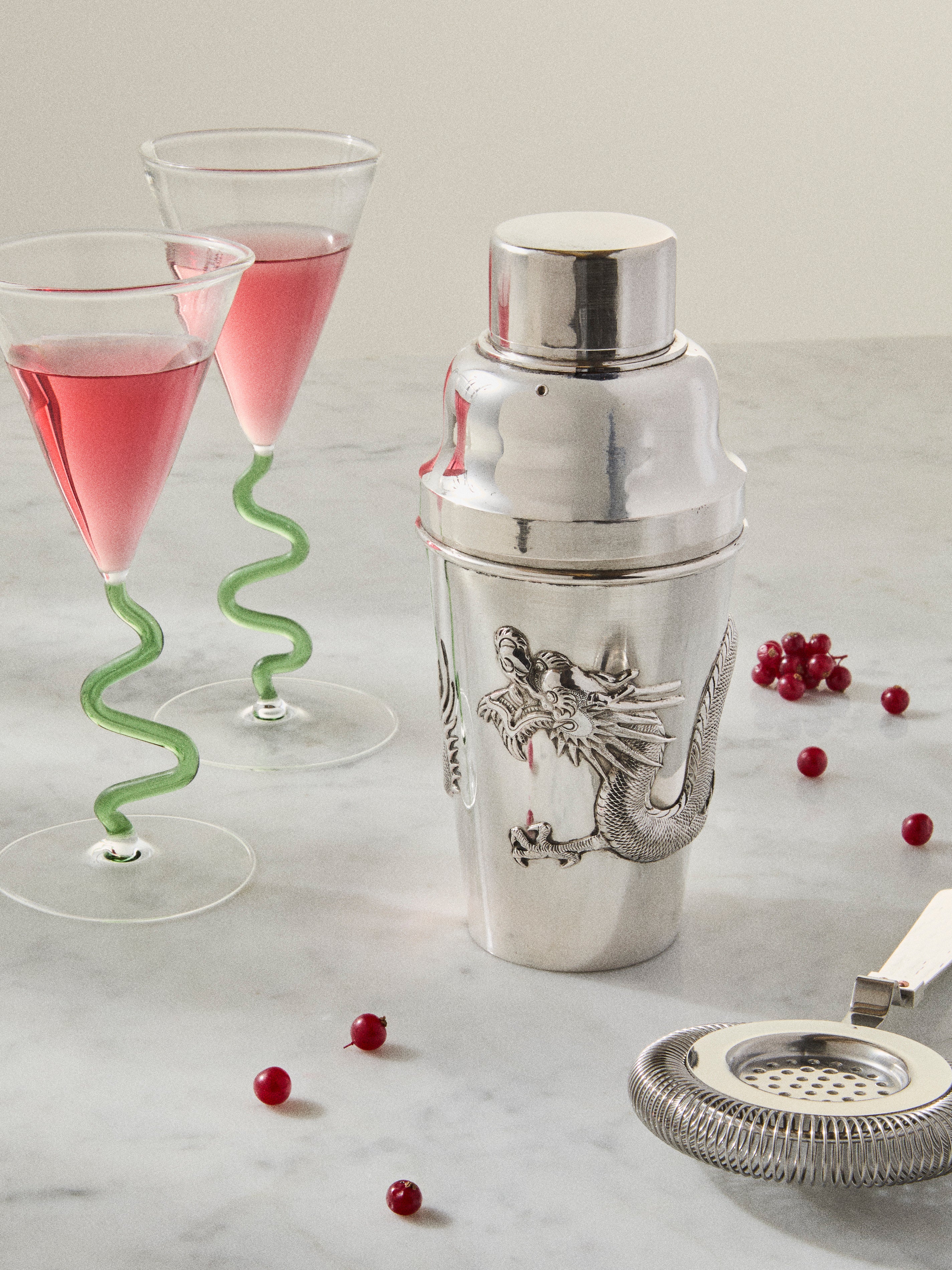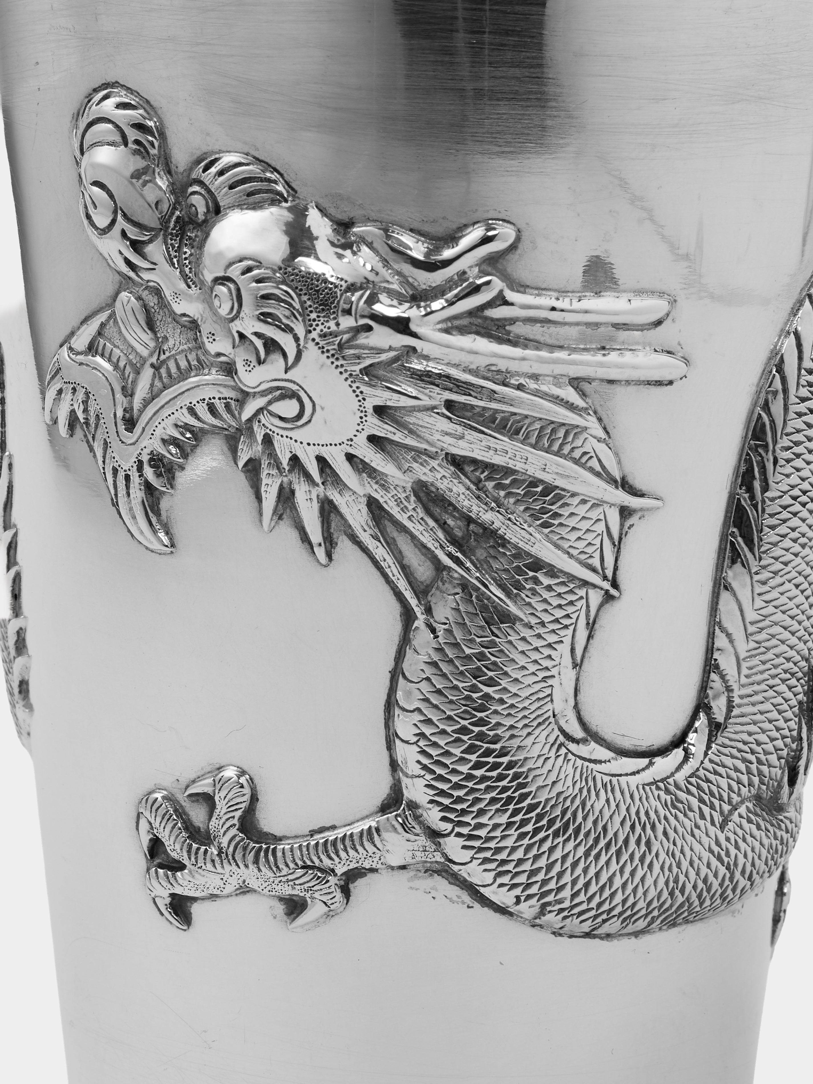 Antique and Vintage 1930s Solid Silver Dragon Cocktail Shaker