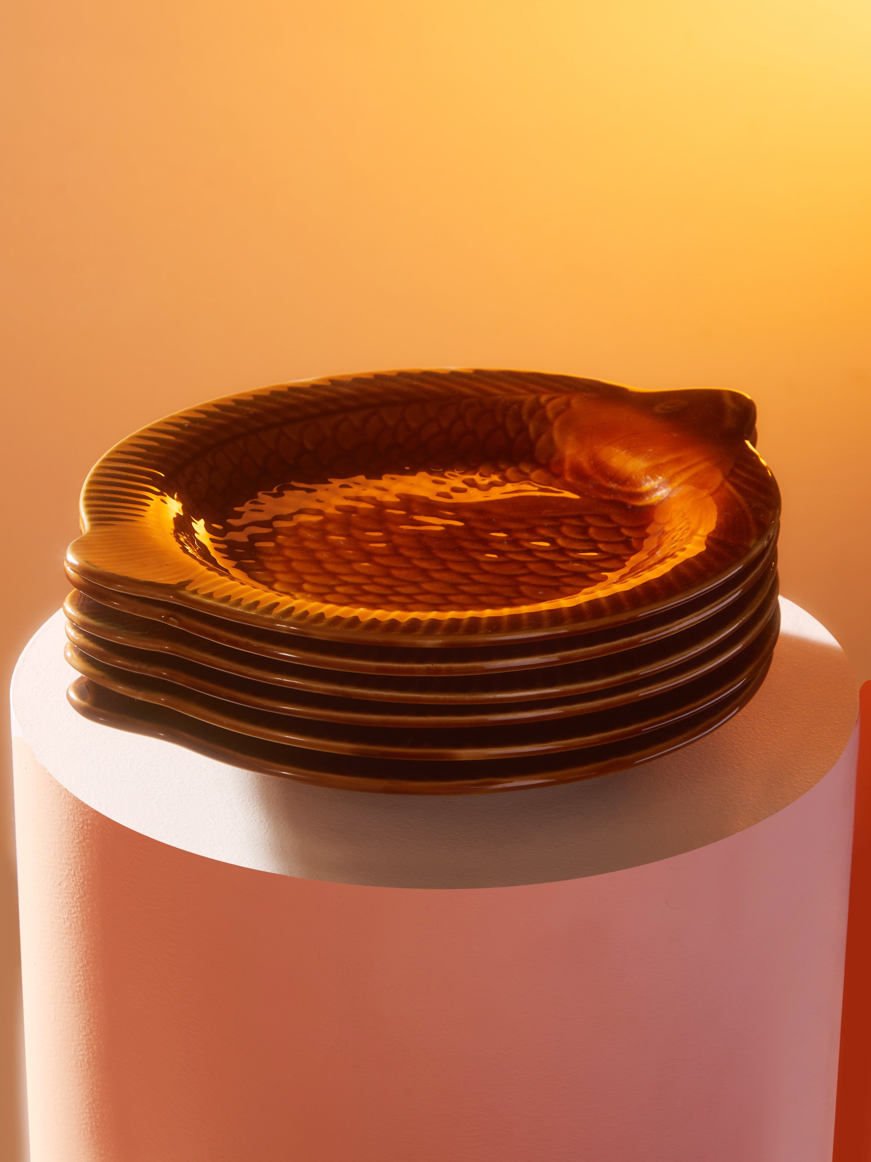 Antique and Vintage 1950s Sarreguemines Ceramic Fish Dinner Plates – 9.5in/24cm (Set of 6)
