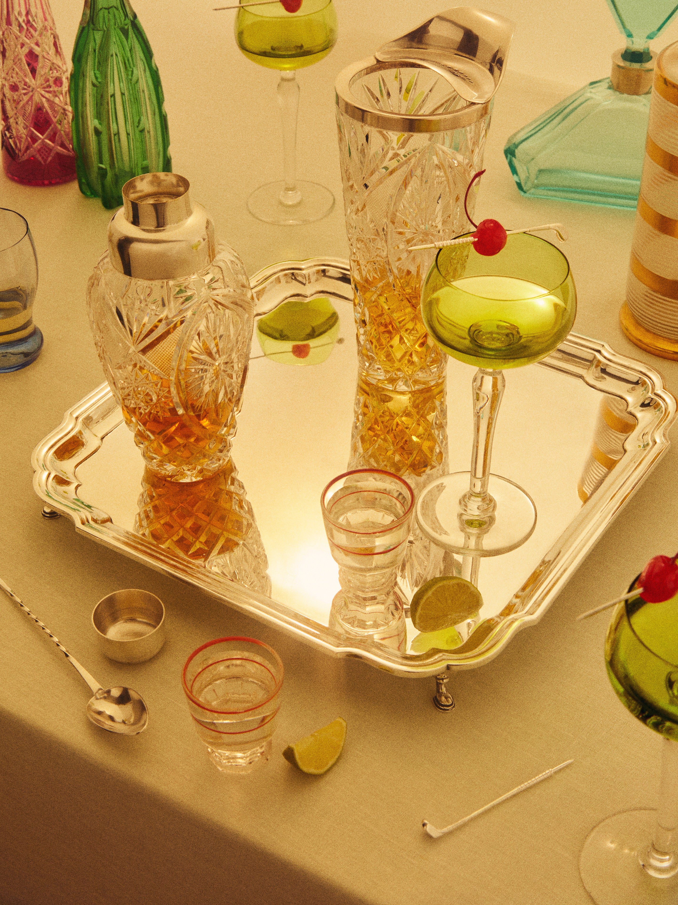 Antique and Vintage 1960s Cut Crystal & Silver-Plated Cocktail Set