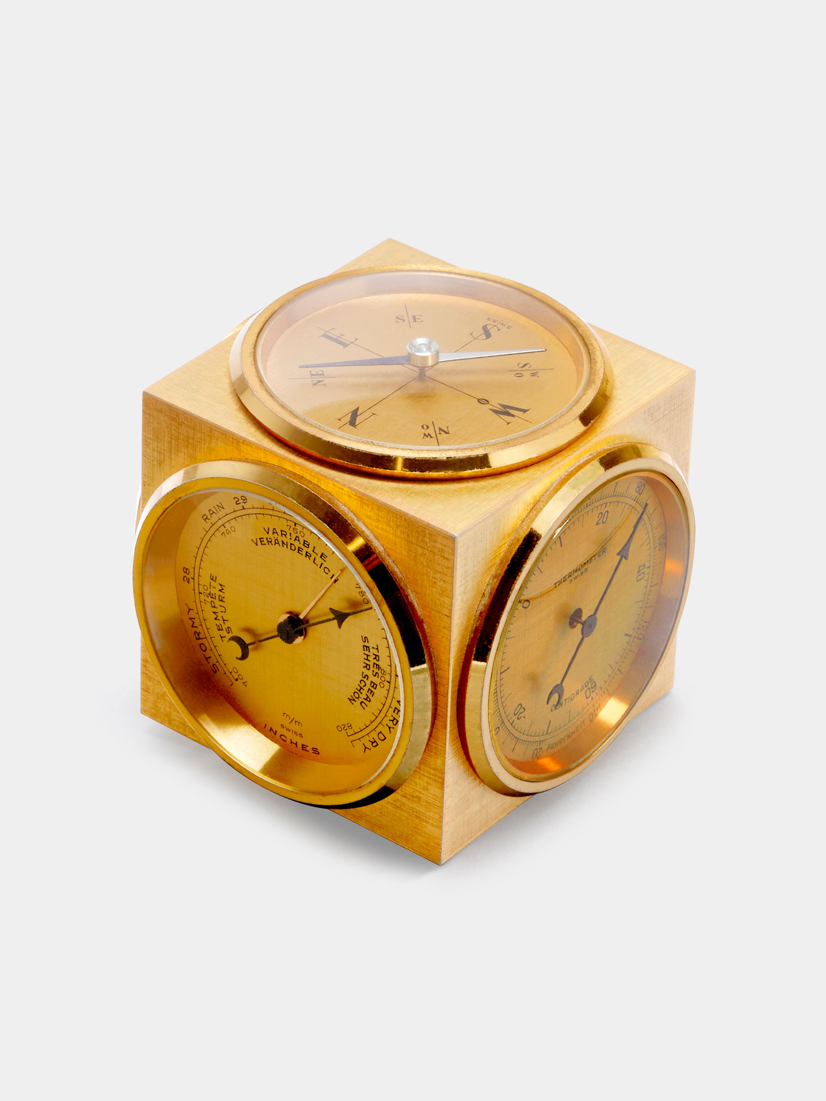 Antique and Vintage 1960s Guilded Gold Leaf Brass Weather Station