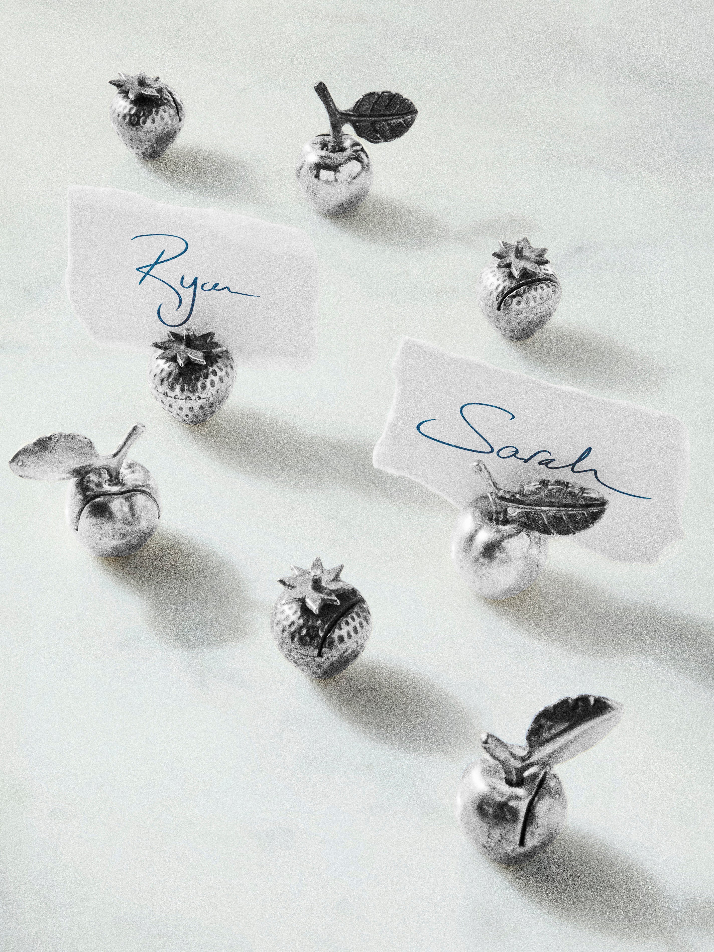 Antique and Vintage Mid-Century Silver-Plated Fruits Place Card Holders (Set of 8)