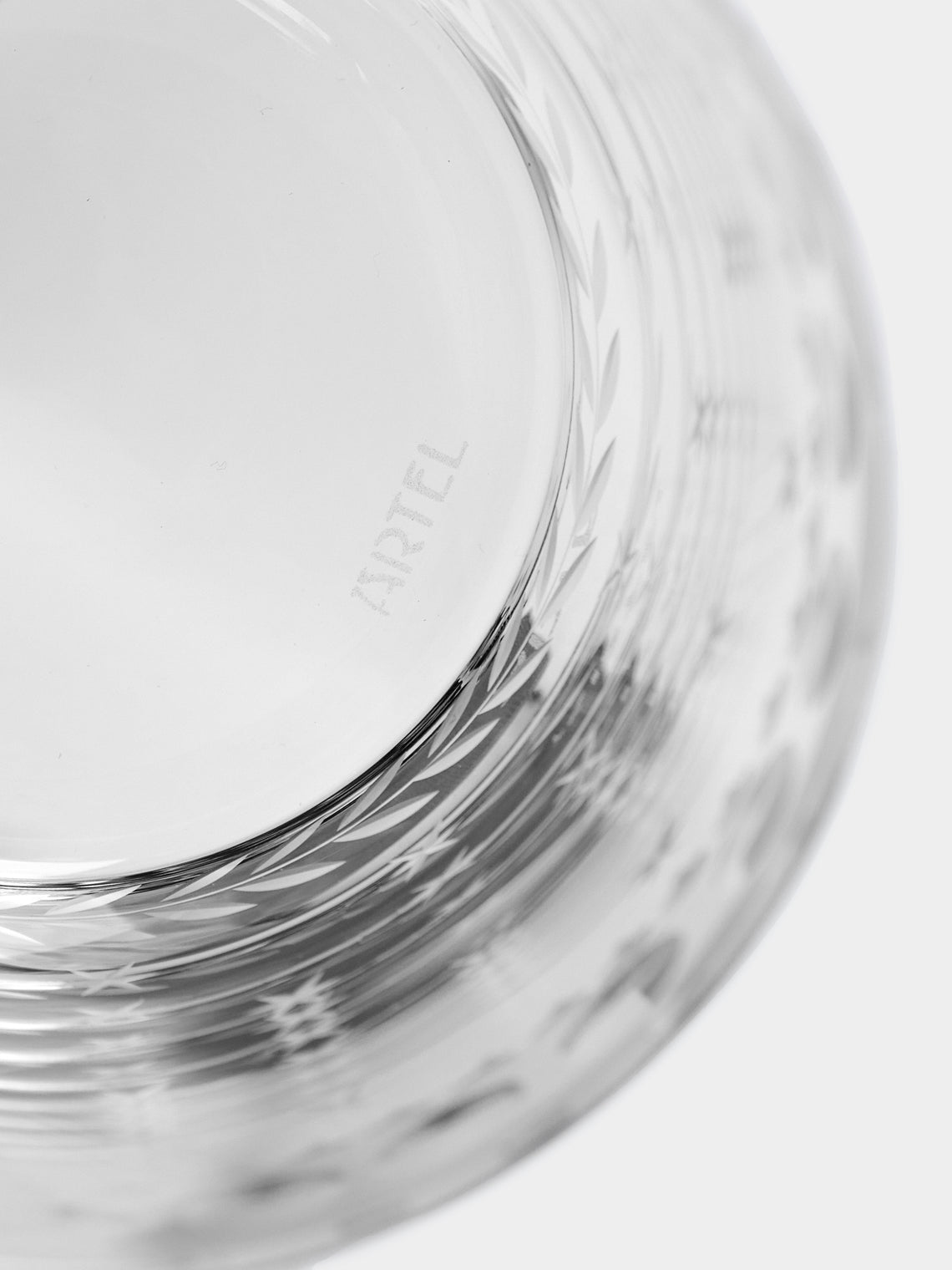 Founded in 1998 by American designer Karen Feldman, Artěl is globally recognized for its handcrafted premium crystal and preservation of traditional production methods, originally practiced by an early-20th-century collective of Czech artisans. From "free-hand" engraving and glass-cutting, to gilding and impeccable hand-painting, each piece is meticulously made by hand, and no two are exactly alike.