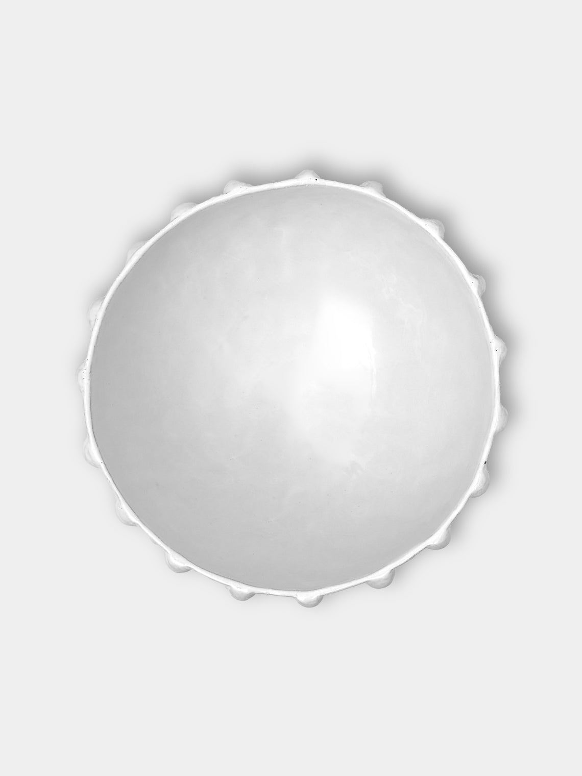 Old friends Ivan Pericoli and Benoît Astier de Villatte met at the prestigious École des Beaux-Arts in Paris, leading to the launch of Astier de Villatte in 1996. Since the beginning, they’ve been charmed with ideas of the imperfect, finding beauty in uneven glazes, dark pockmarks, and subtle ripples. But these details only emphasize the craft tale behind each piece—stories that start with a single sheet of black terracotta clay extracted from Parisian quarries. They follow traditional Roman methods to bring each "dream object" to life, shaping and inscribing each one with the potter’s initials and finishing with a high-shine white porcelain glaze.