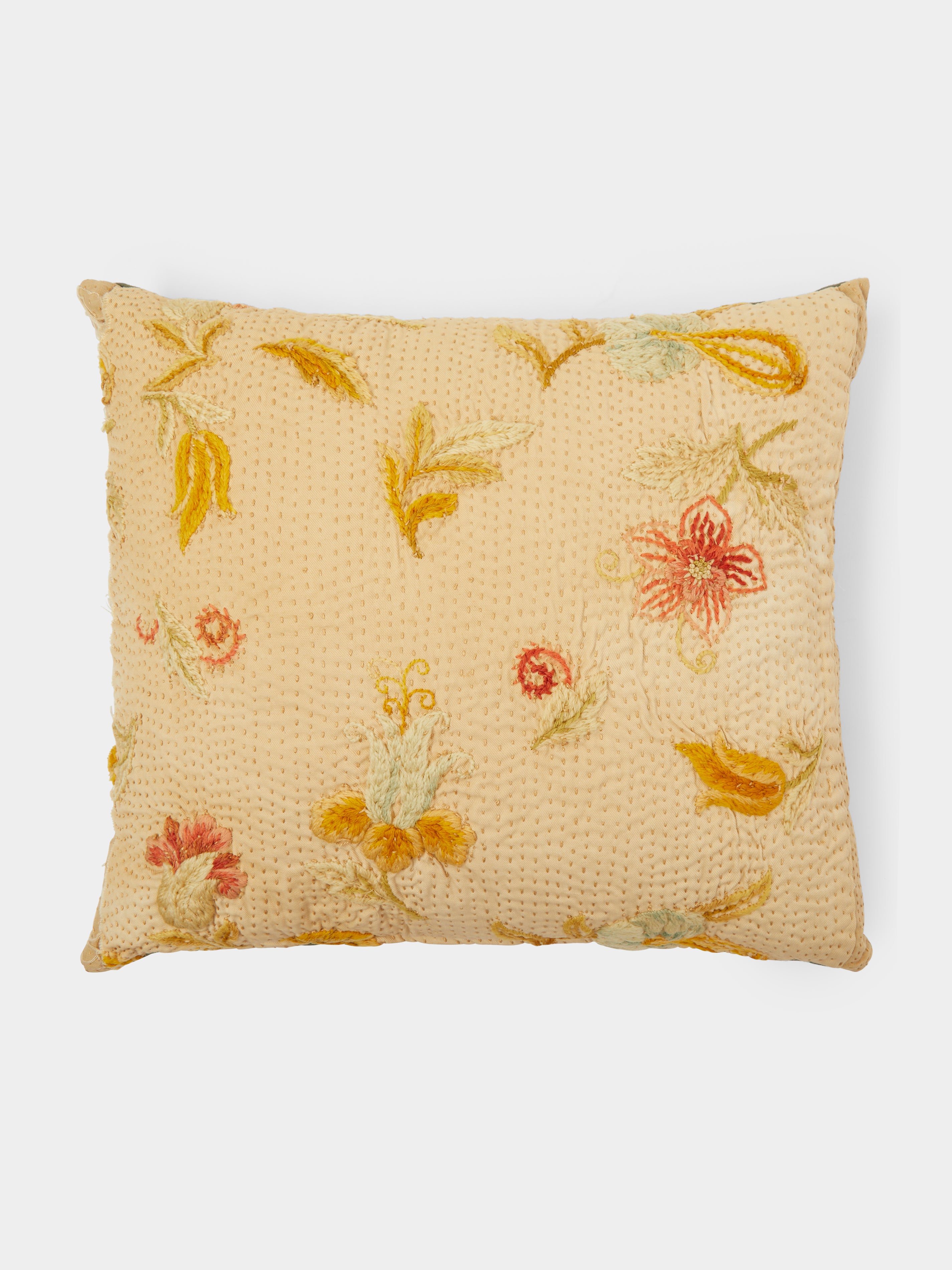 By Walid 19th-Century Embroidered Wool and Linen Cushion (15.5in/40cm)
