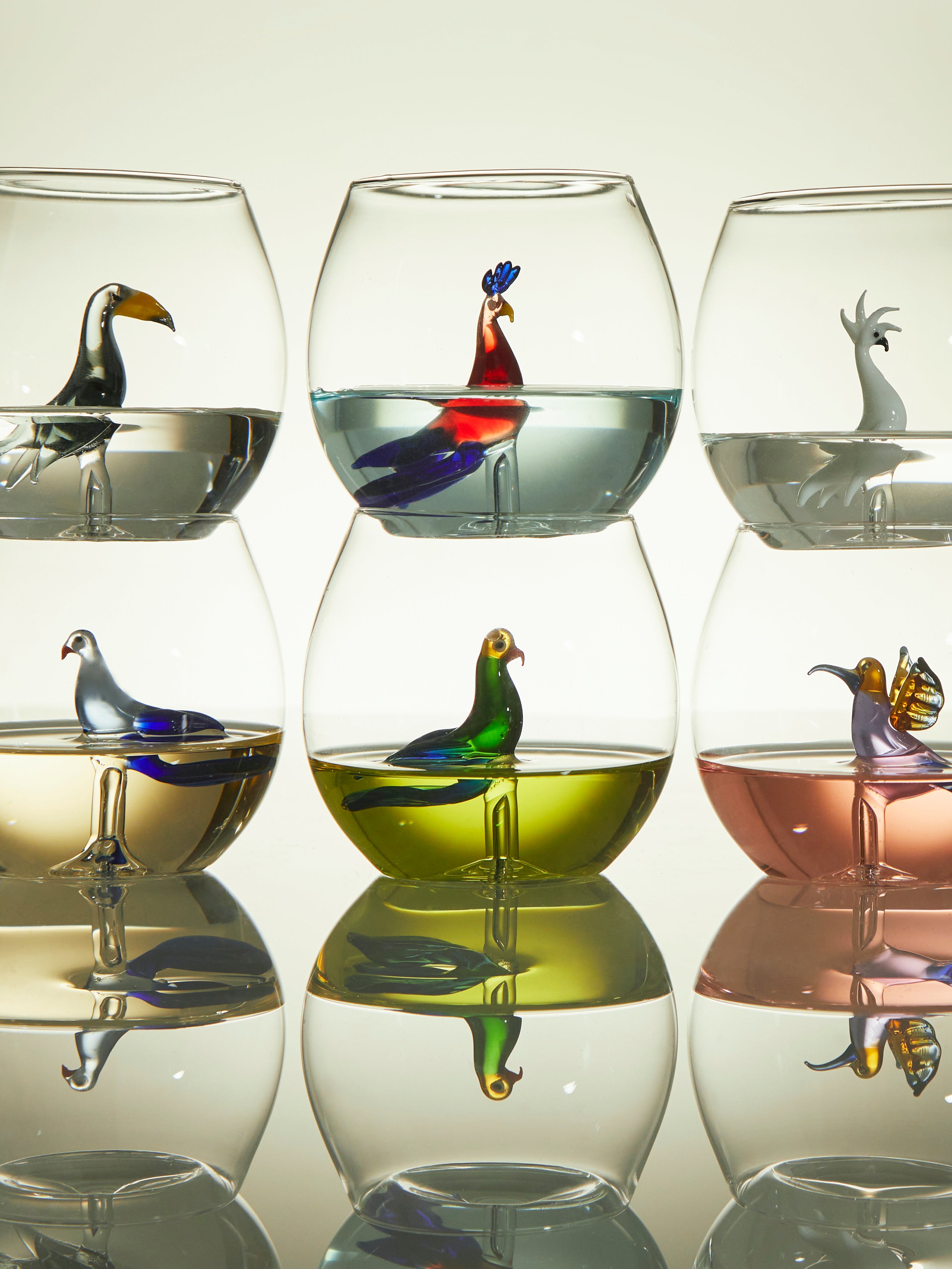 Casarialto Tropical Birds Hand-Blown Murano Glass Tumblers (Set of 6)