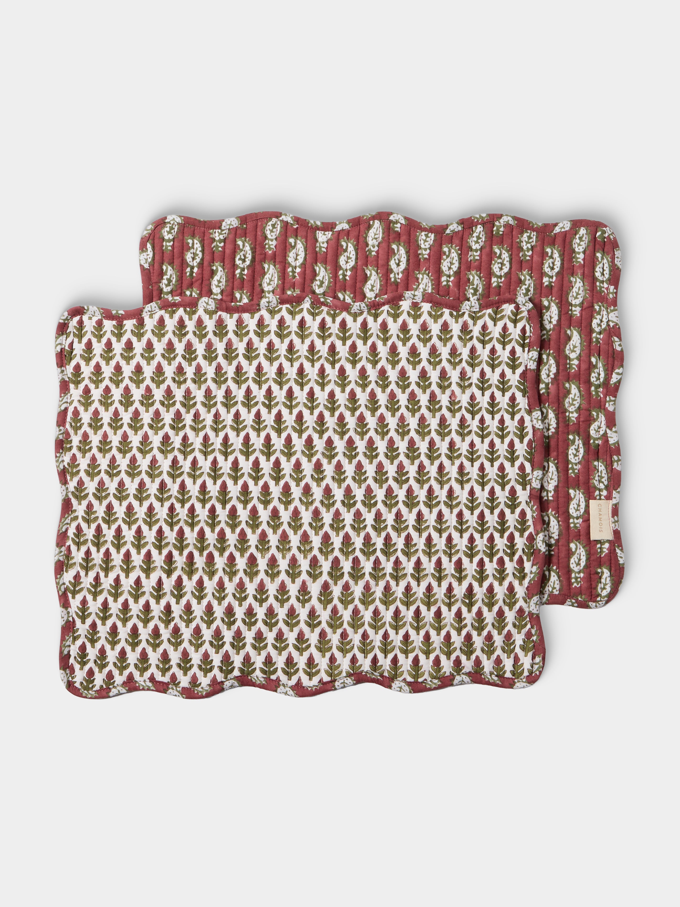 Chamois Diamond & Fan Block-Printed Cotton Placemats (Set of 4)