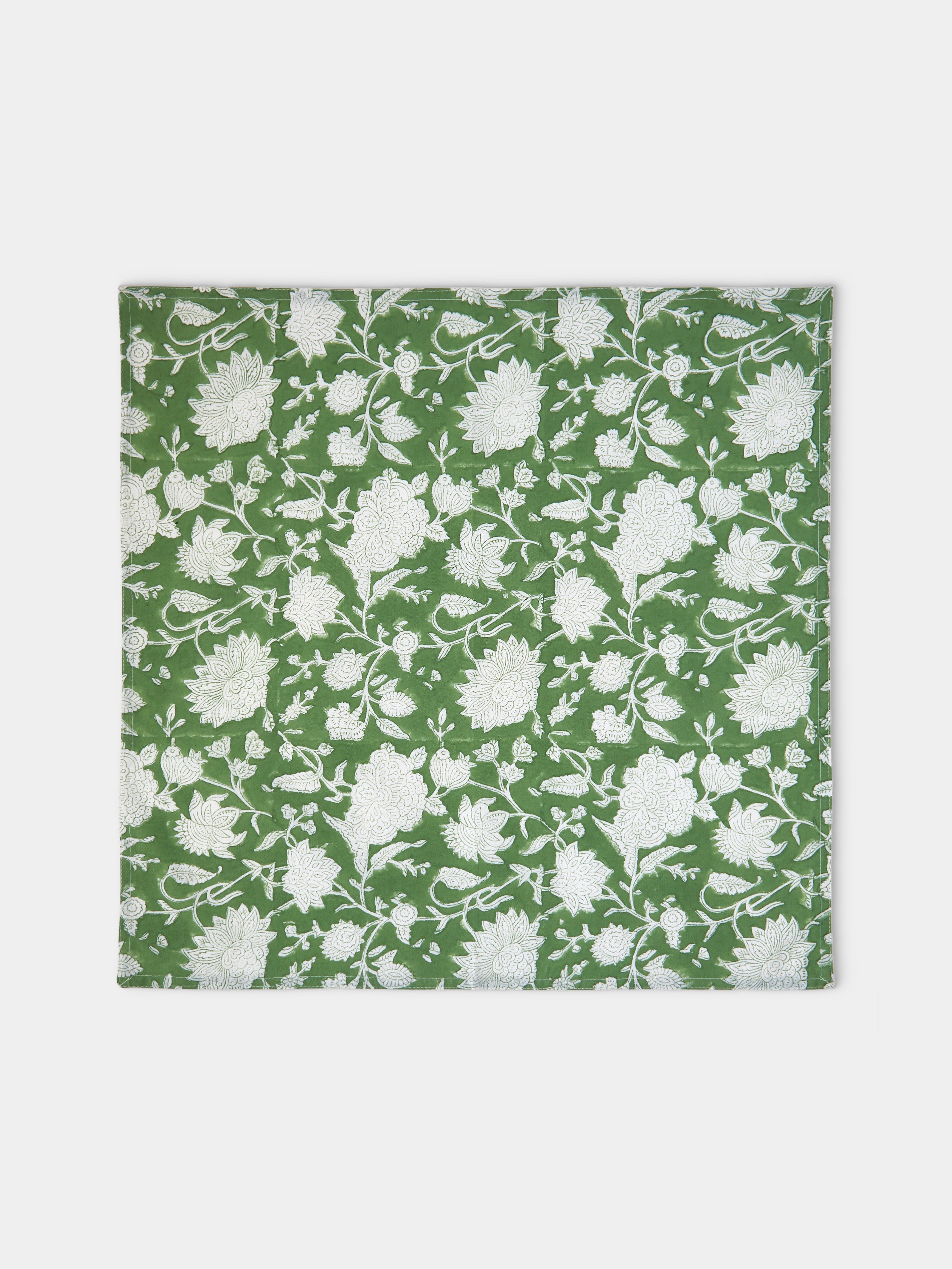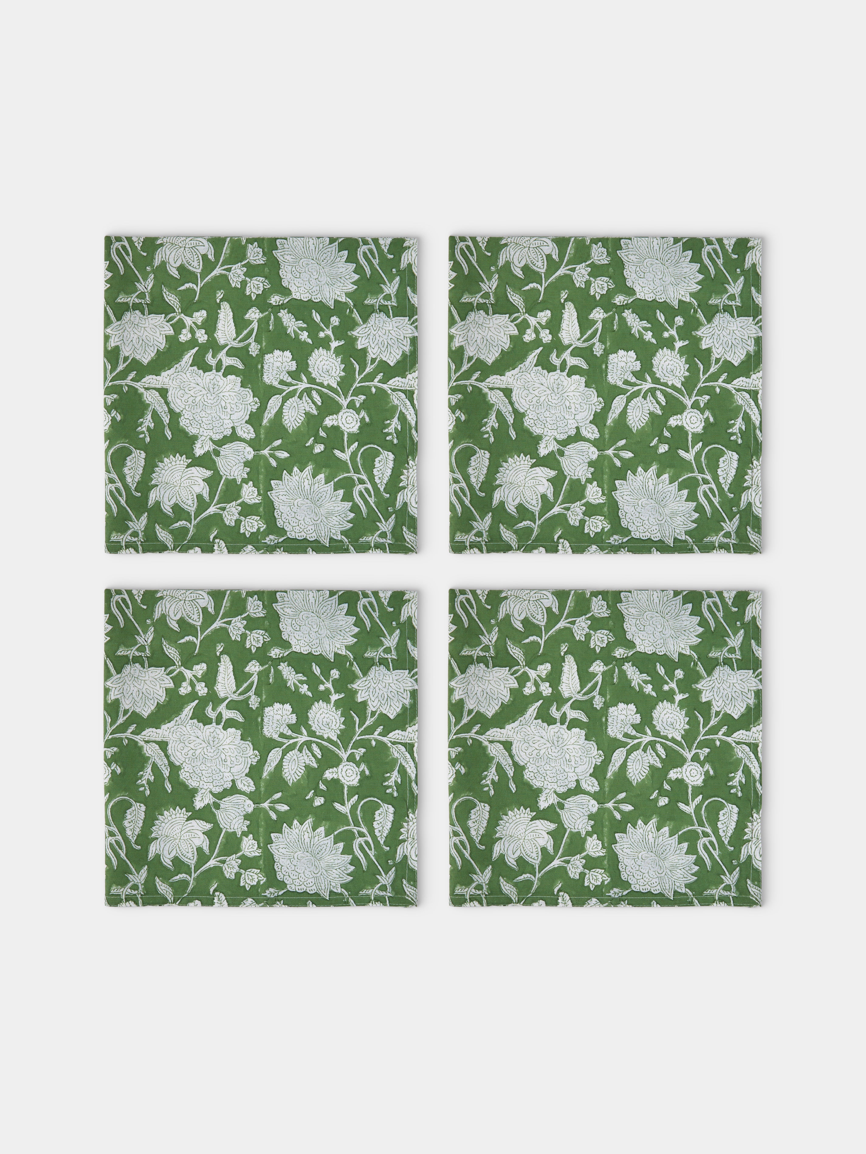 Indian Rose Block-Printed Linen Napkins (Set of 4)50cm (w) x 50cm (l) / 19.5" (w) x 19.5" (l)