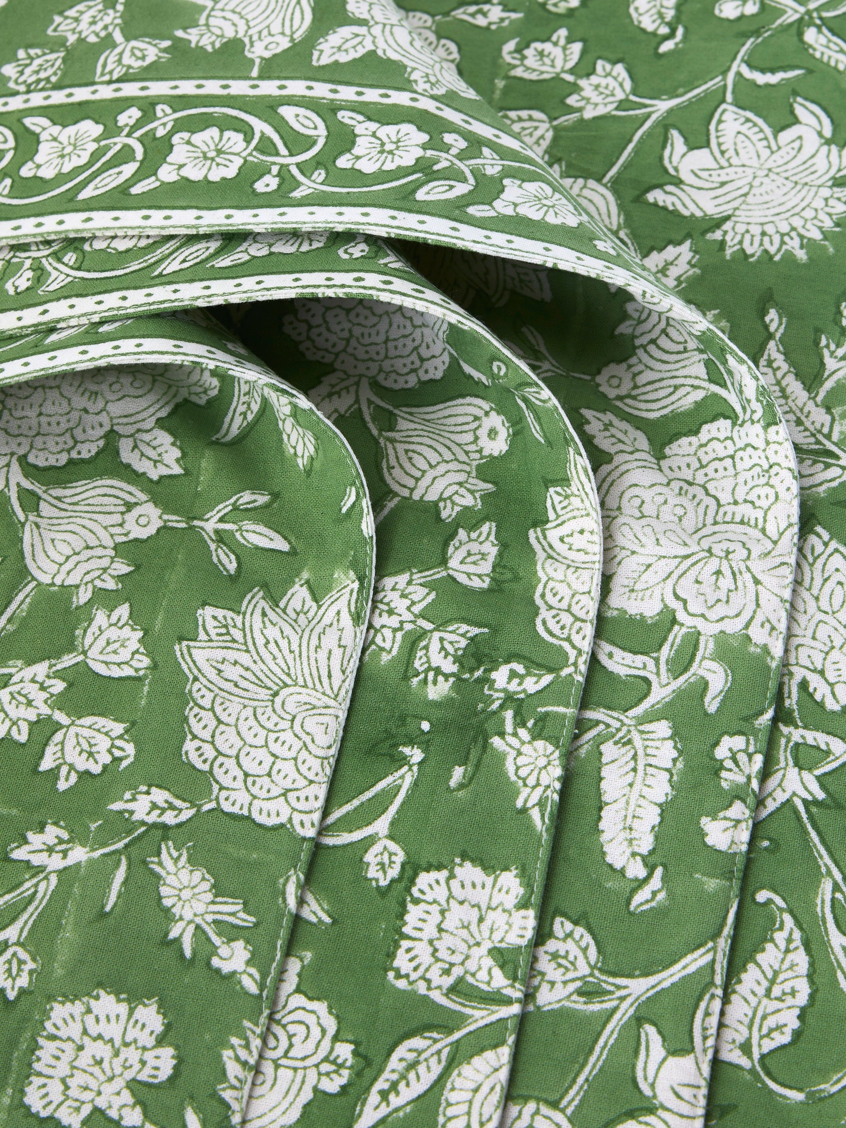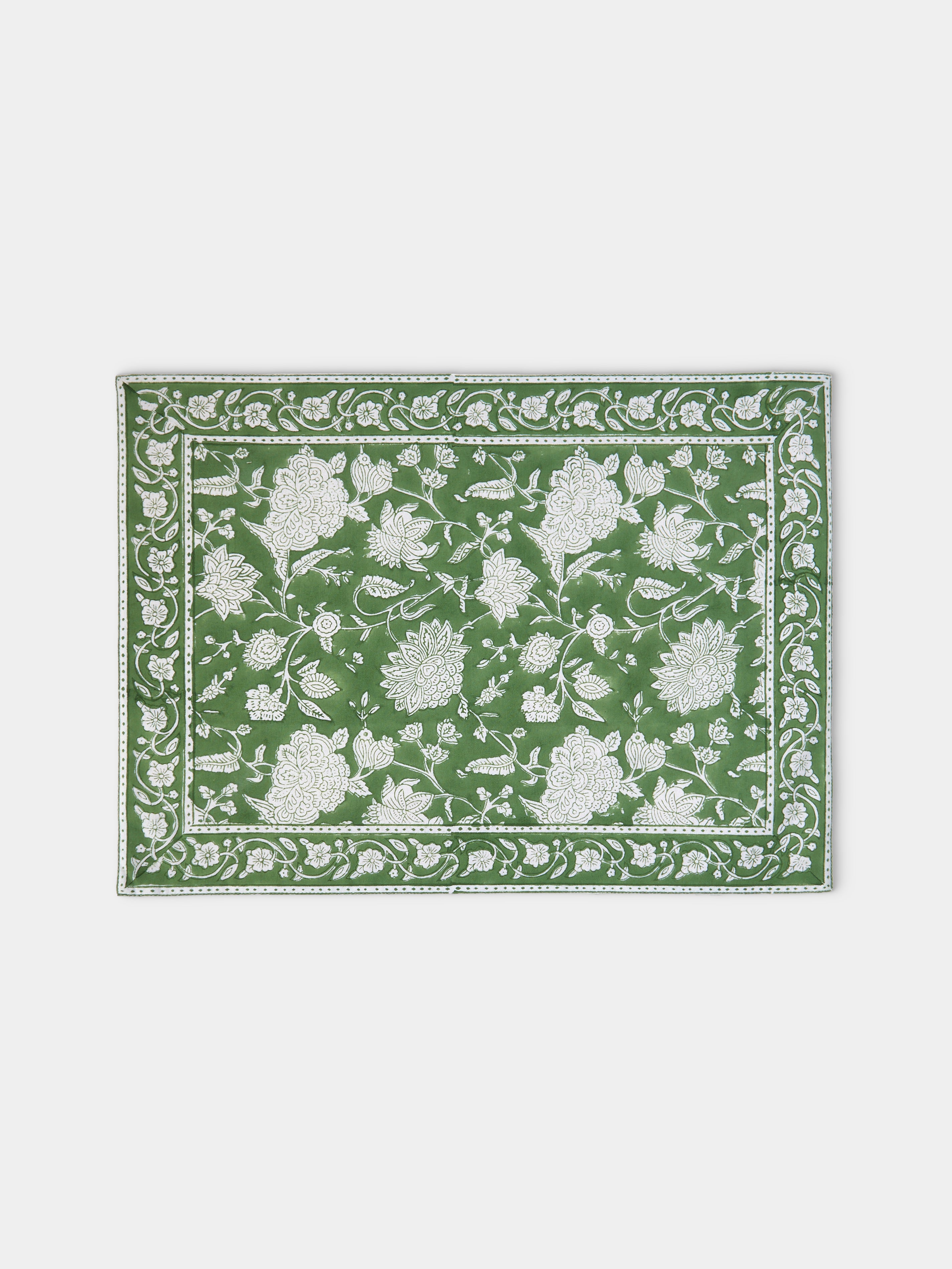 Indian Rose Block-Printed Linen Placemats (Set of 4)45cm (w) x 50cm (l) / 17.6" (w) x 19.5" (l)