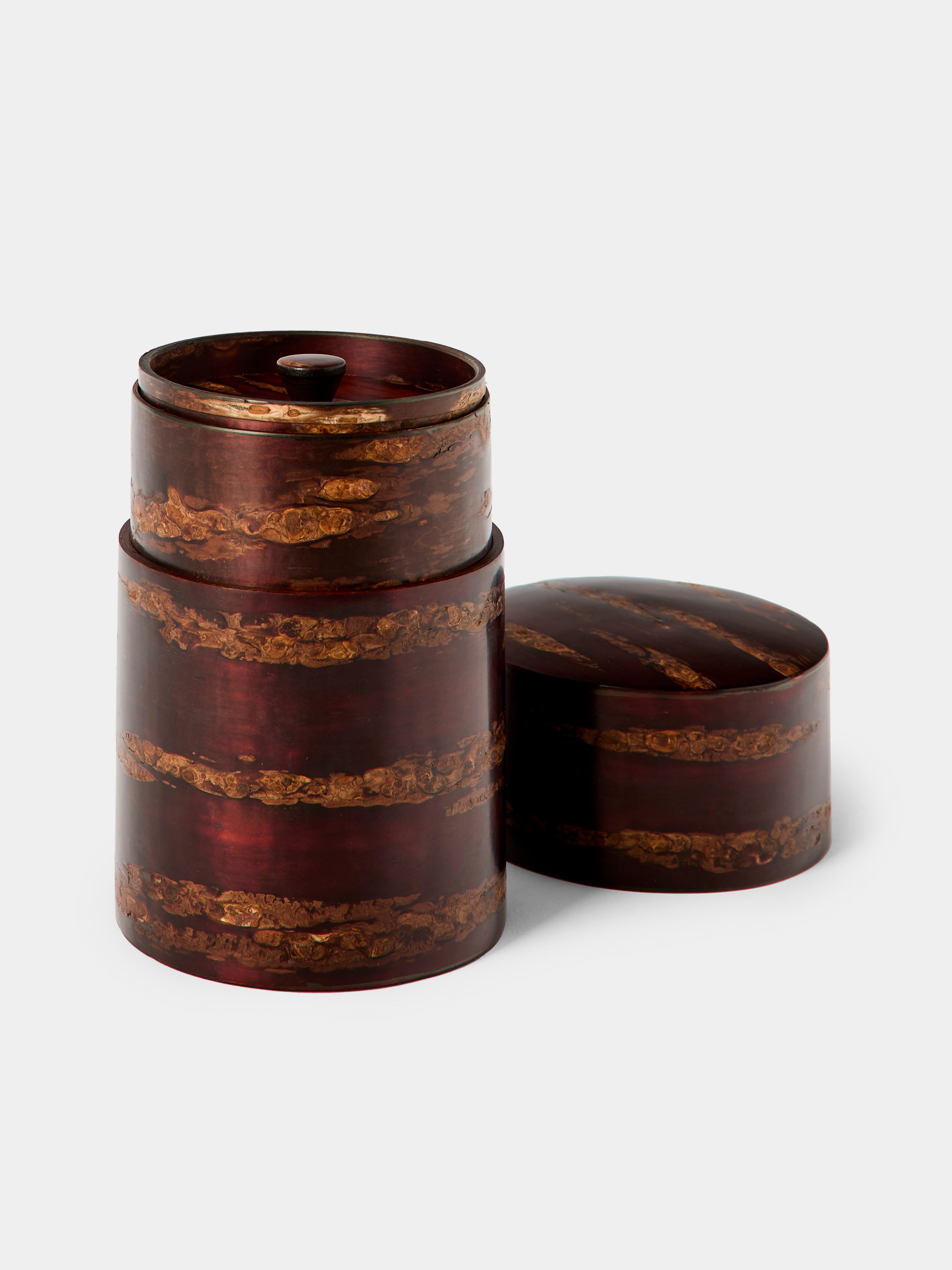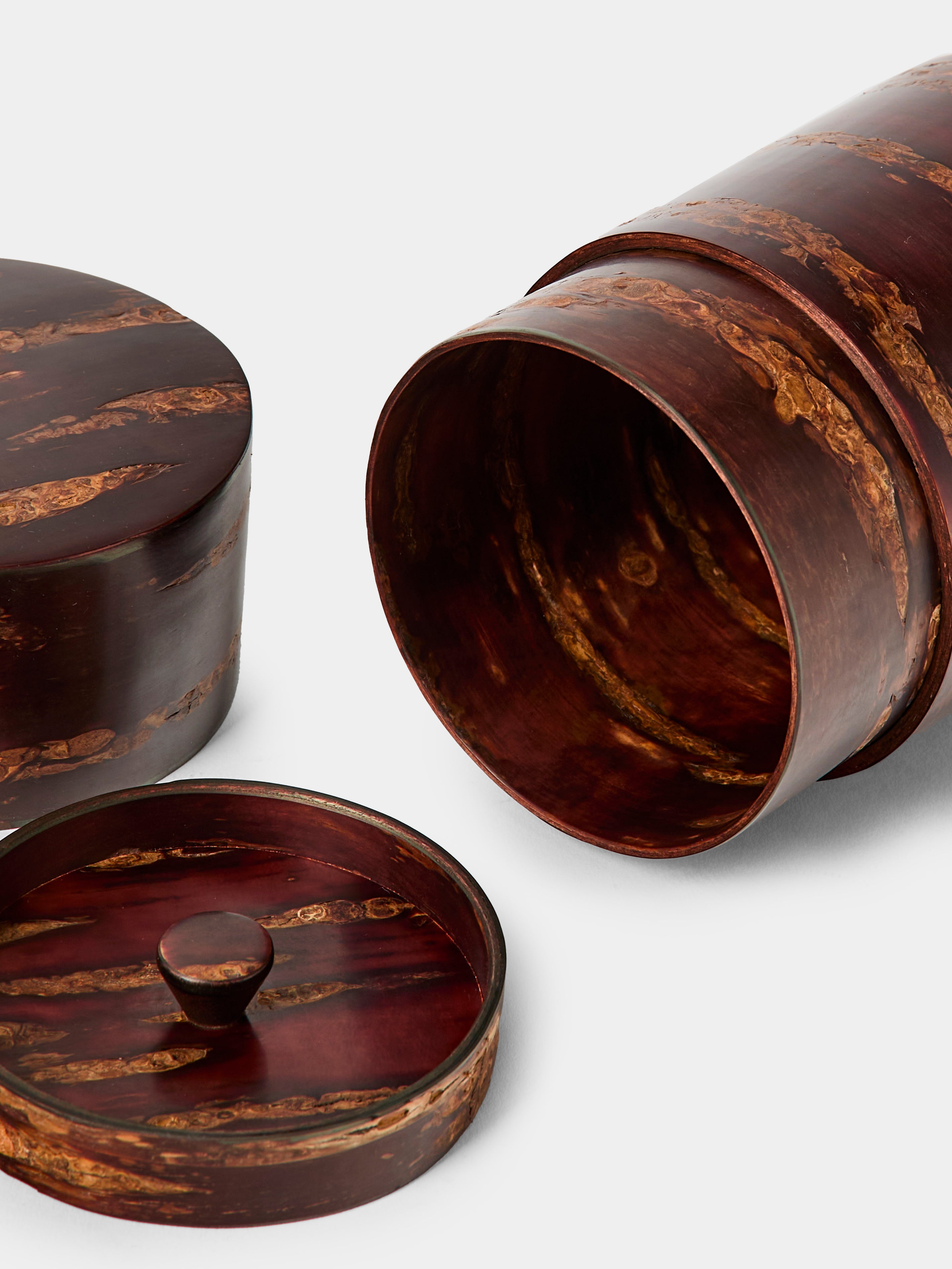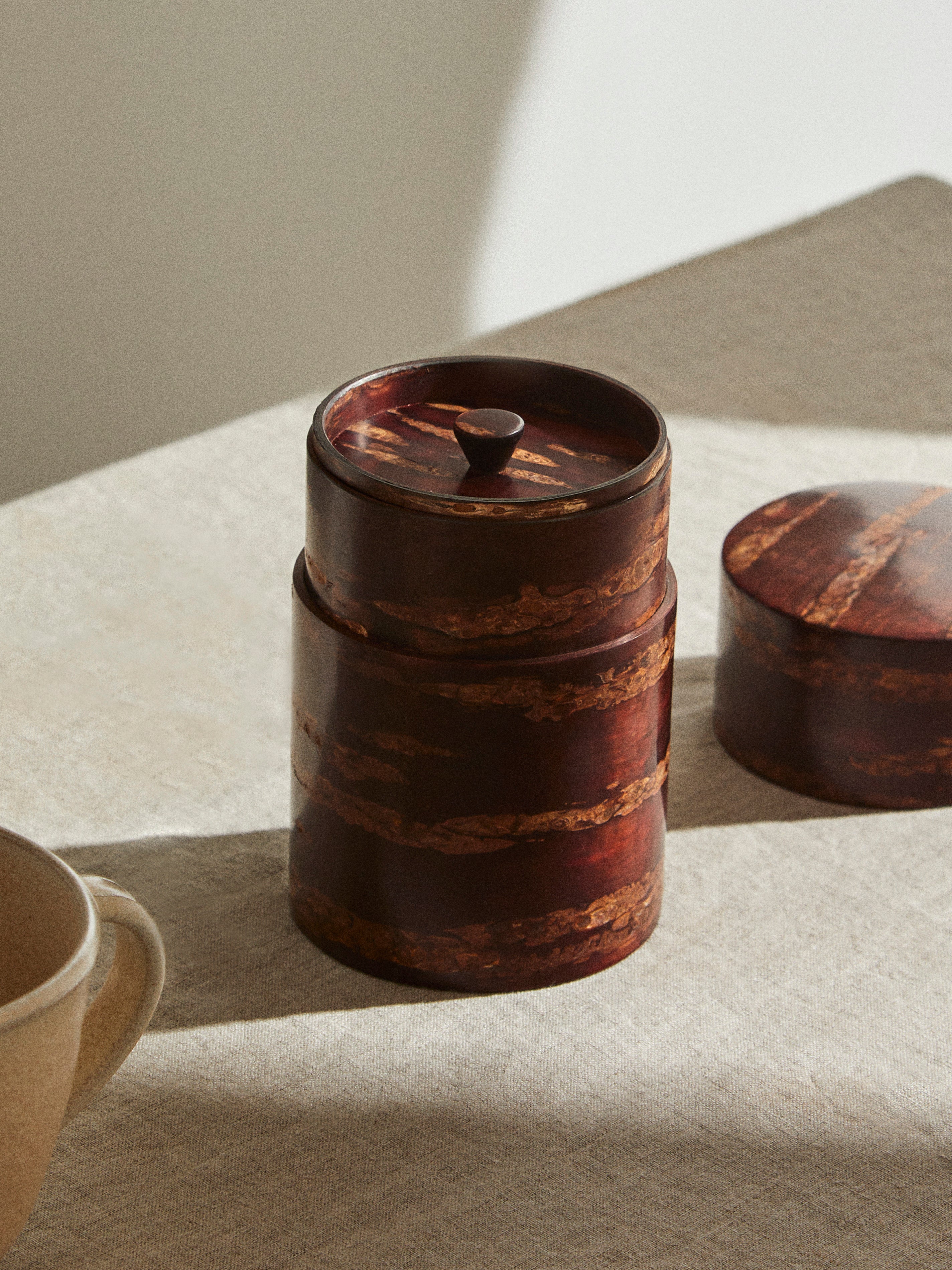 https://www.abask.com/en-us/products/denshiro-polished-cherry-bark-tea-canister-22004250228960103055576Polished Cherry Bark Tea Canister178.00//www.abask.com/cdn/shop/files/v0adviswk6tmukmcnwsf.jpg?v=1754653064//www.abask.com/cdn/shop/files/v0adviswk6tmukmcnwsf_large.jpg?v=1754653064GBPOutOfStockCoffee & TeaTeaware is at the heart of Denshiro’s craft—but not just any teaware. This tea canister, selected from the Kizutsu collection, is made from wild cherry bark sourced from Kakunodate, the brand’s historic hometown. Traditional polishing techniques bring out the bark’s natural depth and luster, creating a surface that seems to glow from within. With time and touch, that glow only deepens. DenshiroCOFFEE & TEADenshiroDrinkwareTabletopThe BarThe KitchenWK28 FY25Woodadd-to-cart//www.abask.com/cdn/shop/files/ptjfj05v5zp1jadx57ao.jpg?v=1754653064//www.abask.com/cdn/shop/files/wnwgztrdthucunidzbex.jpg?v=1754653064//www.abask.com/cdn/shop/files/inktocjkr4k8ygx38amx.jpg?v=1754653064//www.abask.com/cdn/shop/files/ipt0fbndfznwvjncbtkl.jpg?v=1754653064//www.abask.com/cdn/shop/files/hqjj6zesspka9wjlbces.jpg?v=1754653064//www.abask.com/cdn/shop/files/icgcnm0fbjrhur9uoevt.jpg?v=175465306450718043209944Default Title178.00//www.abask.com/cdn/shopifycloud/storefront/assets/no-image-2048-a2addb12.gifhttps://www.abask.com/en-us/products/denshiro-polished-cherry-bark-tea-canister-2200425022?variant=50718043209944OutOfStockDefault Title