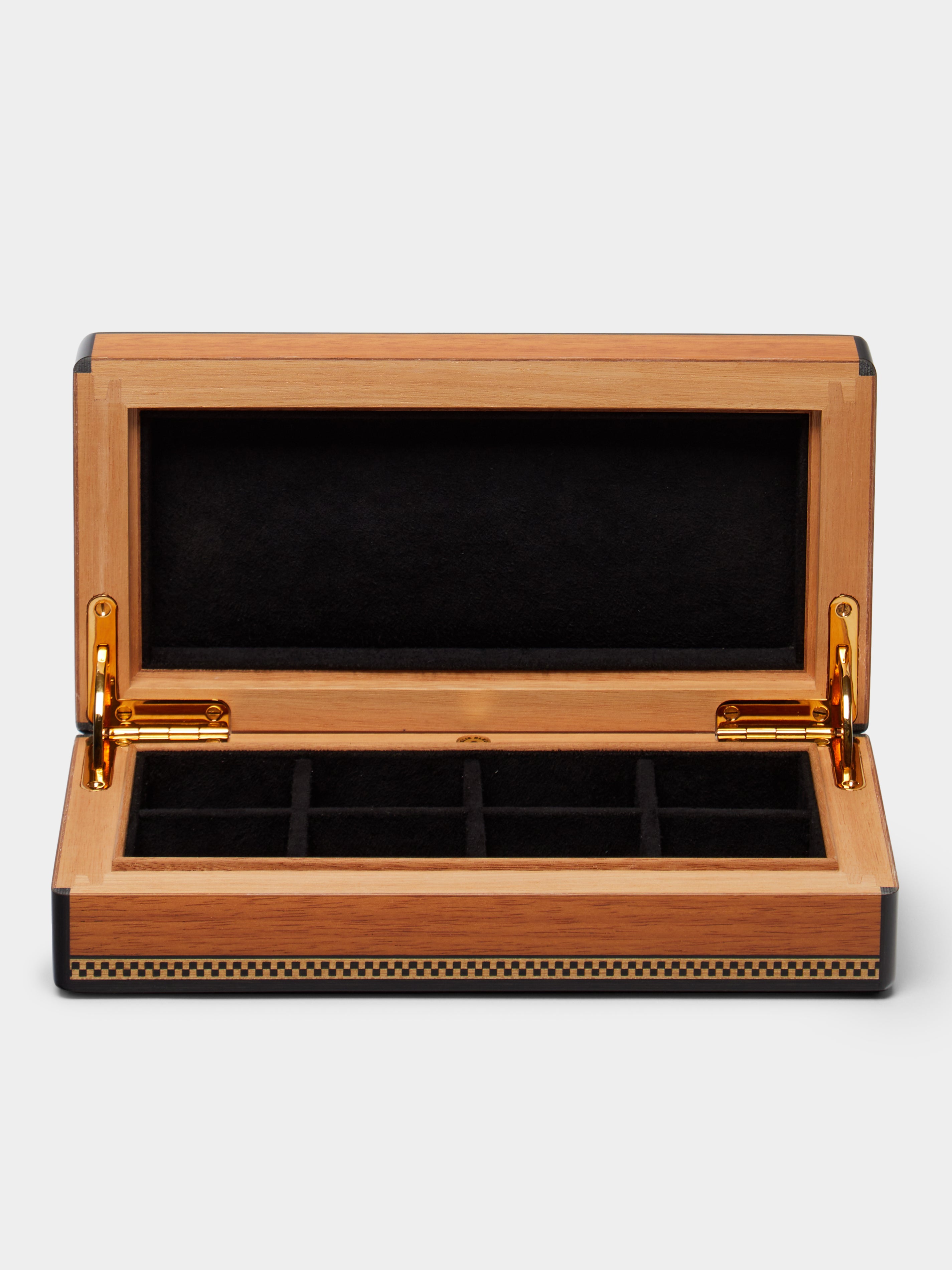 Elie Bleu is a household name for its humidors, but they aren’t the only field of expertise for this maker. No matter what its boxes are guarding – from jewellery and watches to poker and pens – they’re always handmade to exacting standards, taking four to six months to come to fruition. Every story starts with a mass cut of timber that’s sourced from across the globe, before expert craftspeople have their way with it in the workshop just outside of Paris; perhaps they’re lacquering it by hand, or maybe they’re piecing it together via Boulle marquetry. Whatever they’re rustling up, rest assured that the final result will be a product of expert savoir-faire, as has been the case since its founding in 1976.