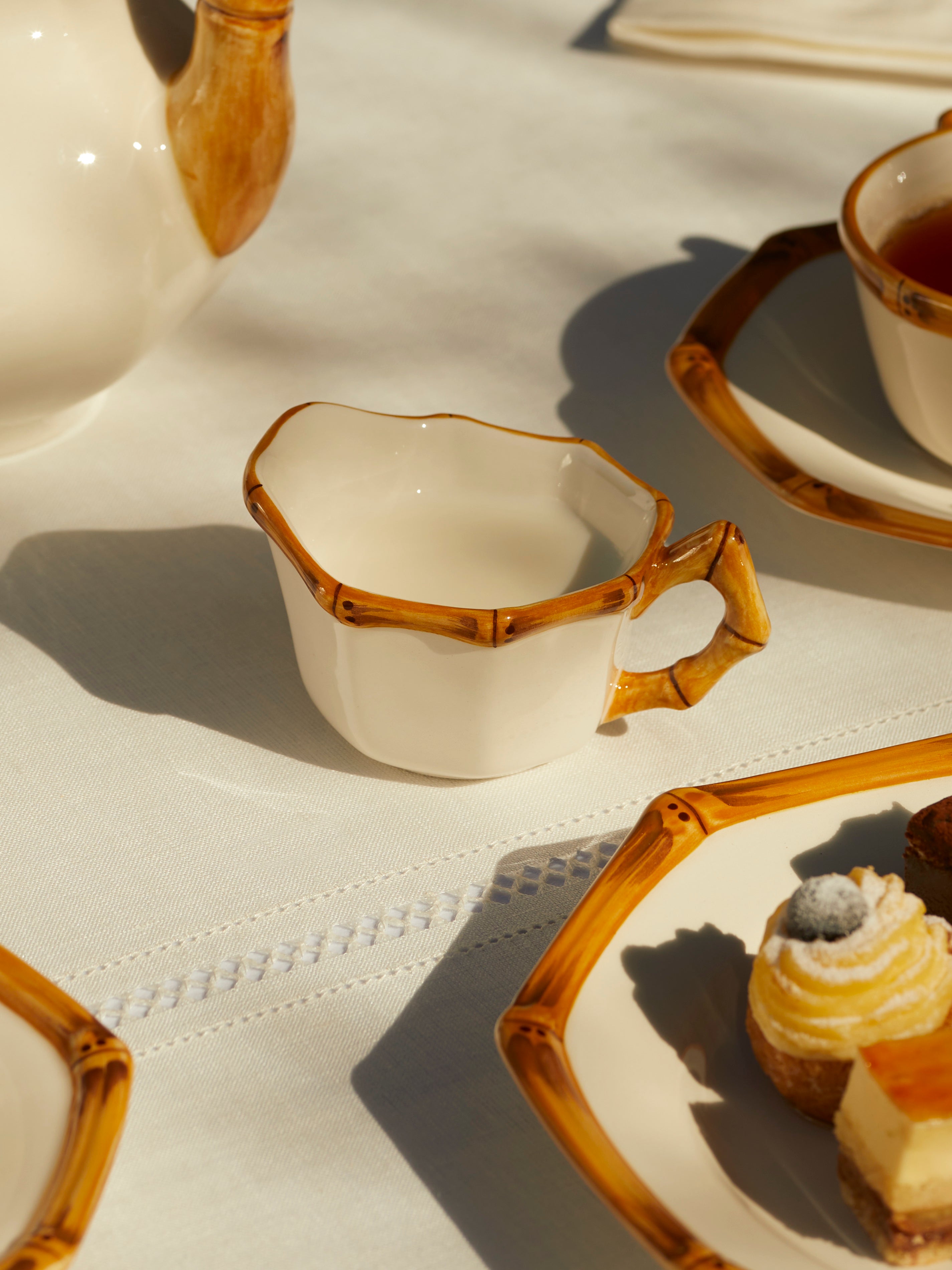 Bamboo Hand-Painted Ceramic Teacups and Saucers (Set of 4)6cm (h) x 11cm (d) saucer 18cm (d) / 2.3" (h) x " (d saucer 18cm)