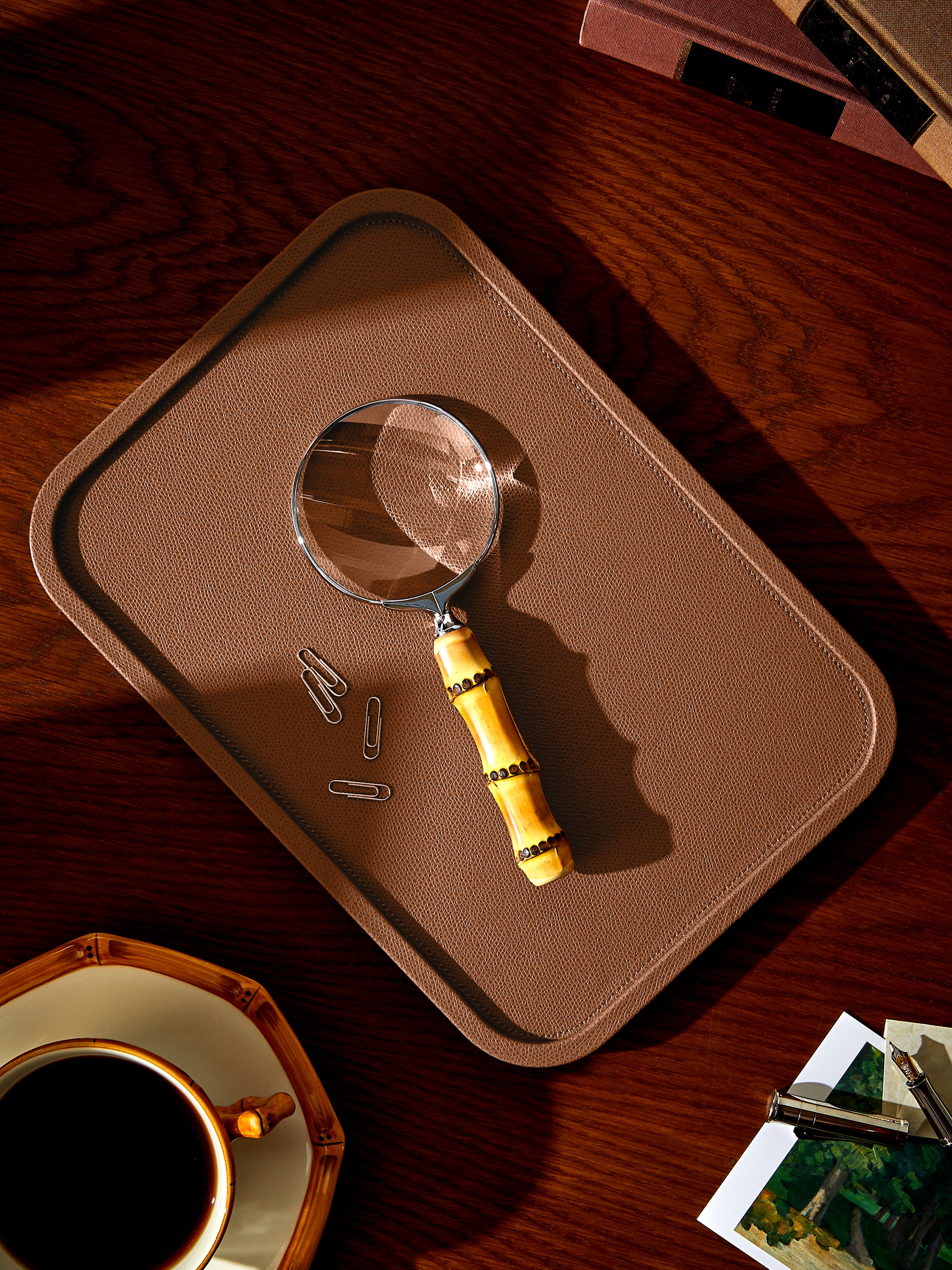 Giorgio Bagnara’s collection of handcrafted leather homeware nods to his Genoese family’s leather-making traditions from 1939. The founder of leather houses, Rabitti 1969 and Riviere, employs both hand-stitching and modern technologies to achieve artisanal excellence and great precision. From shagreen to natural calfskin leather, Giobagnara has over 200 dyed leathers, plus an inimitable collection of maple, oak and walnut wood.