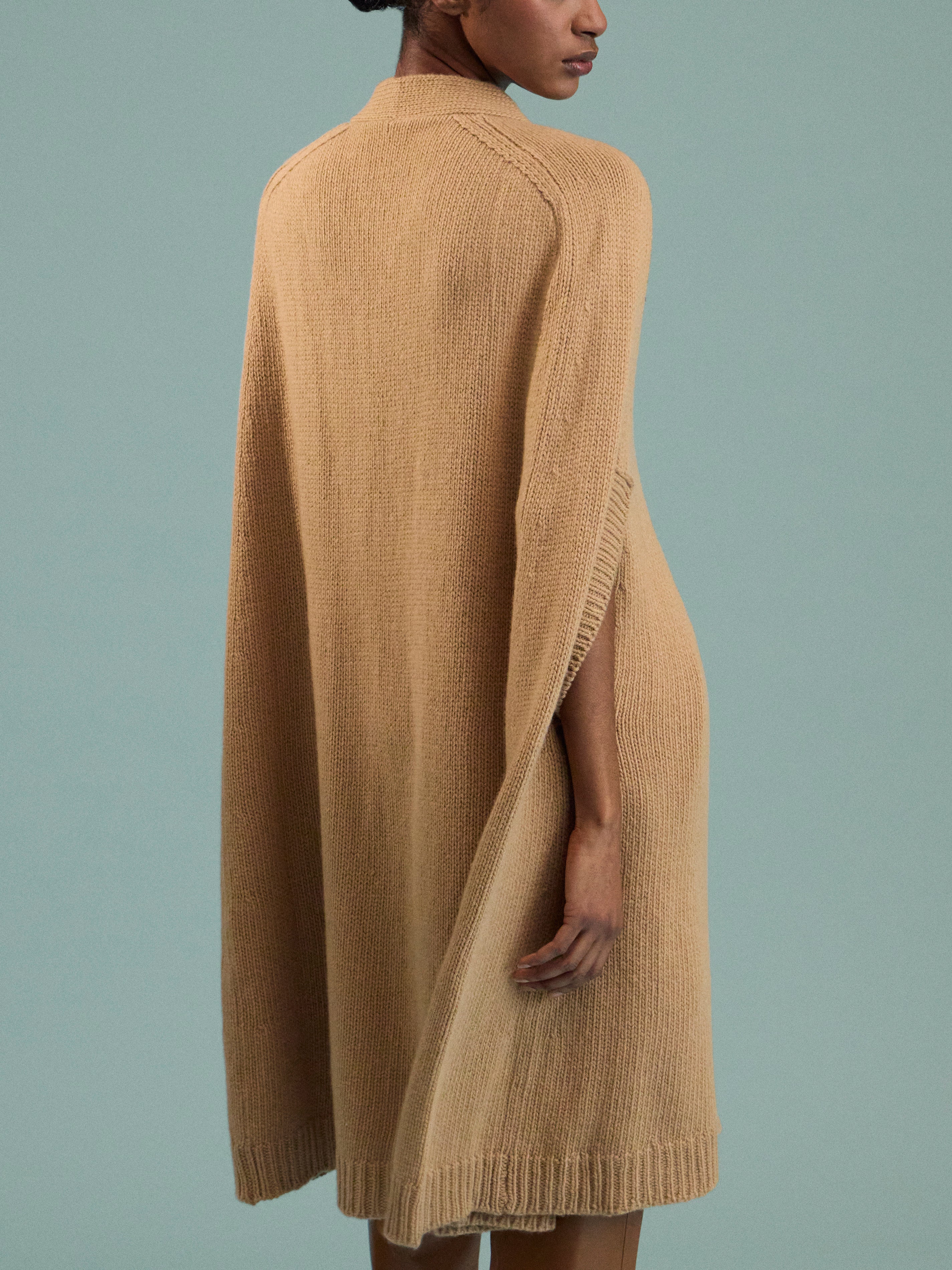 Caped silhouettes have featured in Isa Arfen’s collections long before they became the sole focus, as founder Serafina Sama has always found joy in their comfort and freedom of movement. Today, her wonderfully wearable pieces form the backbone of wardrobes everywhere. In her London-based workshop, this cape is handcrafted in a carefully considered mix of Scottish lambswool and cashmere, a fabric blend and colorway made for – and available only at – ABASK.