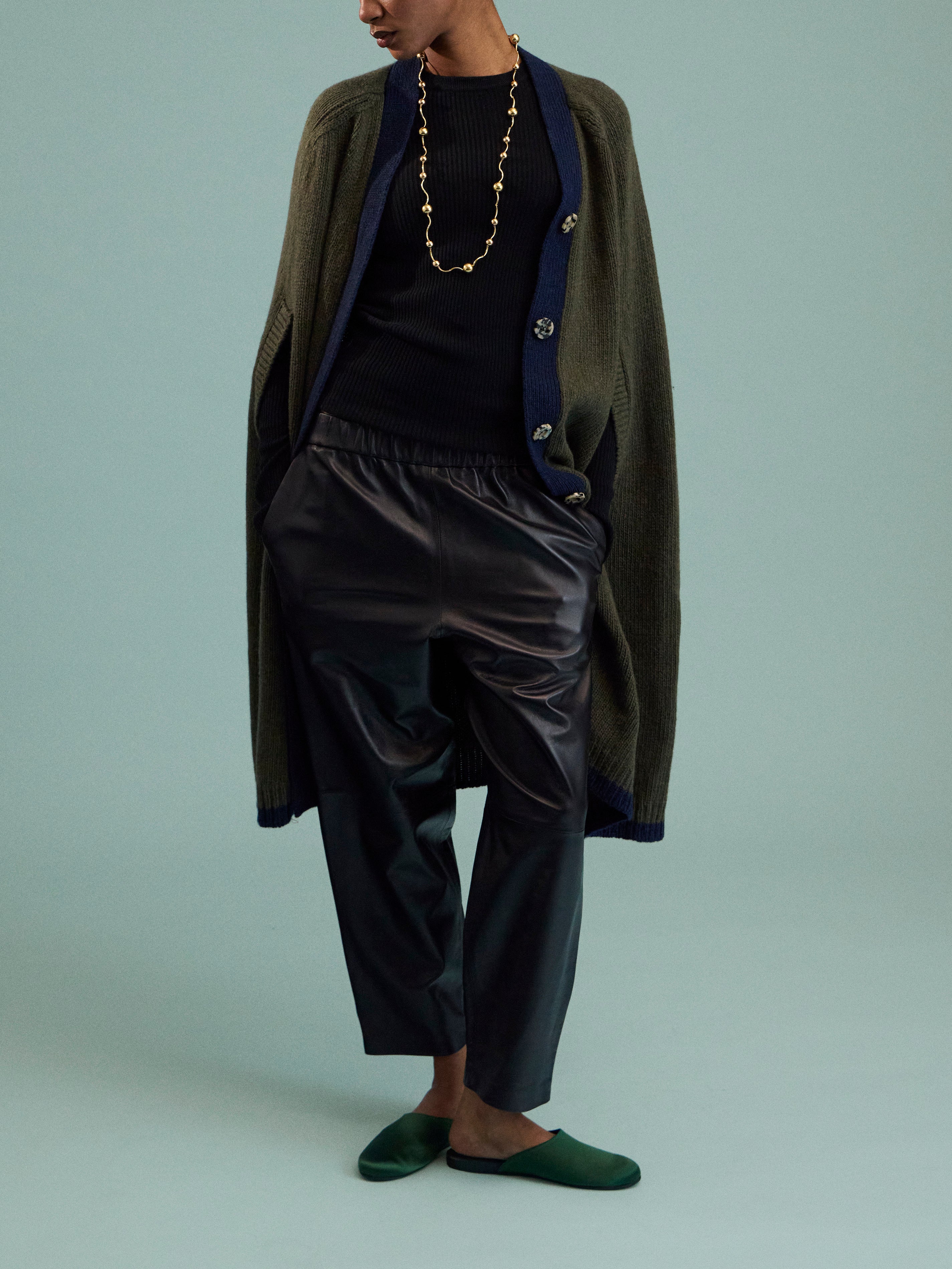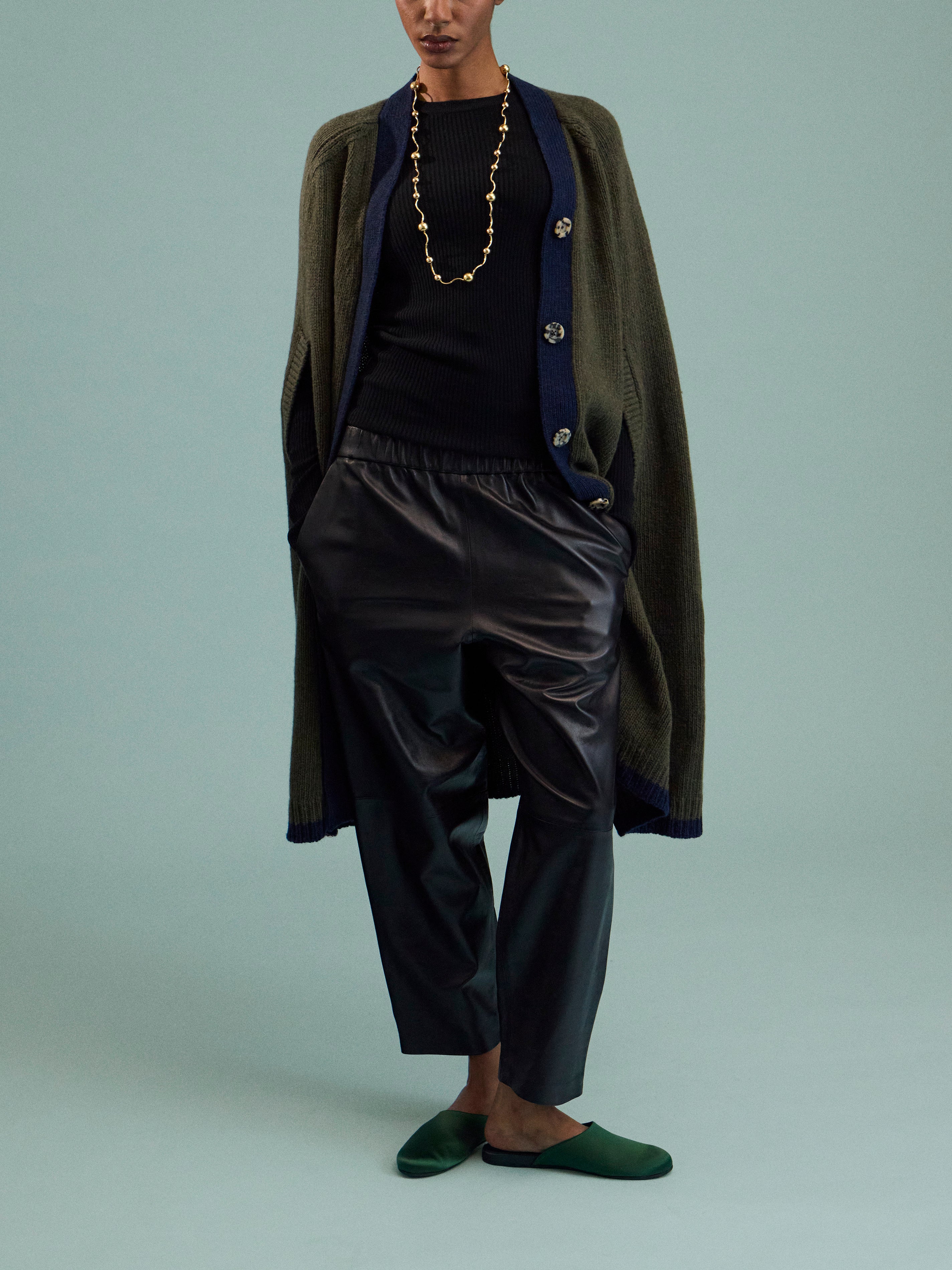 Italian-born Serafina Sama, founder of Isa Arfen, pressed pause on production in 2019 so she could rewrite her design rulebook. Setting a seasonal approach aside, she returned in late 2023 with a singular caped proposal steeped in sustainability. Her collections, while alike in silhouette, differ greatly in fabrication, colourway and character – while some are collegiate-inspired, others are palate-cleaning classics. Devotees of Isa Arfen, an anagram of Serafina, rejoice in her tightly edited collections crafted in a three-gauge knit that consists of a mix of Scottish-spun lambswool yarn and cashmere.
