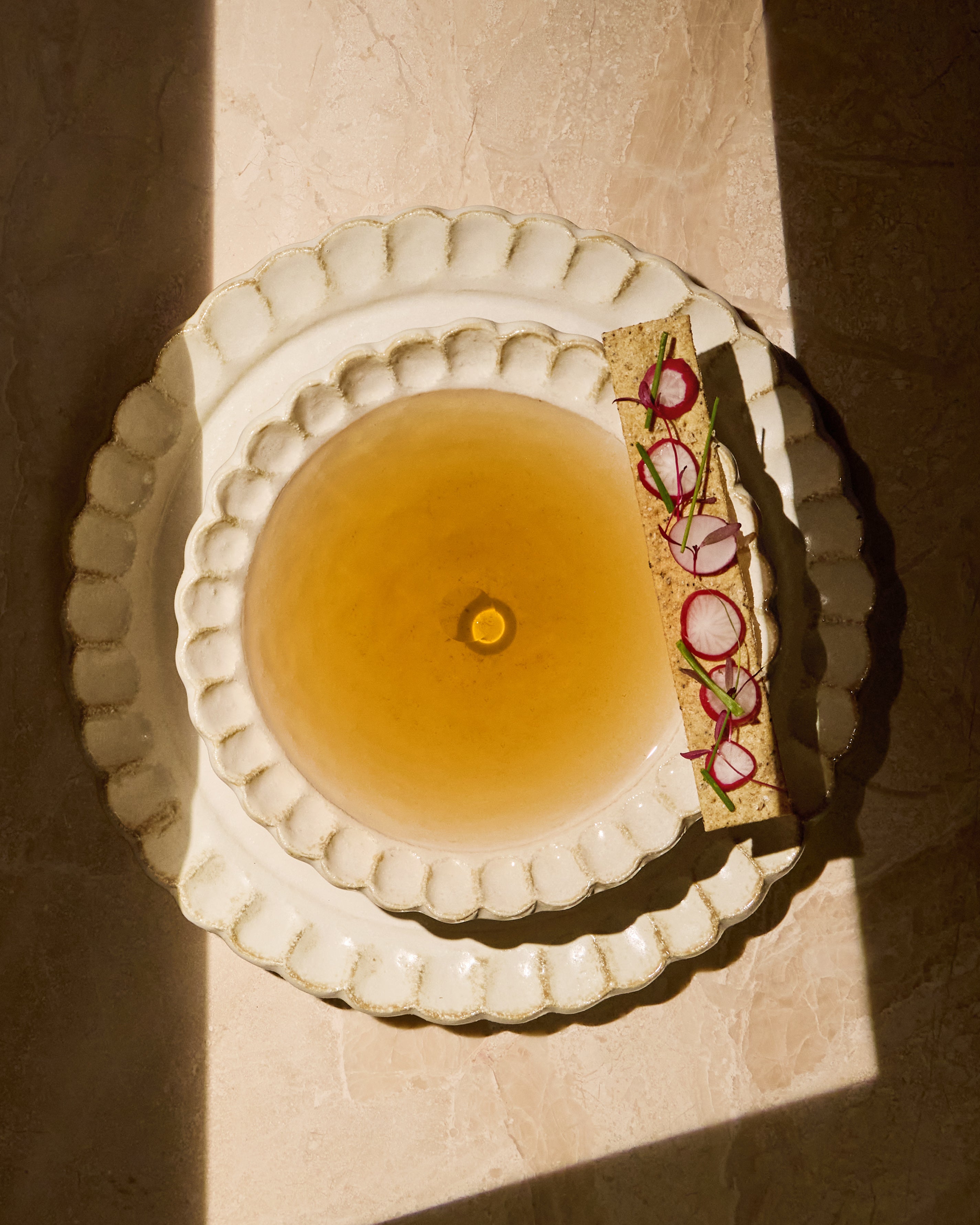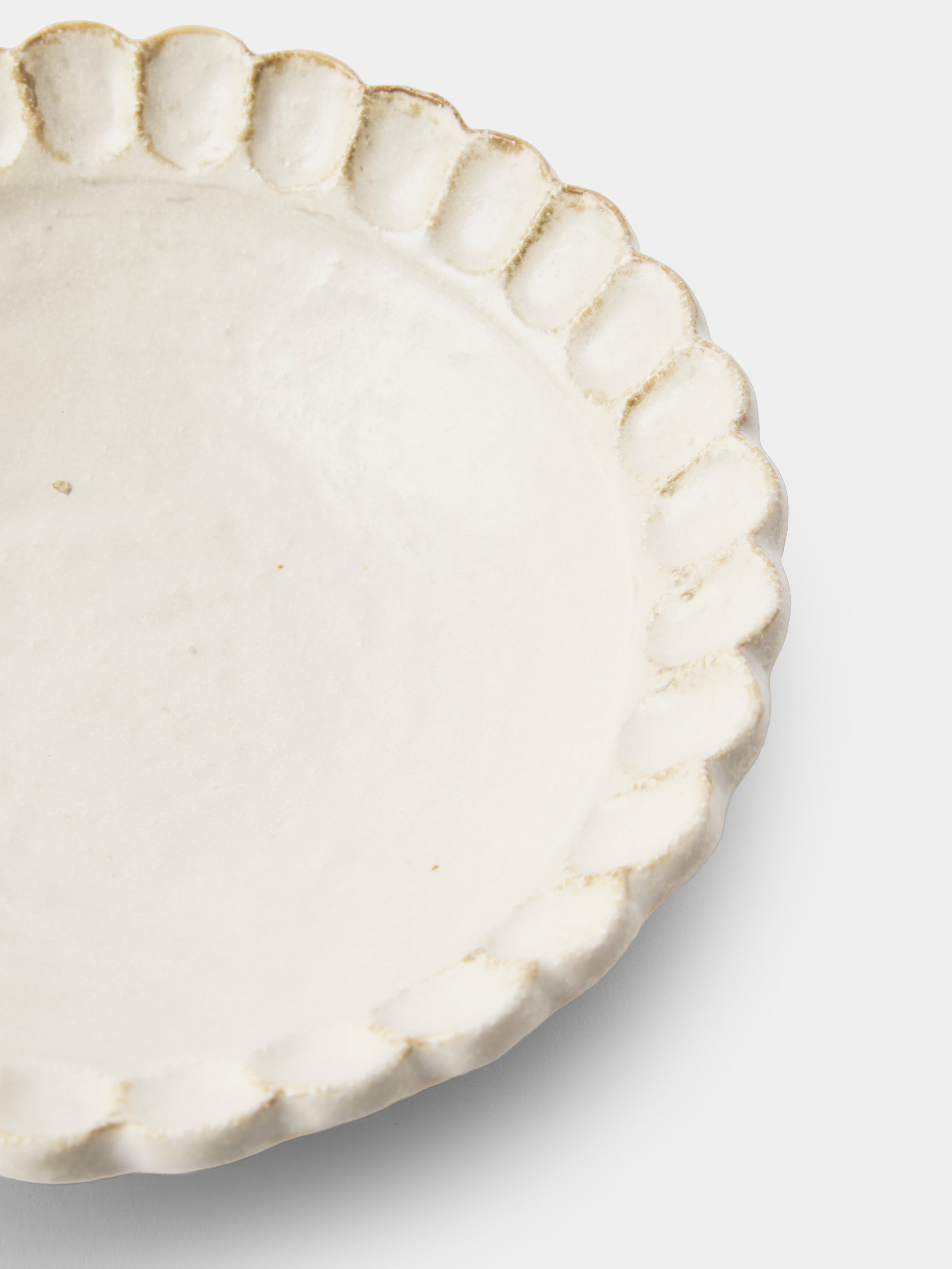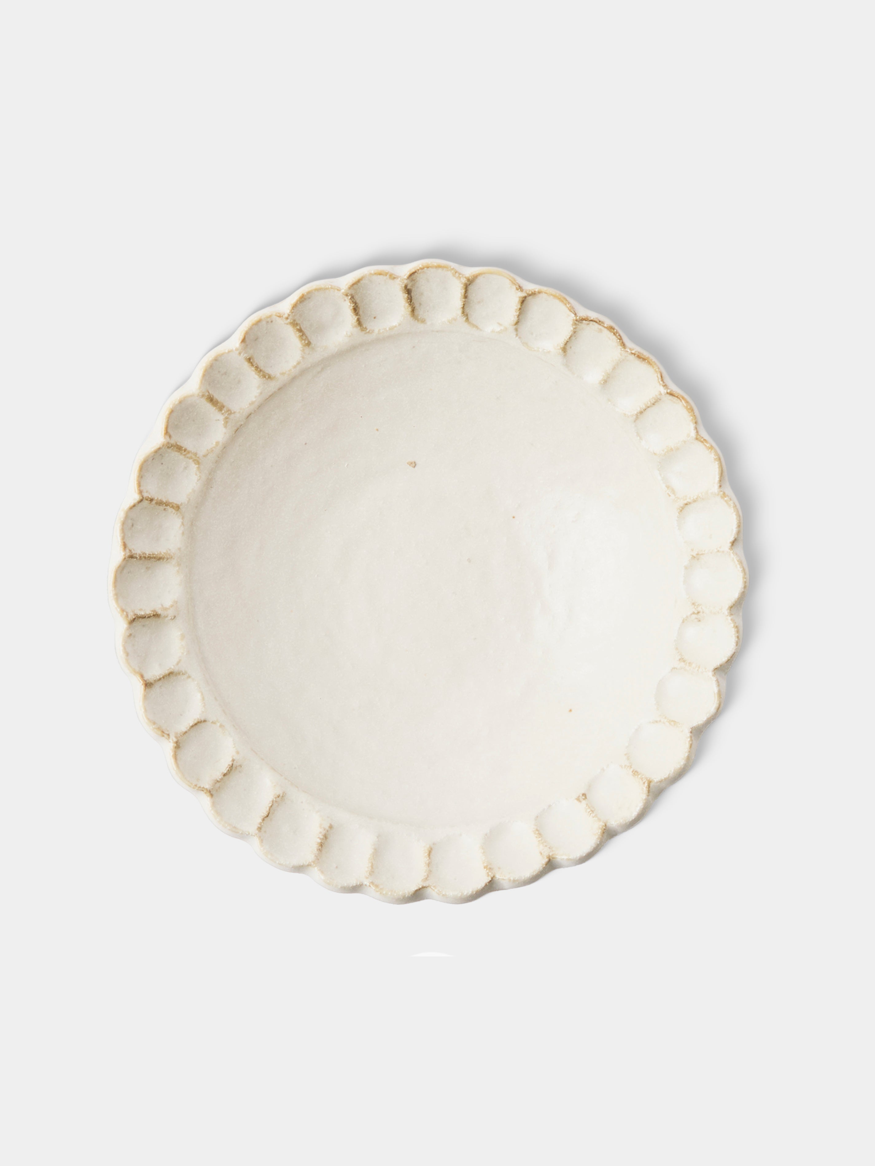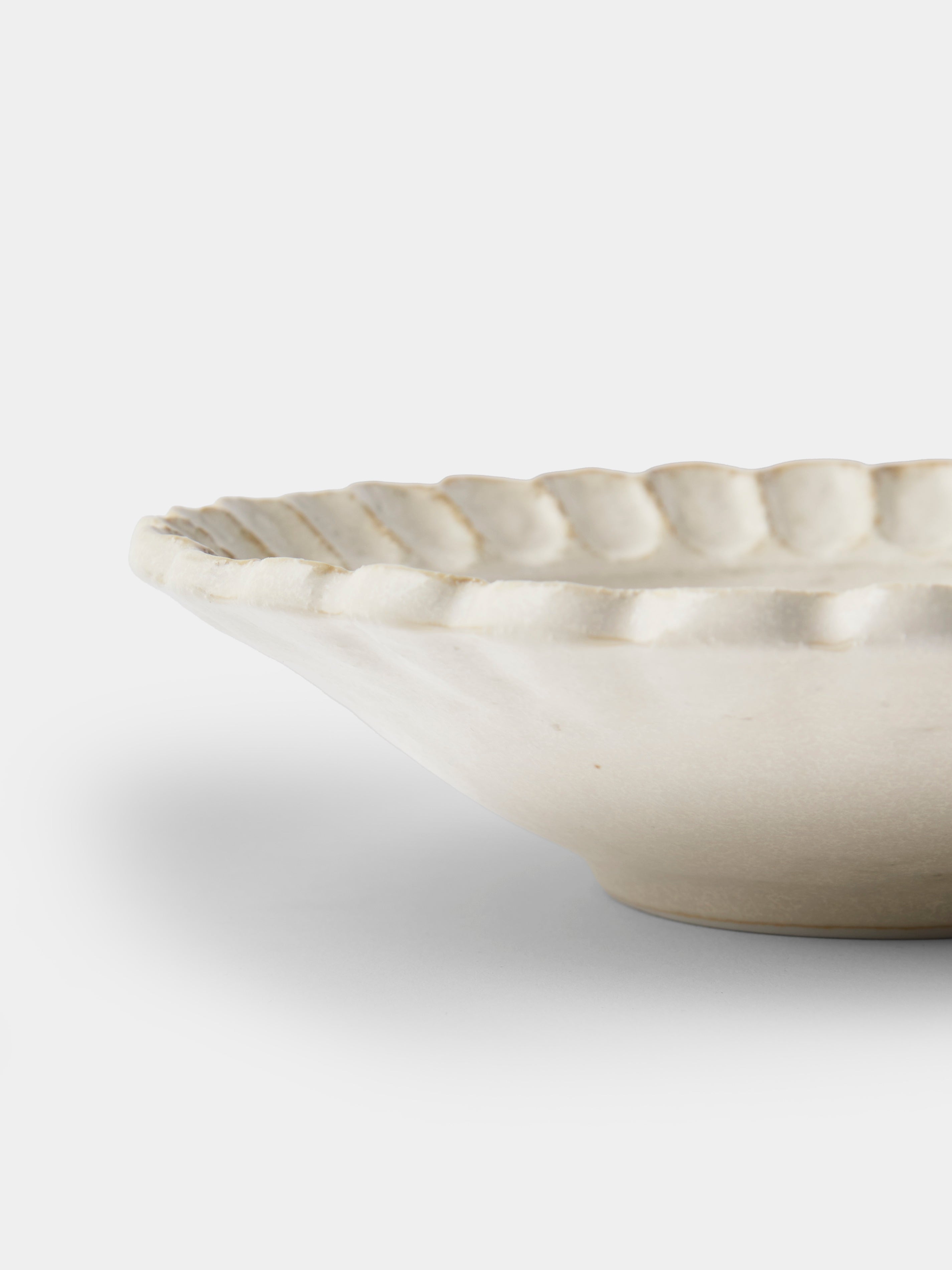 Kaneko Kohyo’s story spans a century (and counting), beginning with its first firings at a mountaintop kiln in Toki, Japan. Three decades ago, the workshop expanded into tableware, developing a recognizable signature: charming scalloped edges and a rustic, natural palette of off-white, black and blue. From sake cups to dinner plates, every piece is shaped by hand for an organic warmth and quiet individuality—qualities no machine can truly replicate.