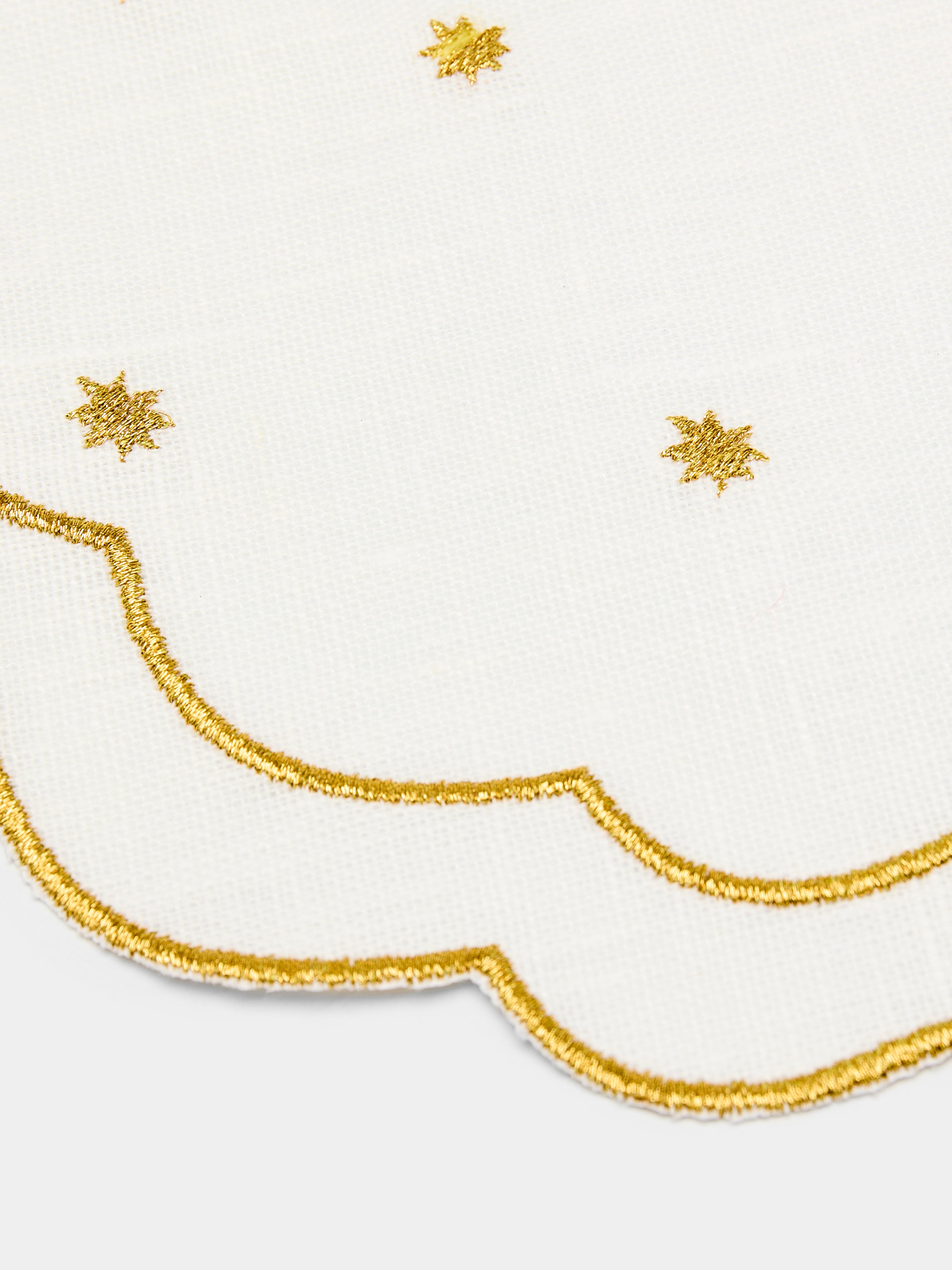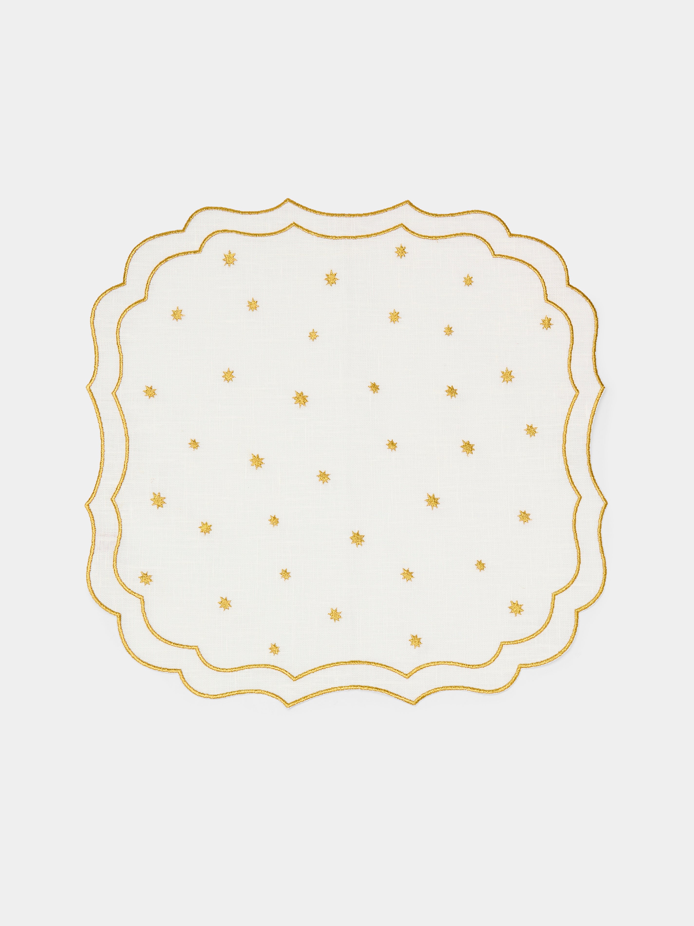 La Gallina Matta Krinkle Stars Embroidered Linen Placemats (Set of 4)
