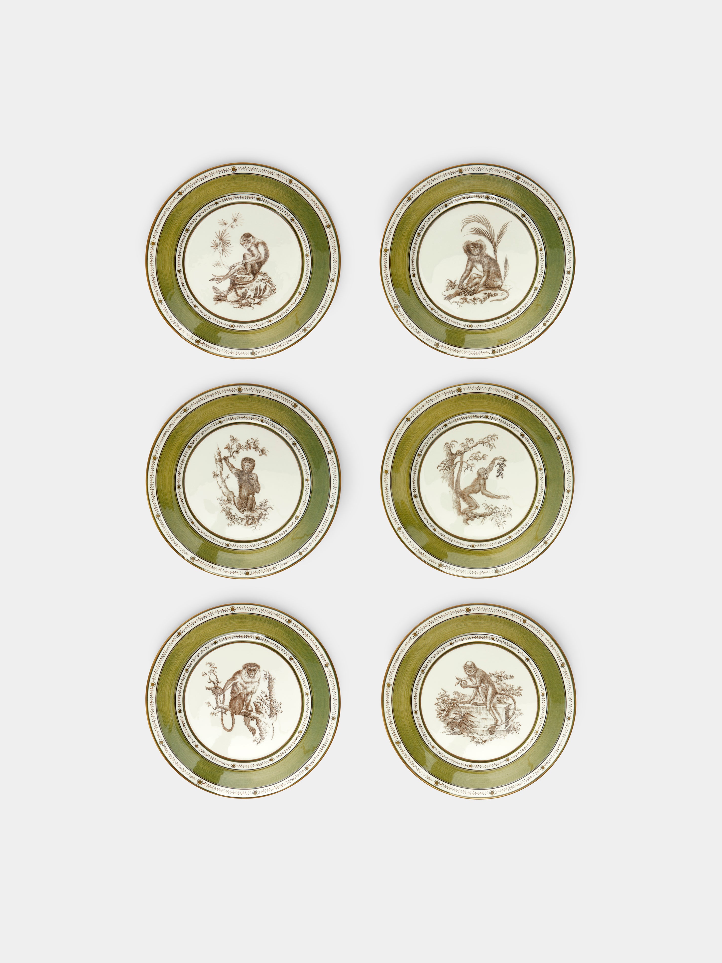 Laboratorio Paravicini Monkeys Ceramic Salad / Dessert Plates – 9in/23cm (Set of 6)