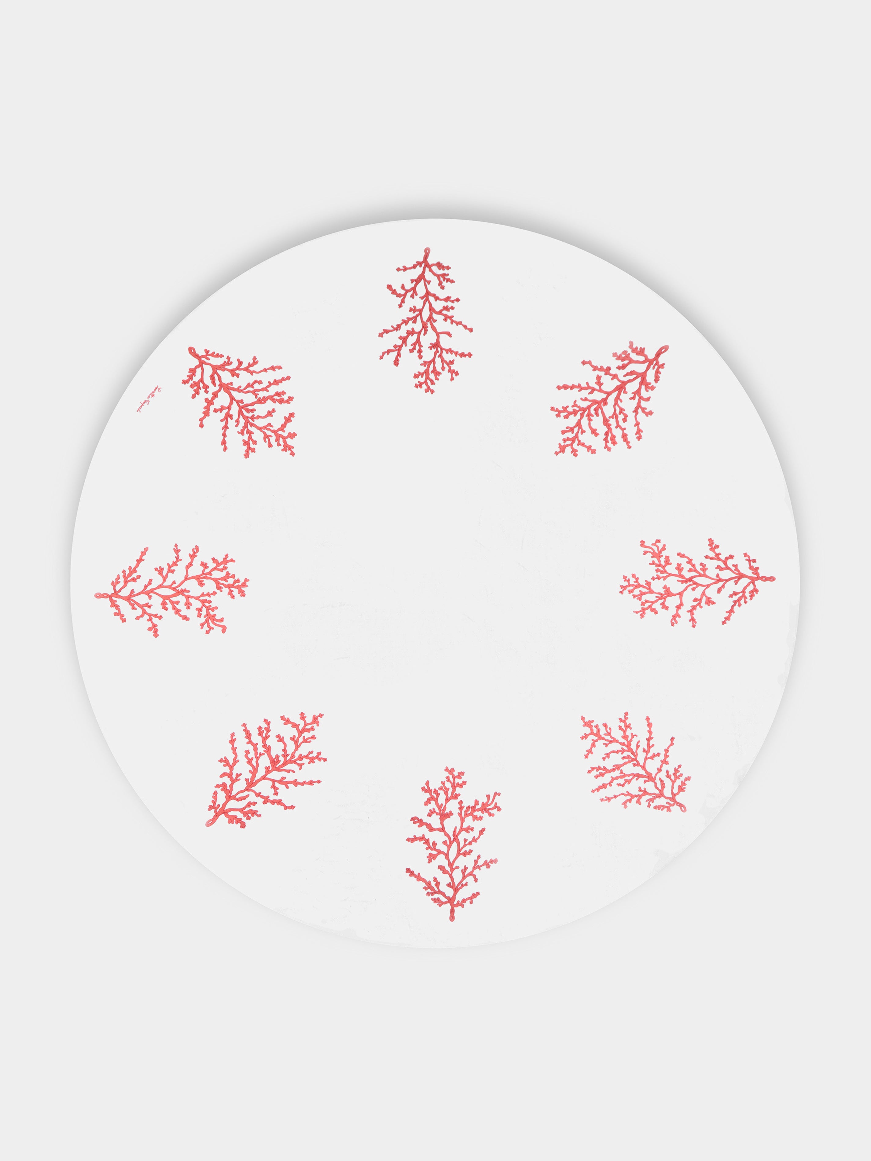 Loretta Caponi Coral Hand-Embroidered Linen Round Tablecloth (118in/3m)
