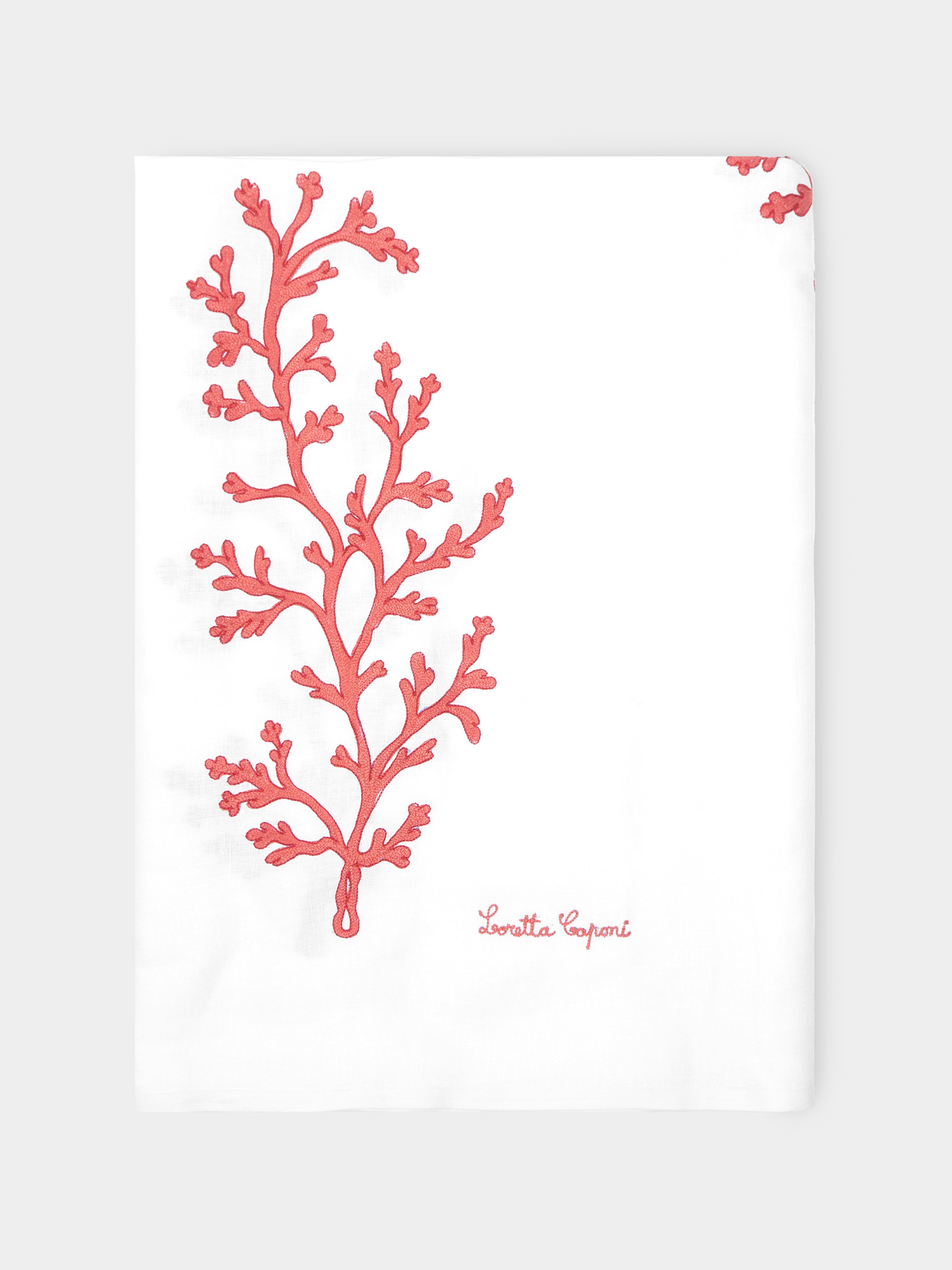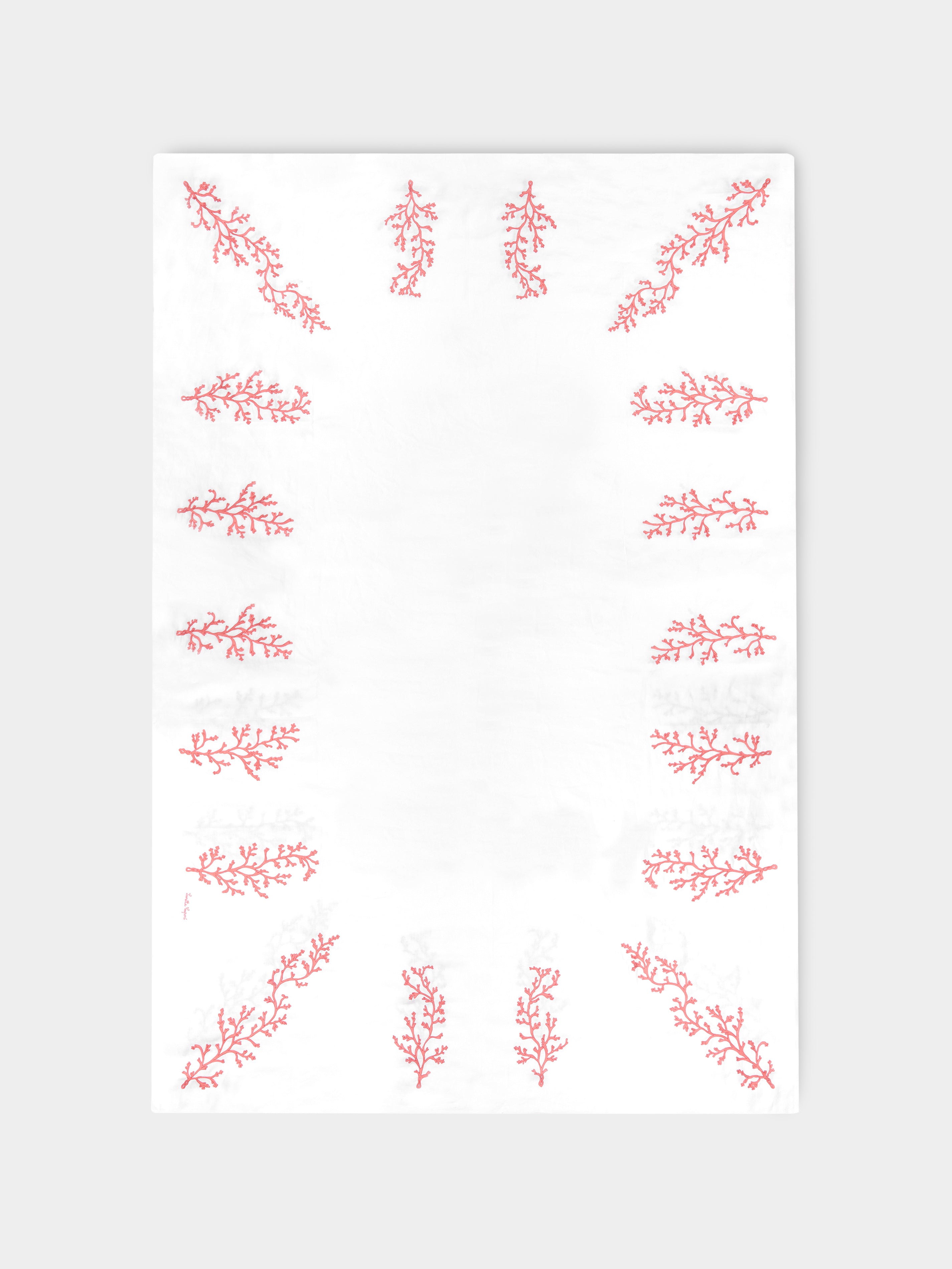 Coral Hand-Embroidered Linen Rectangular Tablecloth (126in/3.2m)320cm (l) x 220cm (w) / 125.0" (l) x 85.9" (w)