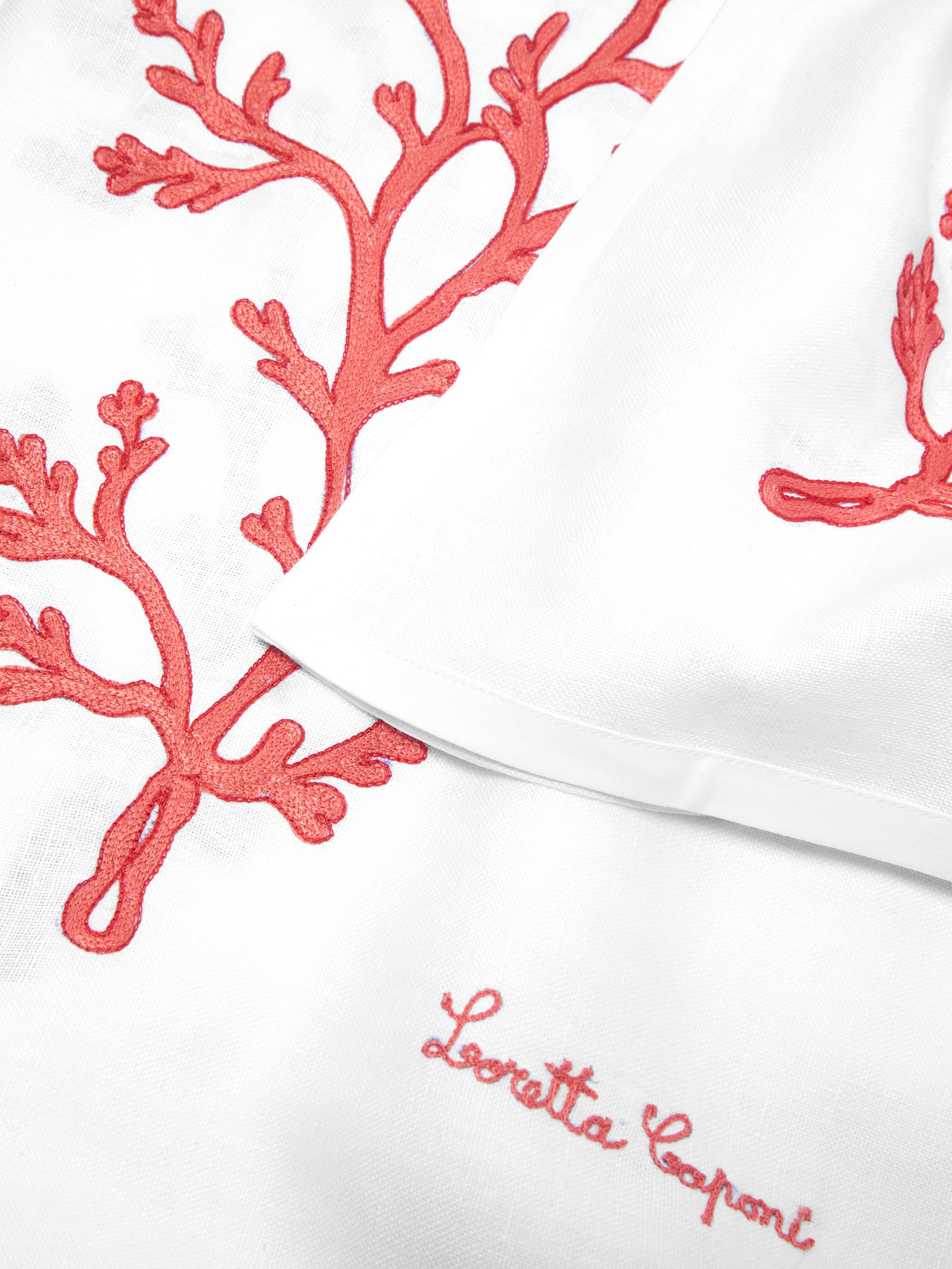 Coral Ajour Hand-Embroidered Linen Placemats and Napkins (Set of 2)38cm (l) x 50cm (w) / 14.8" (l) x 19.5" (w)
