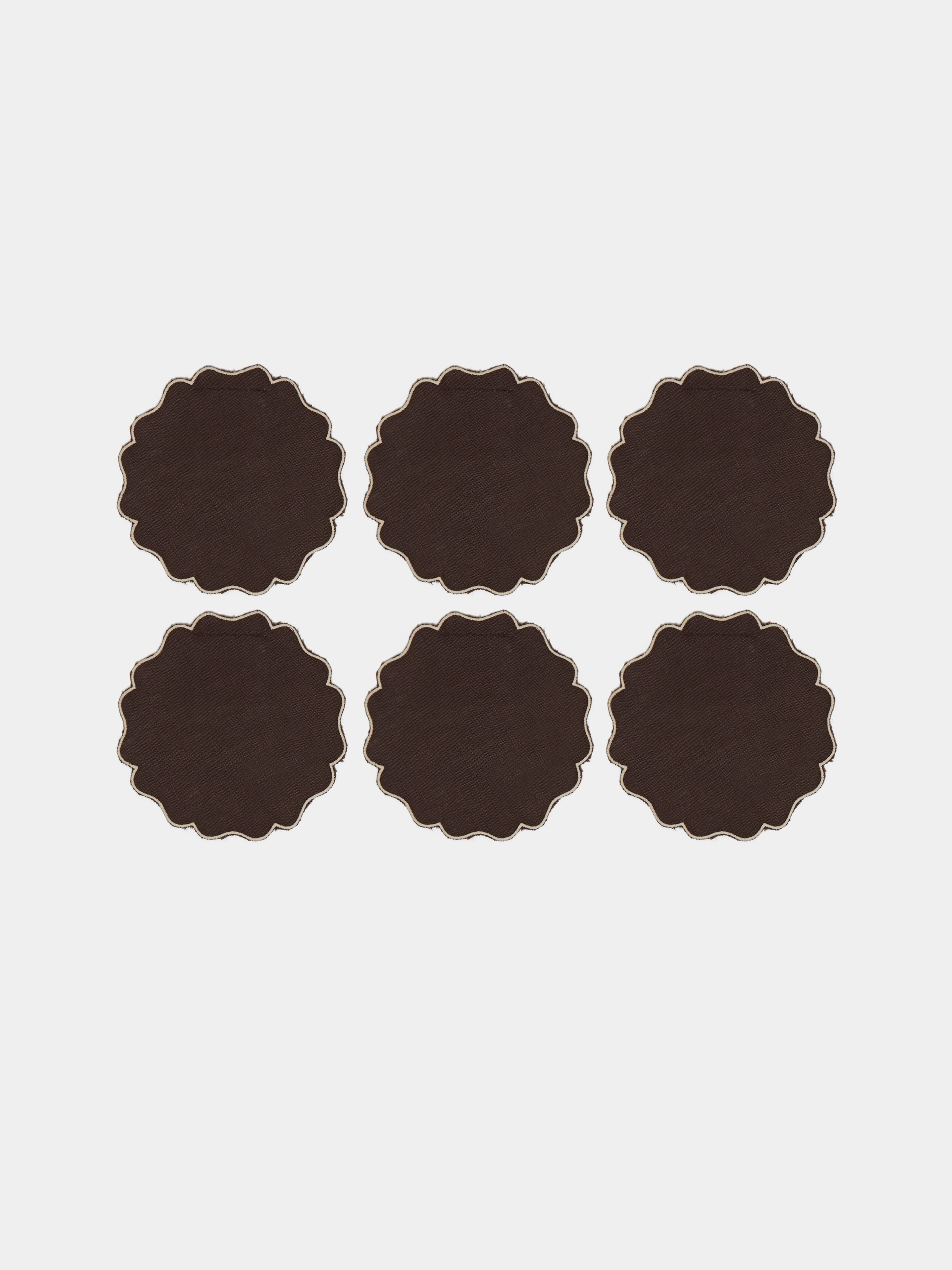 Valver Embroidered Linen Coasters (Set of 6)10cm (d) / 4" (d)