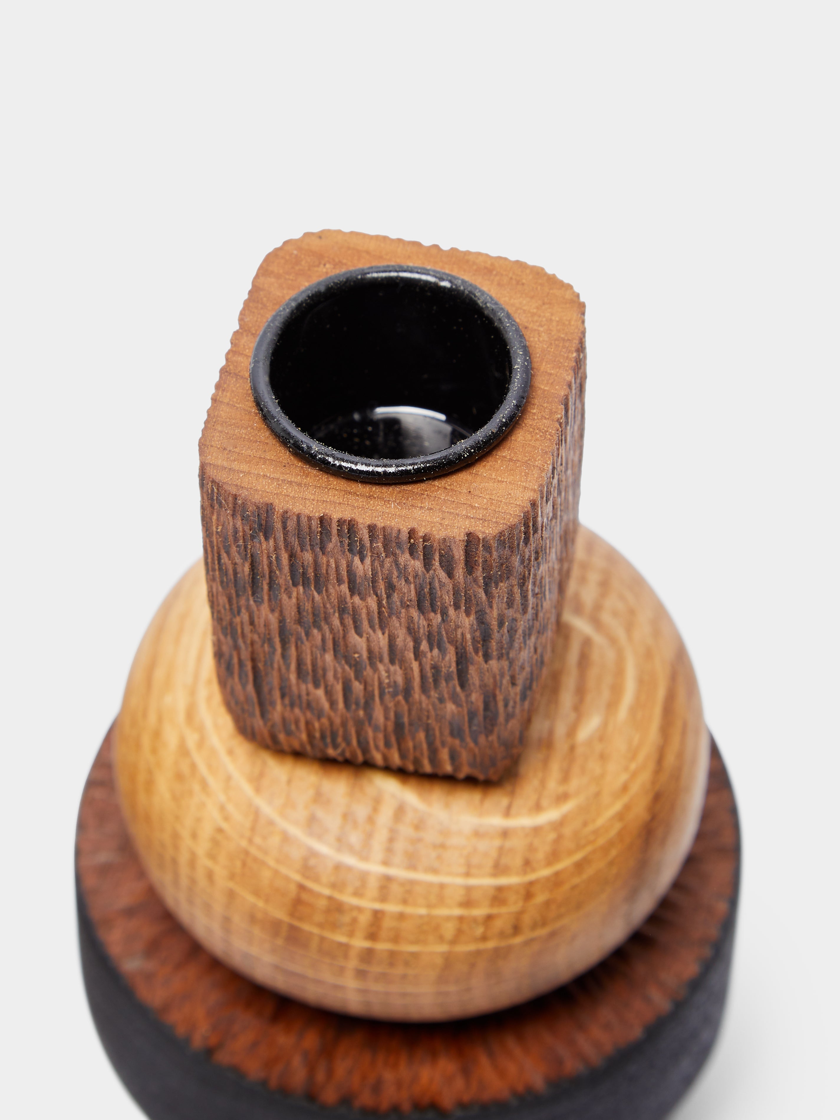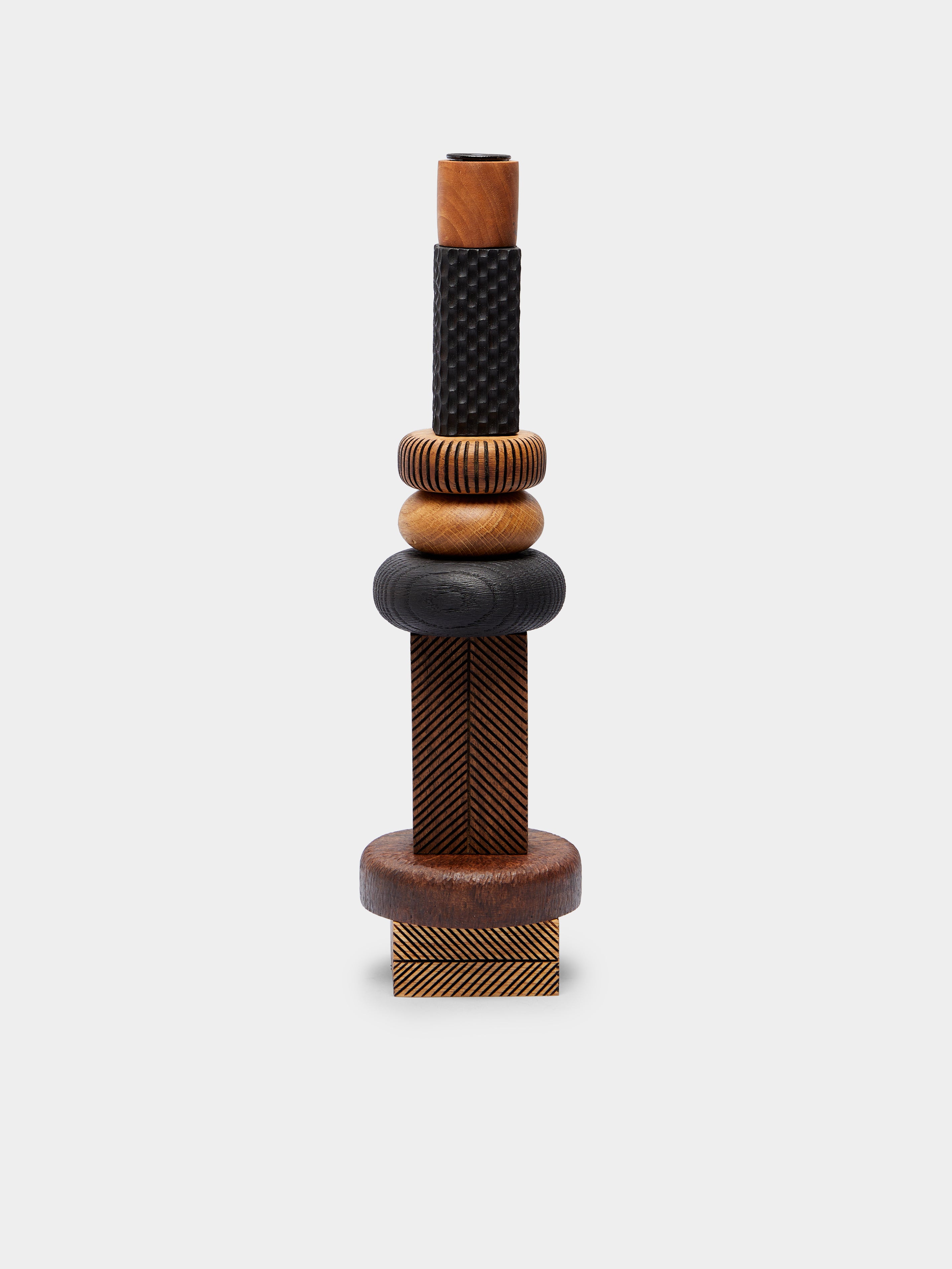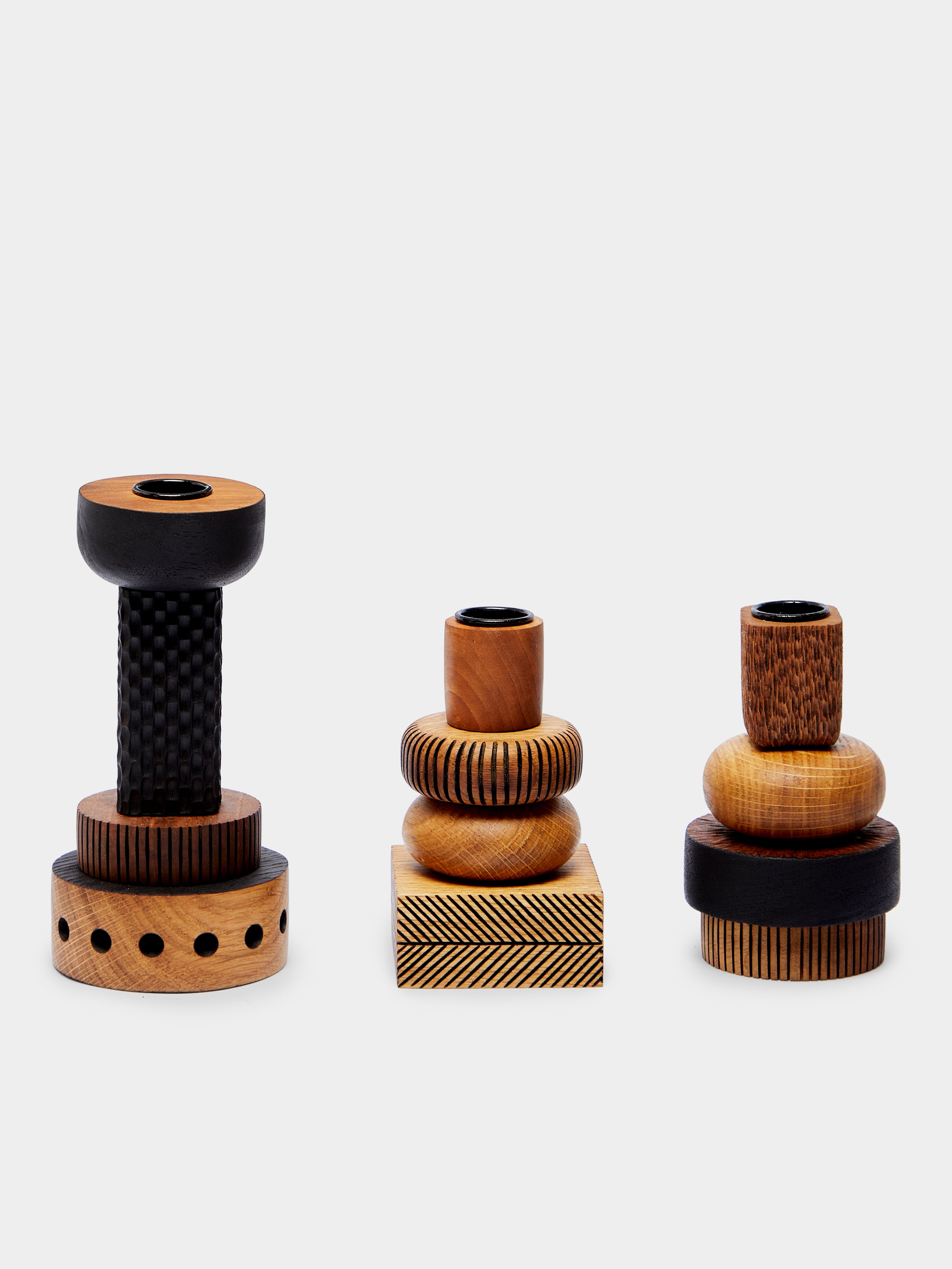 Lucas Castex Hand-Engraved Wood Candlesticks (Set of 3)