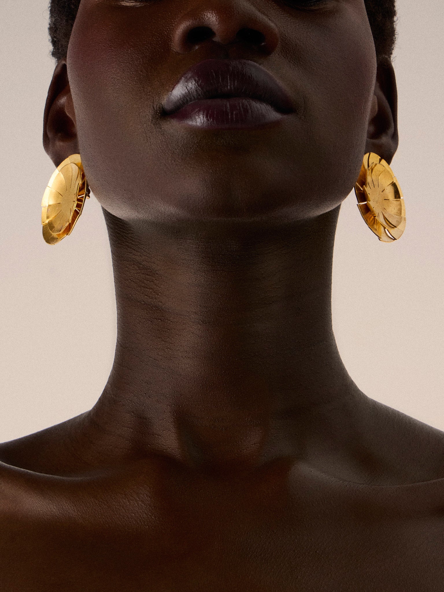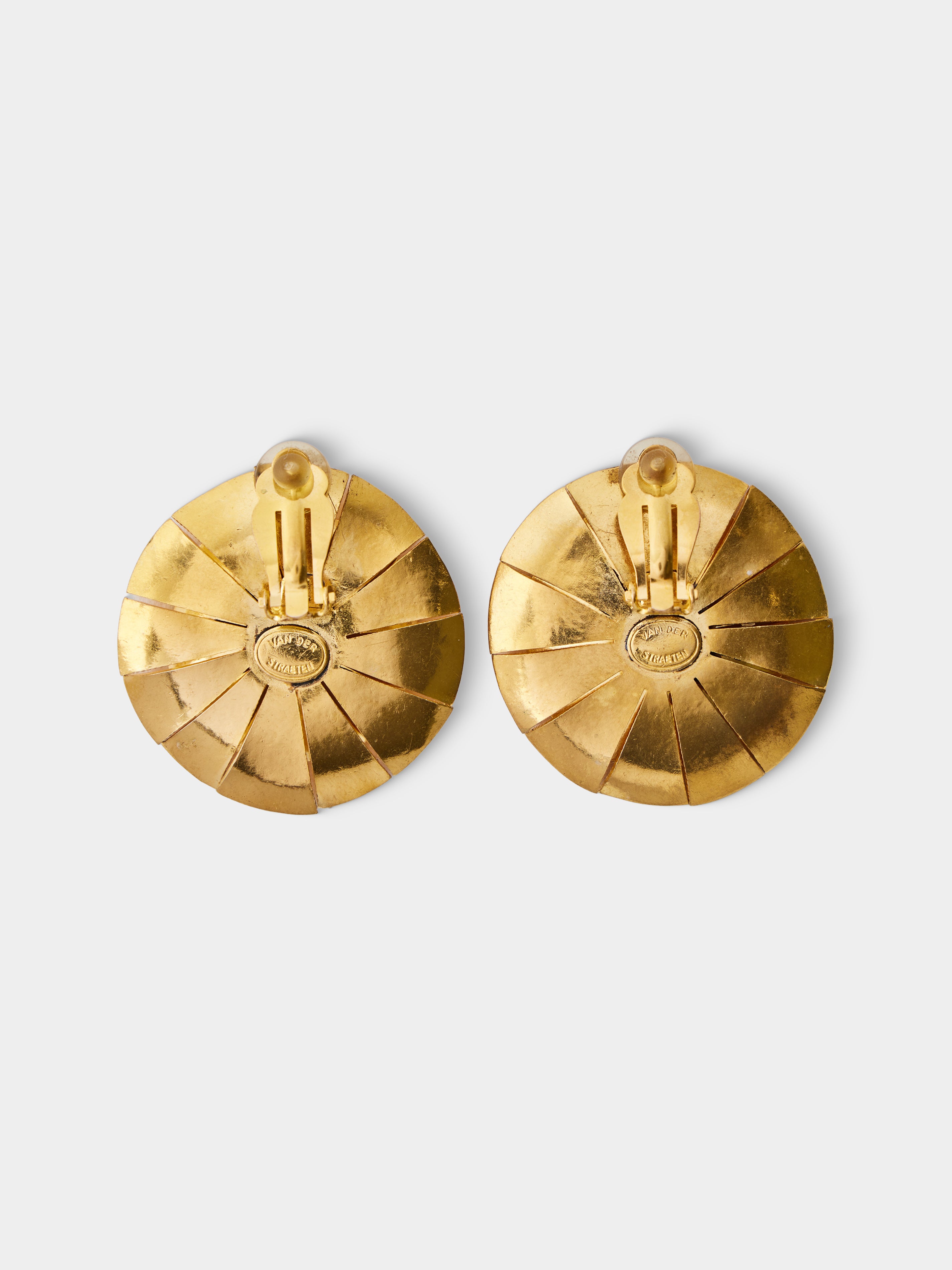 - Gilded brass; Clip Earrings; c. 1985; Hervé Van Der Straeten, France