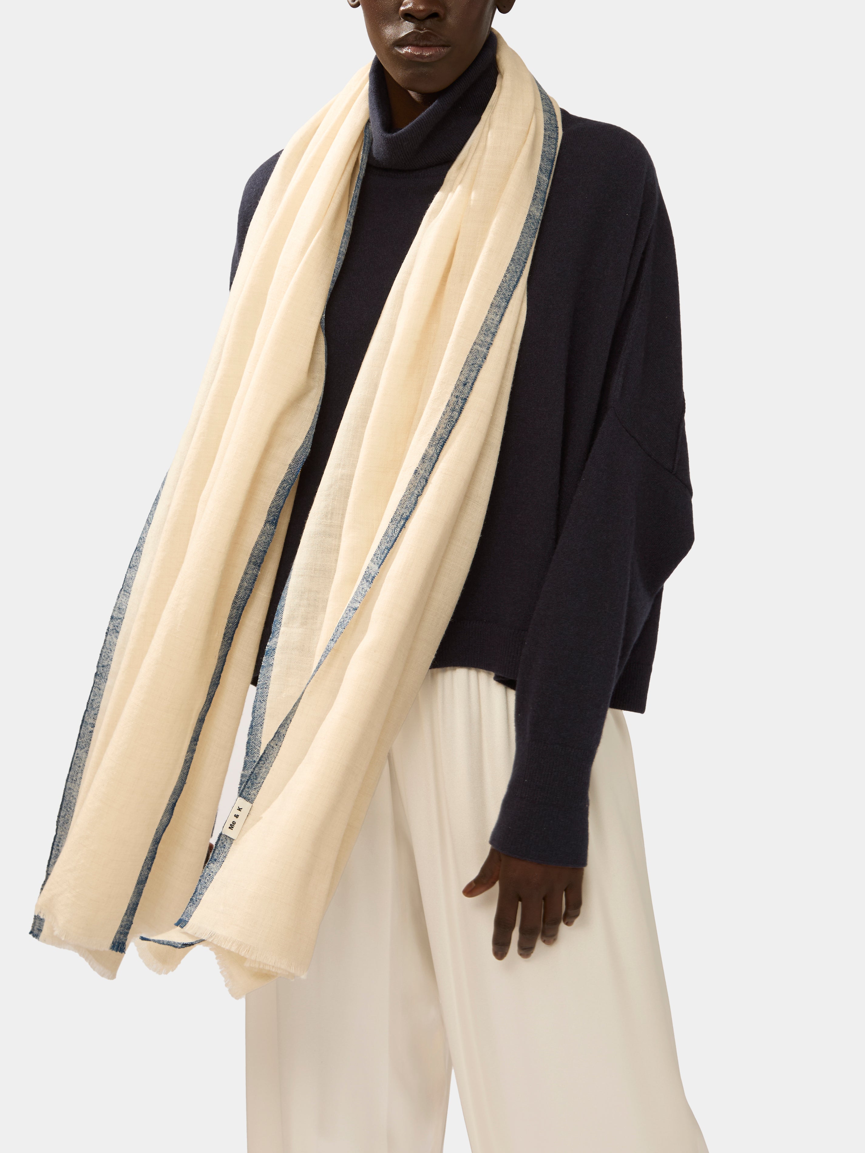 Me & K Cashmere Border-Stripe Scarf (78.5in/2m)