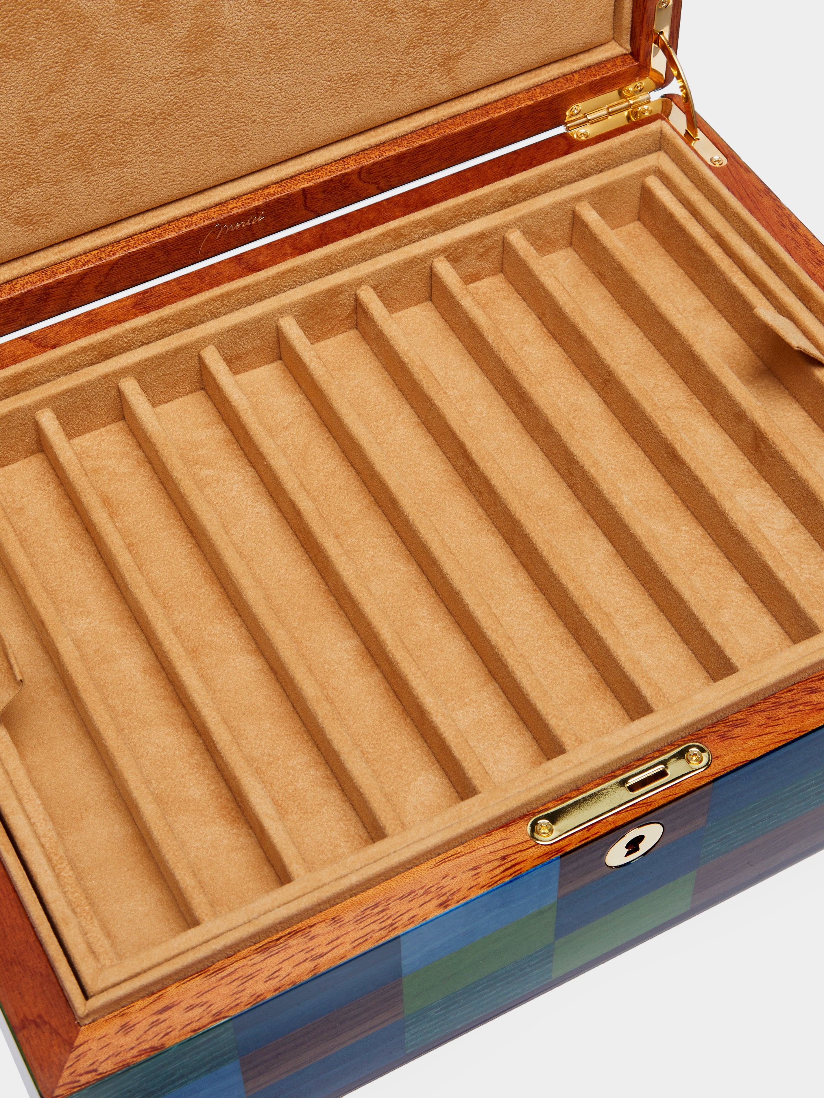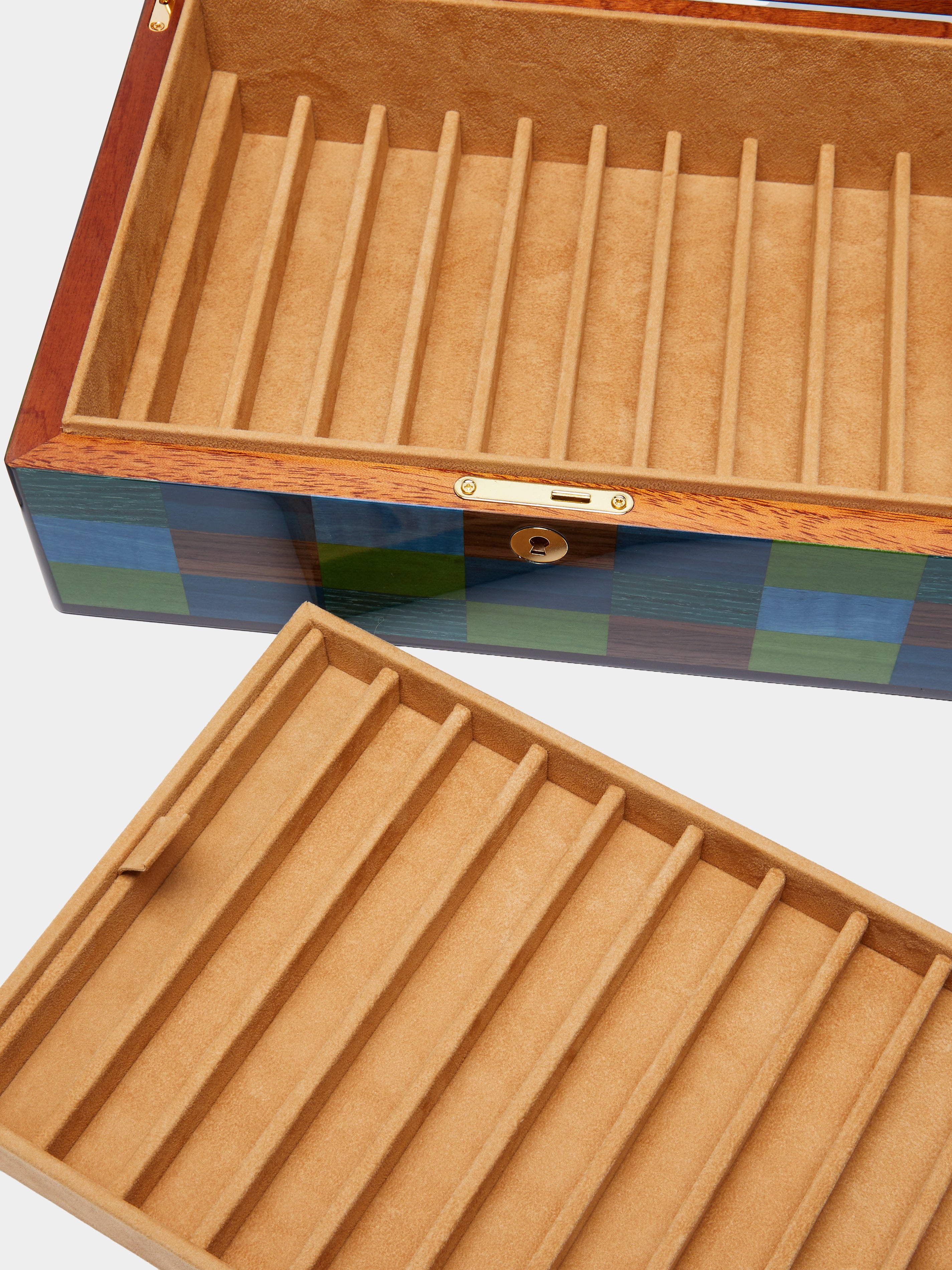 Luciano Morici and his wife Doriana established Morici in 1979 as an output for their shared love of fine craftsmanship. They set up base in their hometown of Recanati, a small Italian village with a reputation as the cradle of craftsmanship in the Marche region. Today, the family name is held up by Mirco Morici – Luciano and Doriana’s son – who continues to spread the word about the centuries-old Italian tradition of artistic woodworking. Their boxes and accessories tell stories through mosaic wood inlays, high-impact colour palettes and glossy finishes, all of which are carefully curated to enhance the naturally dyed, meticulously chosen wood veneers.