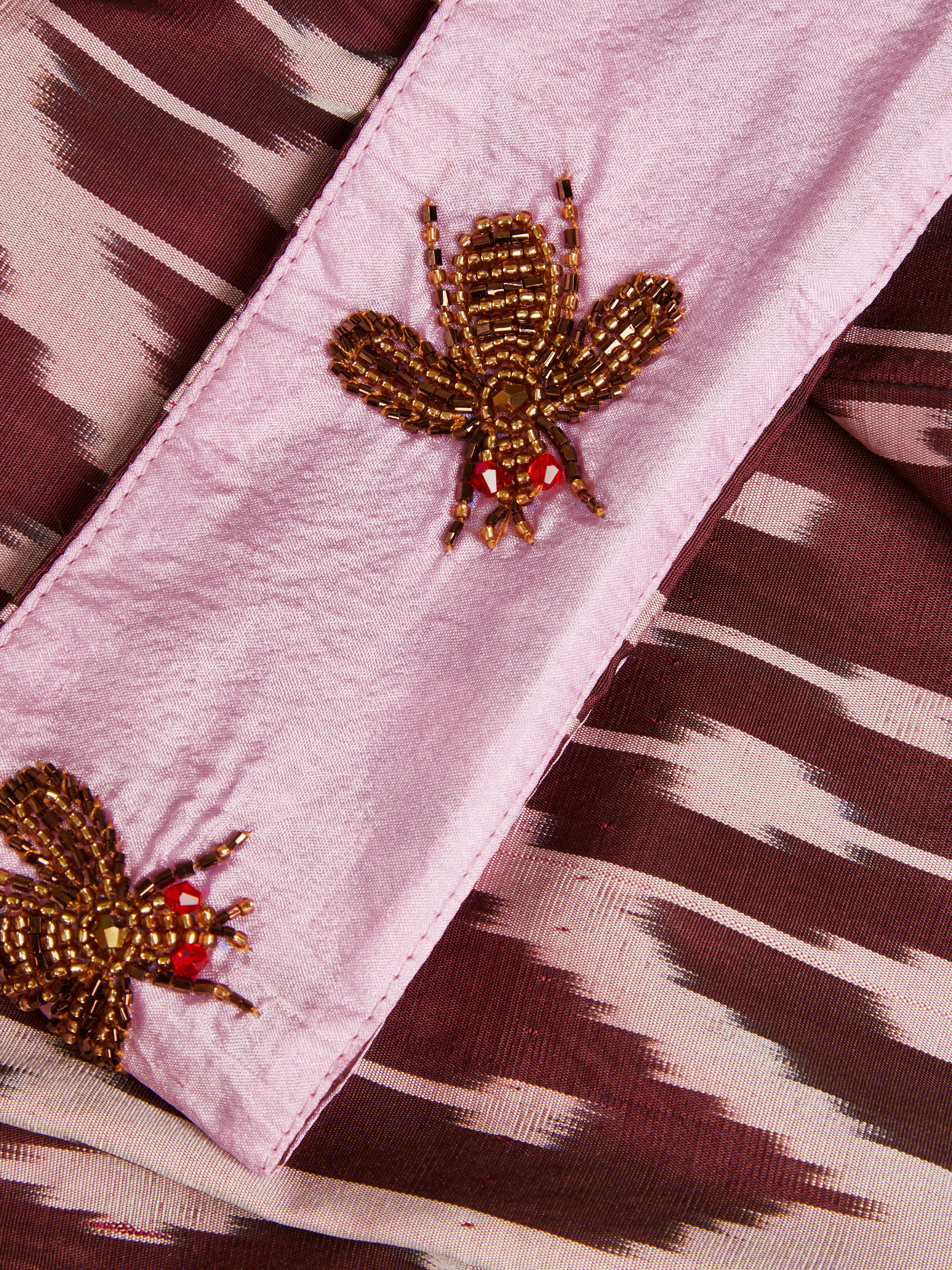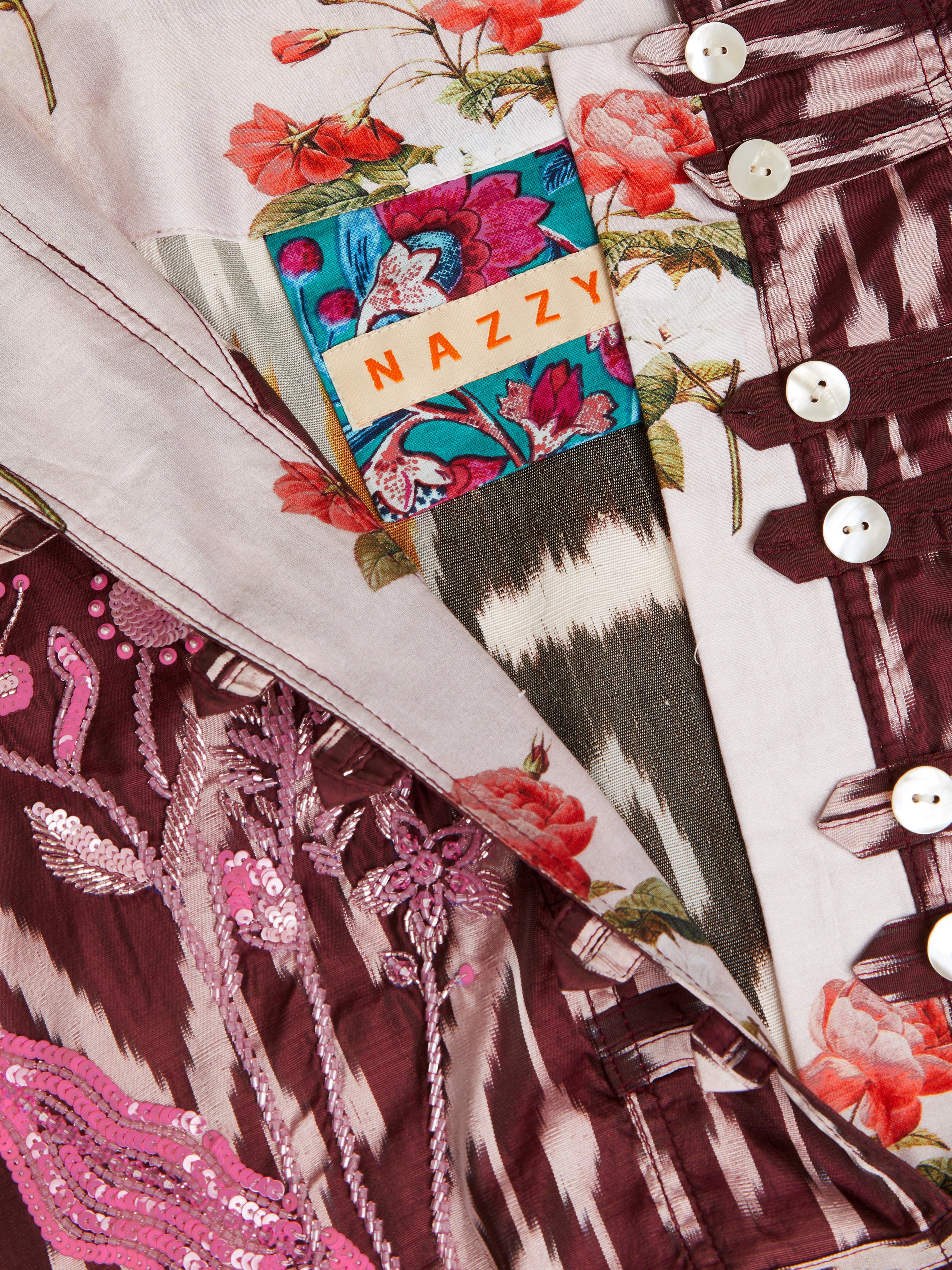 Nazzy Beglari has been enamoured by the ever-evolving art of ikat for as long as she can remember, and she spent years delving into its rich history – a form of investigative work she credits to her journalistic background. While studying double ikat, she learned of the Salvi family in Ahmedabad, India, who have been mastering the technique since the 11th century. To further her understanding, she visited them, and was blown away by their museum, workshop and heritage. This isn’t the only example, as she also works closely with 1853-founded Chikusen in Tokyo, which is widely regarded as one of the finest fabric houses in Japan. Her dedication to the finest make is underpinned by her strict zero-waste philosophy, as all cut-offs are used on collars, cuffs or to make lavender-scented pouches that she tucks away inside her reusable cotton packaging.