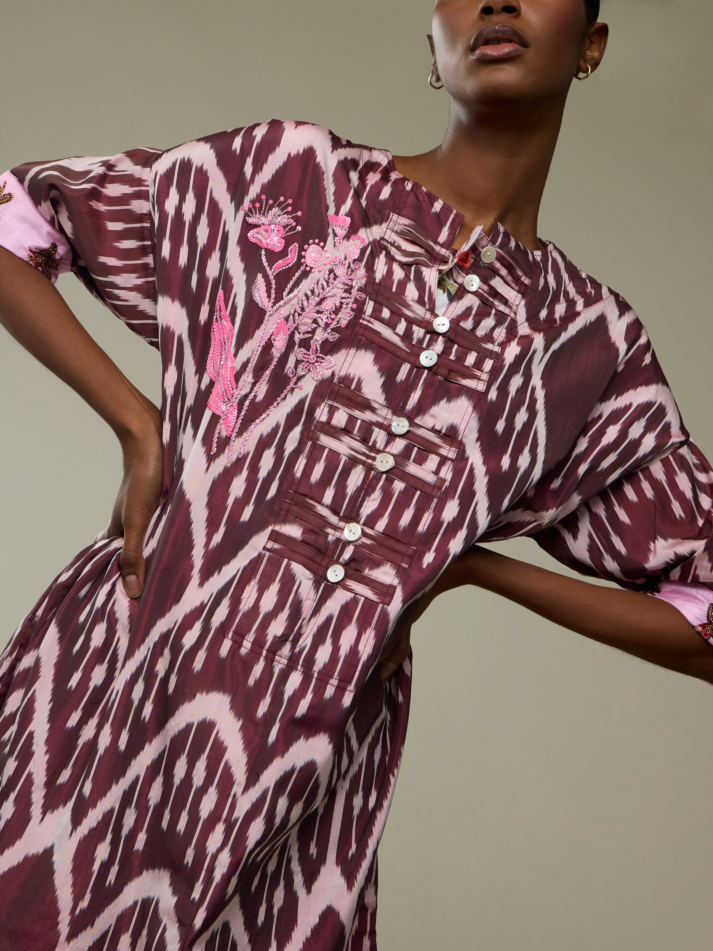Nazzy Beglari Hand-Loomed Ikat Silk and Cotton Dress | One Size
