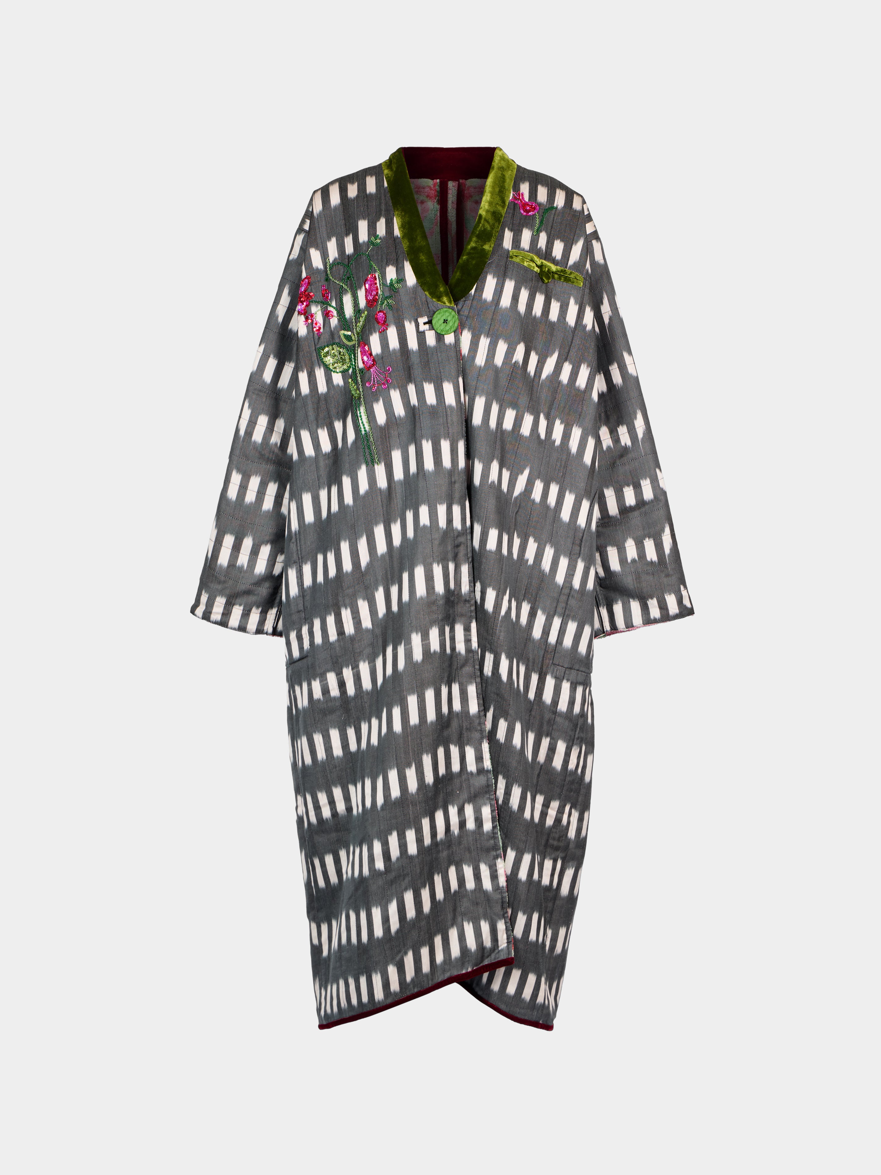 Nazzy Beglari Hand-Loomed Ikat Velvet Reversible Robe | One Size