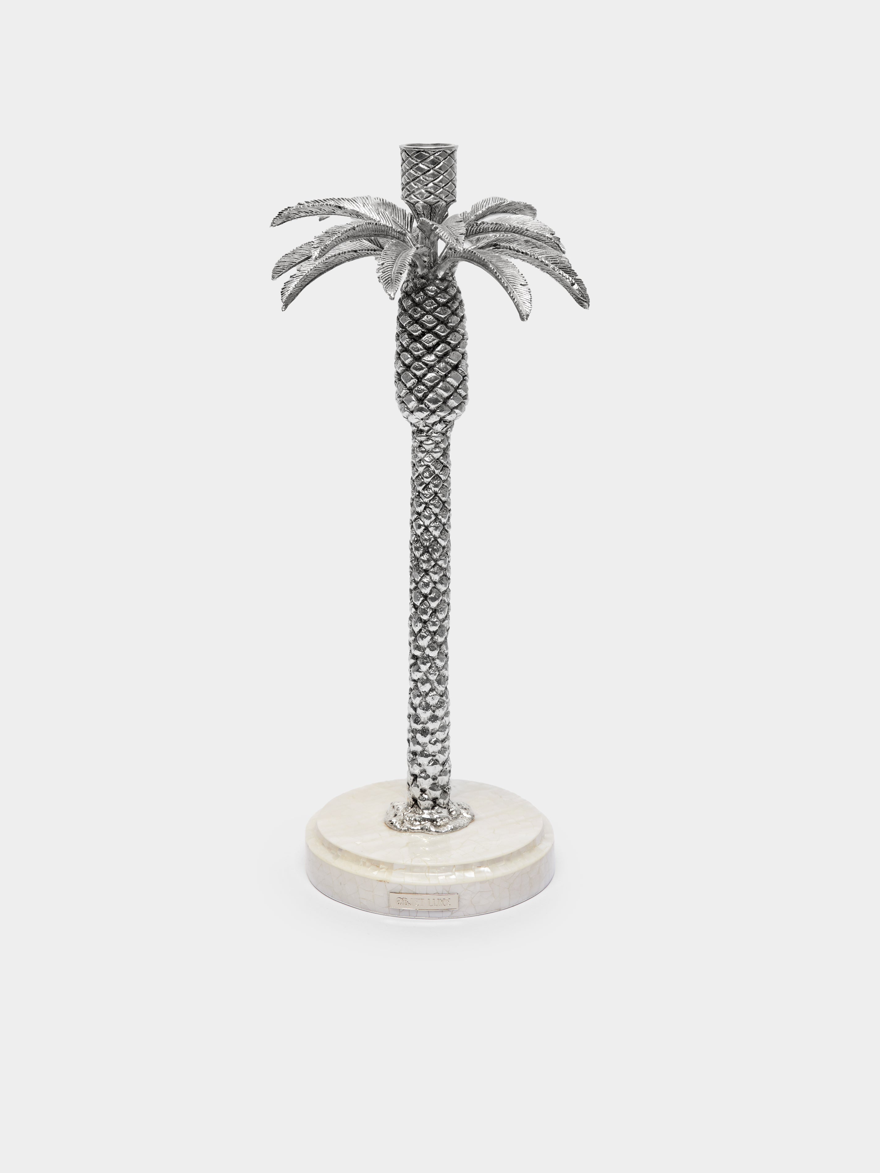 Objet Luxe Palm Tree Silver-Plated and Shell Candlestick