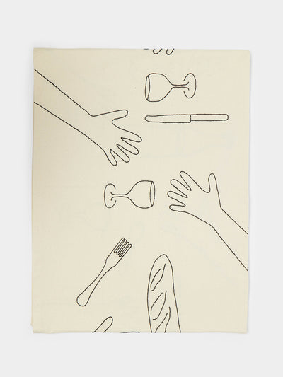 From her studio in Marseille, French artist Sarah Espeute – founder of Oeuvres Sensibles – handcrafts embroidered table linen that has a poetic, minimalist slant. She sources her linen and cotton from all over France, hand-selecting fabrics with rich family histories and lifespans of around 50-100 years. Each modest piece, be it a napkin or tablecloth, tells a story of its own, capturing nostalgic moments through humble scenes from daily life. Our curation is exclusively hand-embroidered with designs centred around outdoor gatherings with loved ones, a theme that’s sure to elicit a warm, affectionate response.