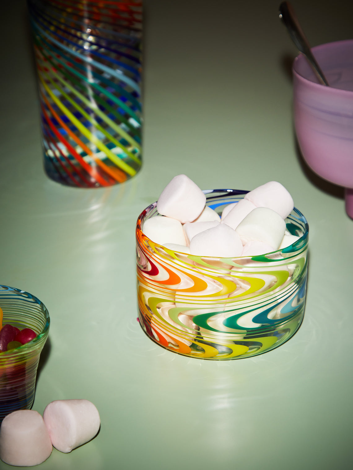 French glassmaker, Pierrot Doremus set up his own workshop in Gramat, aiming to perfect his crystal-making expertise - namely, his signature style and the celebrated Murano filigree technique. Established in the Renaissance period, the process involves intertwining long, colourful glass rods which are wrapped around a glass cylinder and blown and manipulated into any shape.