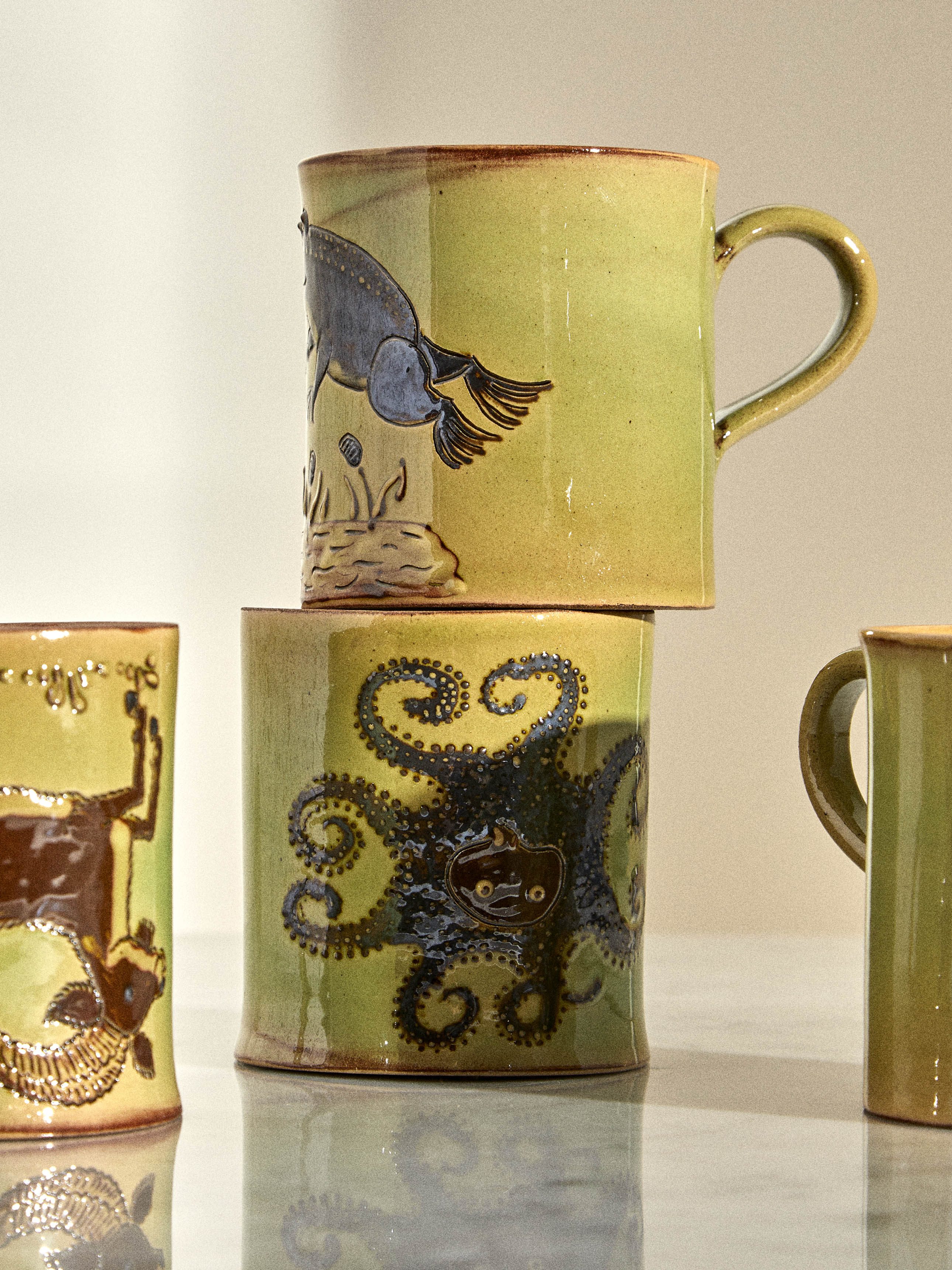 Poterie d’Évires Animals Hand-Painted Ceramic Mugs (Set of 4)