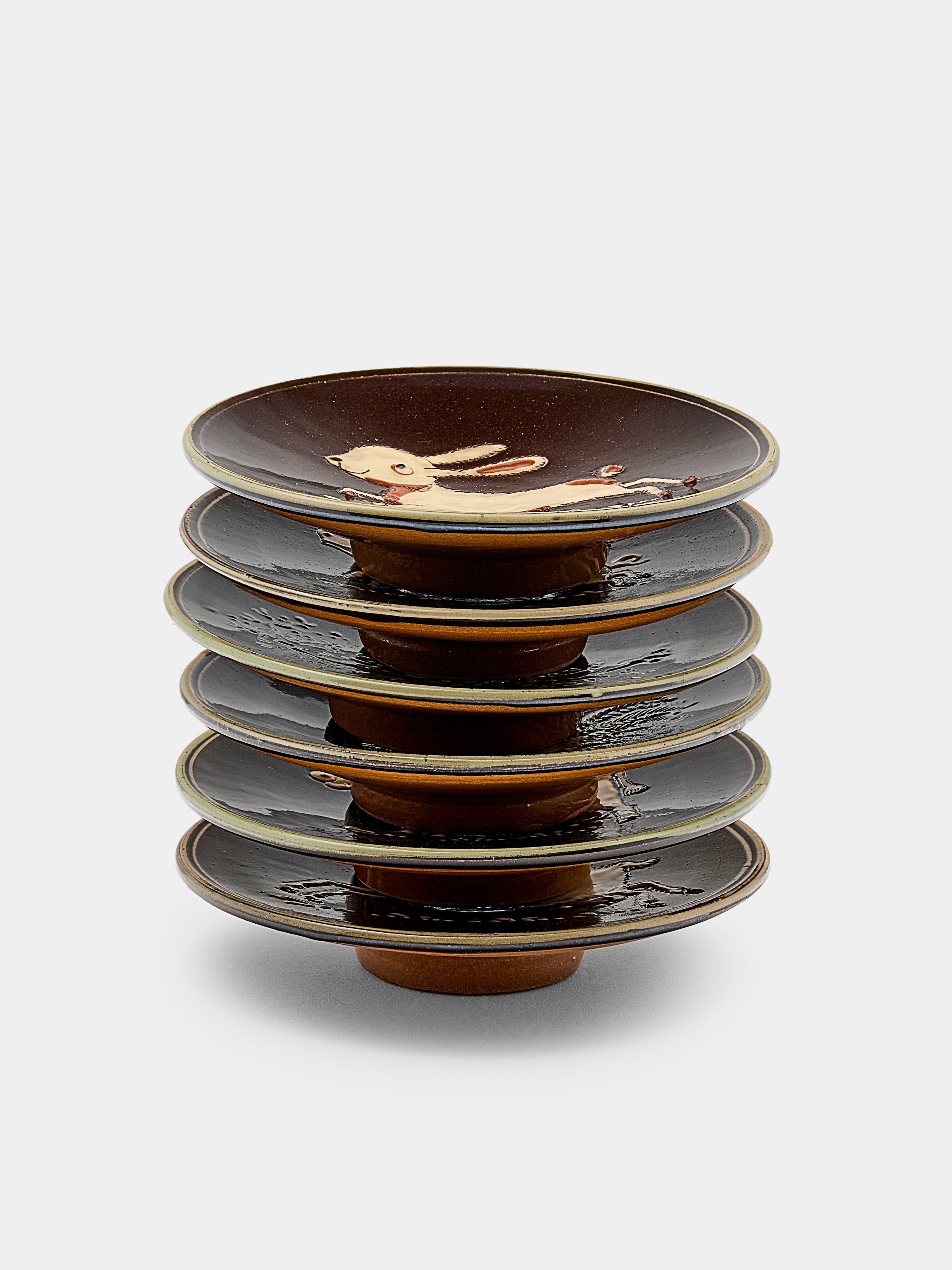 Poterie d’Évires Animals Hand-Painted Ceramic Raised Plates – 5.5in/14cm (Set of 6)