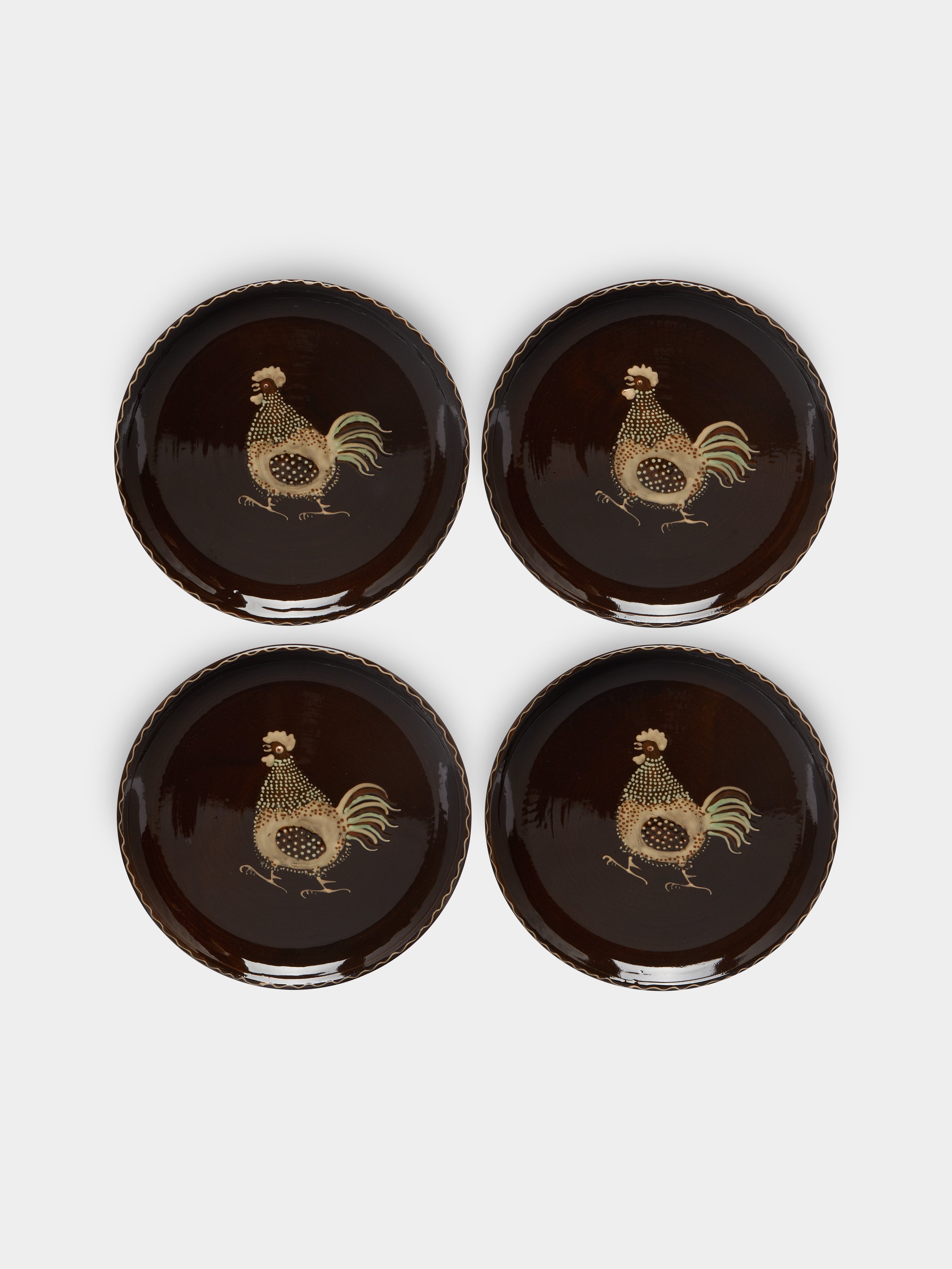 Poterie d’Évires Chickens Hand-Painted Ceramic Dinner Plates – 9.5in/24cm (Set of 4)
