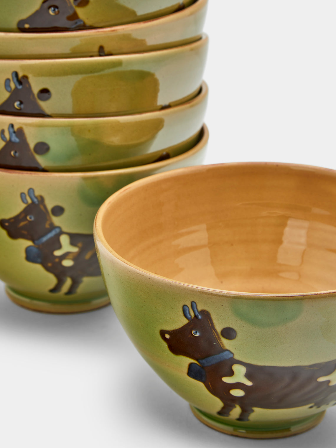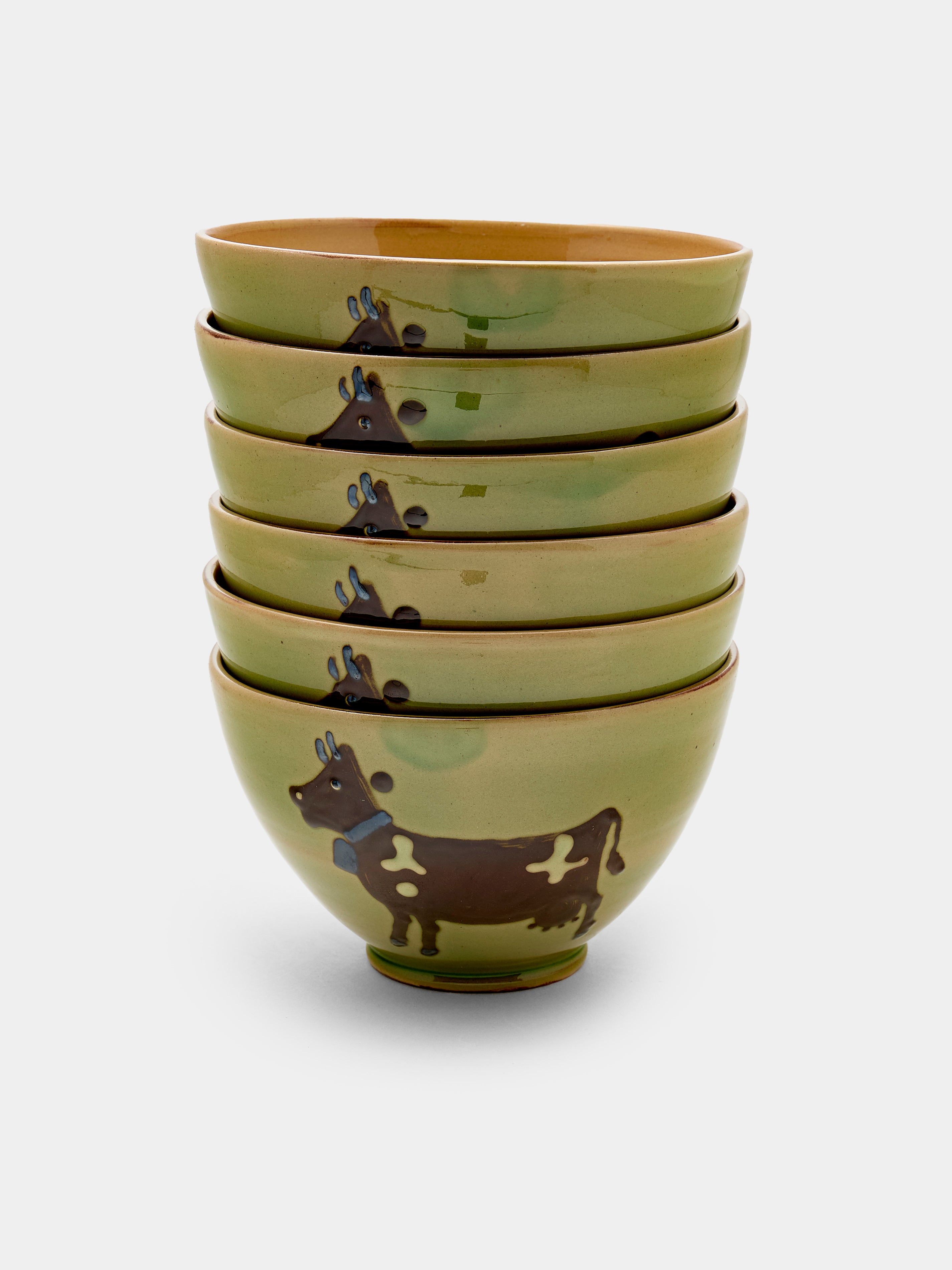 Poterie d’Évires Cows Hand-Painted Ceramic Bowls (Set of 6)