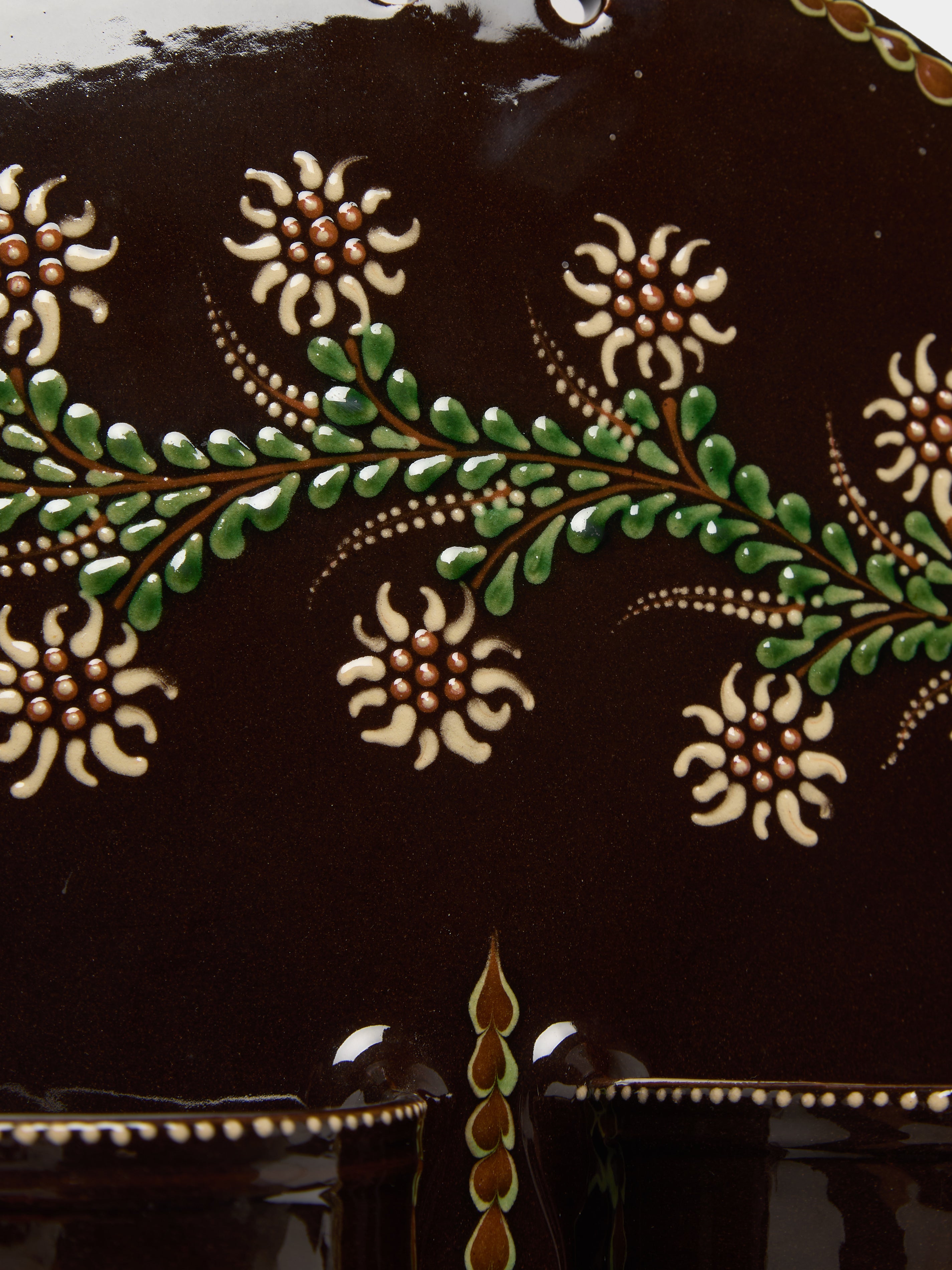 Poterie d’Évires Flowers and Hearts Hand-Painted Ceramic Double Utensil Holder
