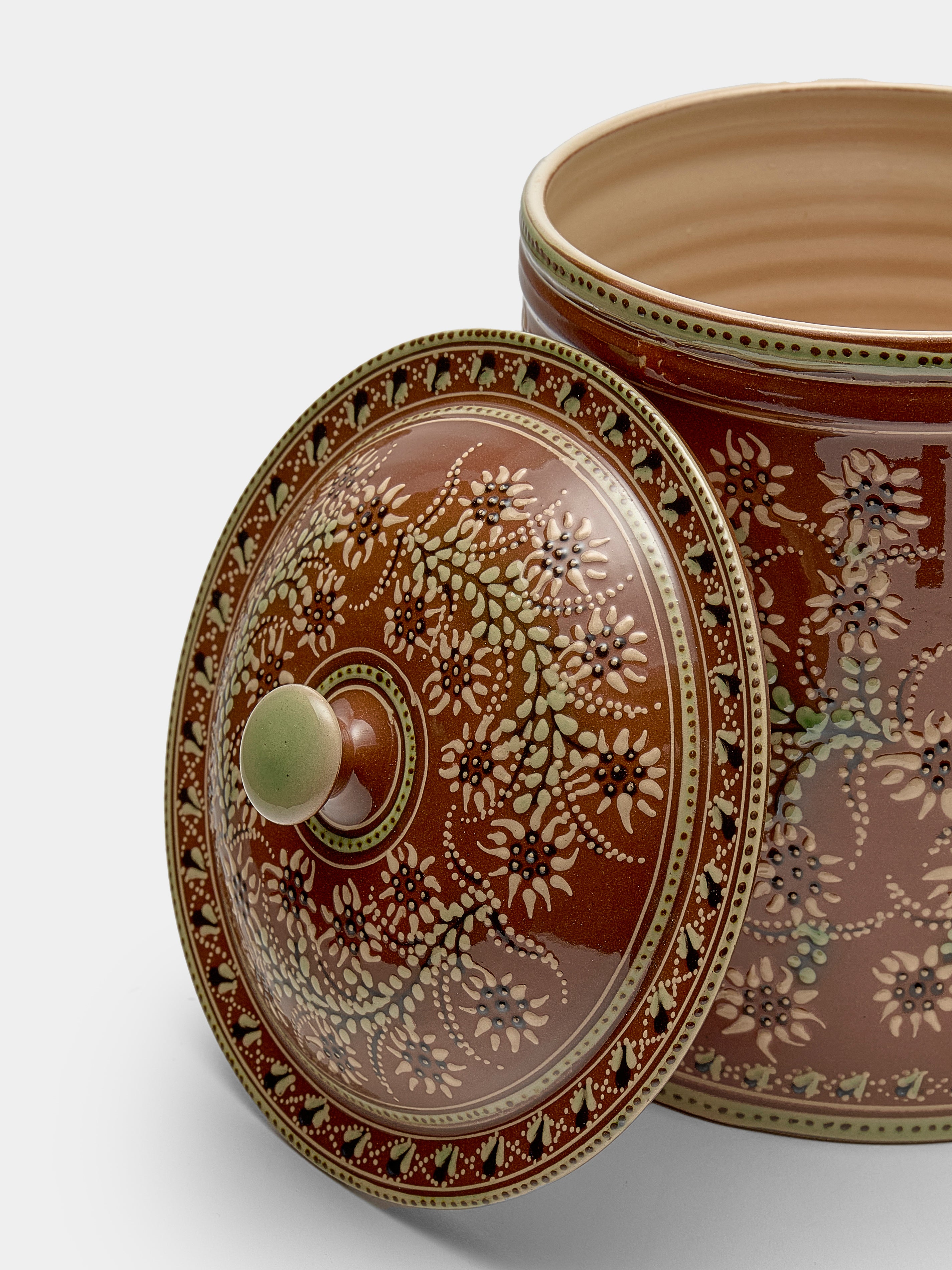 Poterie d’Évires Flowers Hand-Painted Ceramic Large Lidded Pot