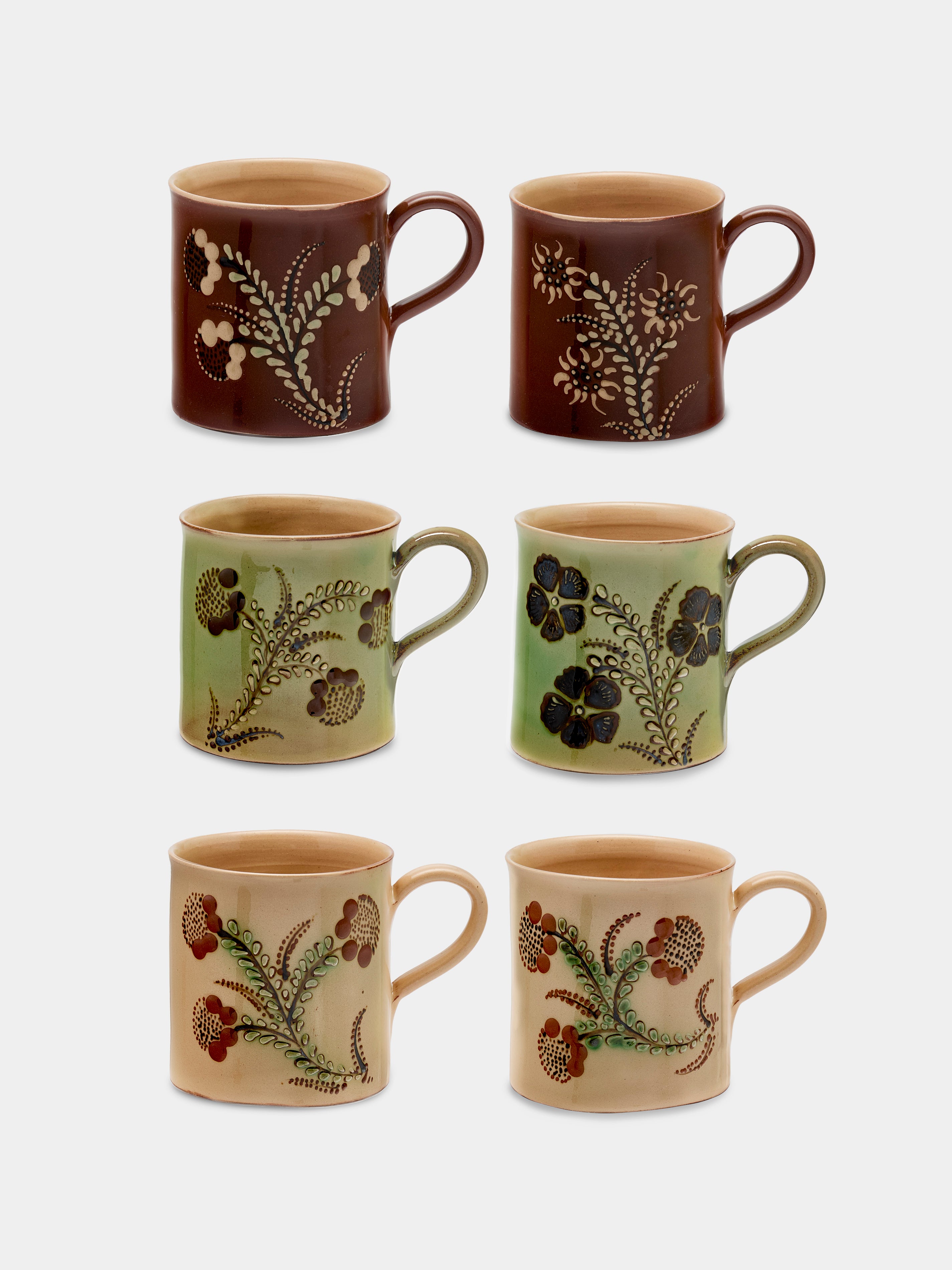 Poterie d’Évires Flowers Hand-Painted Ceramic Mugs (Set of 6)