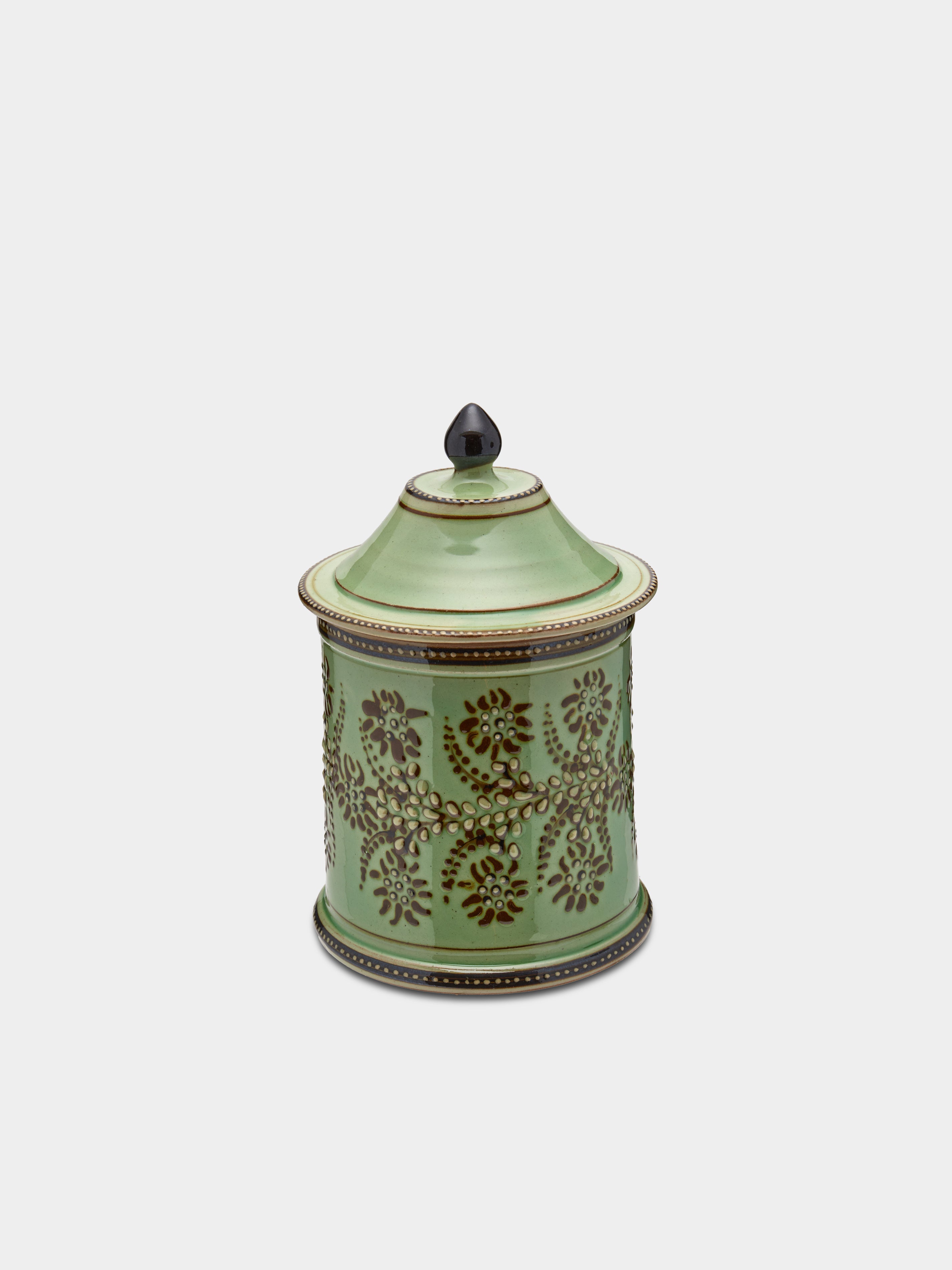 Poterie d’Évires Flowers Hand-Painted Ceramic Small Lidded Pot