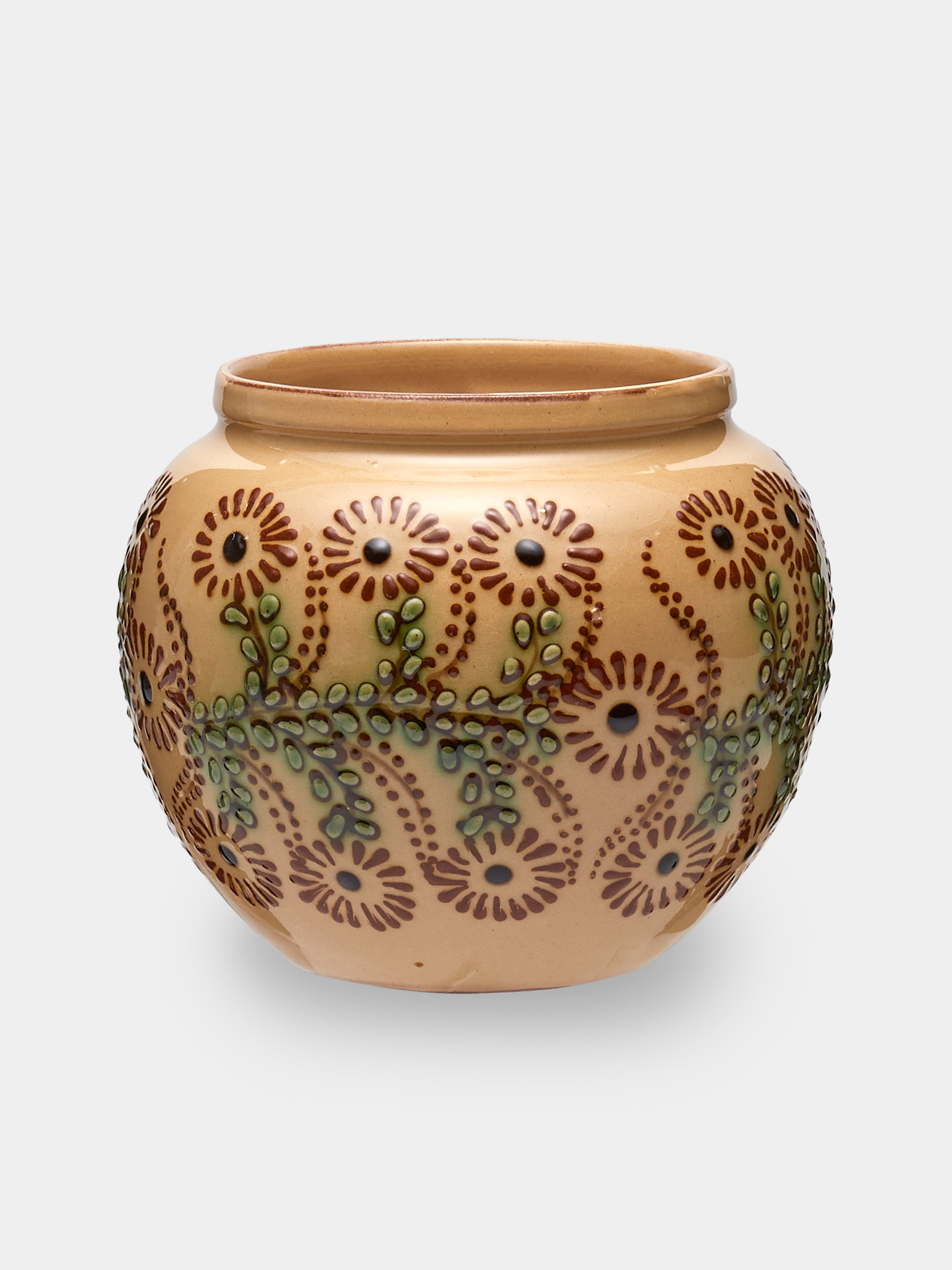 Jean-Christophe Hermann grew up near Lake Annecy in France, and recalls visiting an old pottery at just five years old that inspired him to pursue ceramics – a moment that led to the opening of Poterie d’Évires in 1971. Influenced by the landscape of their Haute-Savoie home, the Hermann family – Jean-Christophe and David, the father and son duo – hand-paint local delights onto their light, earthy and decorative clay; alpine flowers like tiny crocuses and soldanellas often feature, as well as native creatures such as Chamois and Ibex. ABASK made a special road-trip to the French Alps to hand-pick a curation from their exquisite collection. In 1981, after exploring his region’s brocante for many years, Jean-Christophe opened a museum dedicated to the pottery and folk art of Savoie. It’s the largest and most comprehensive collection in the world and displays pieces that date as far back as the 12th century.