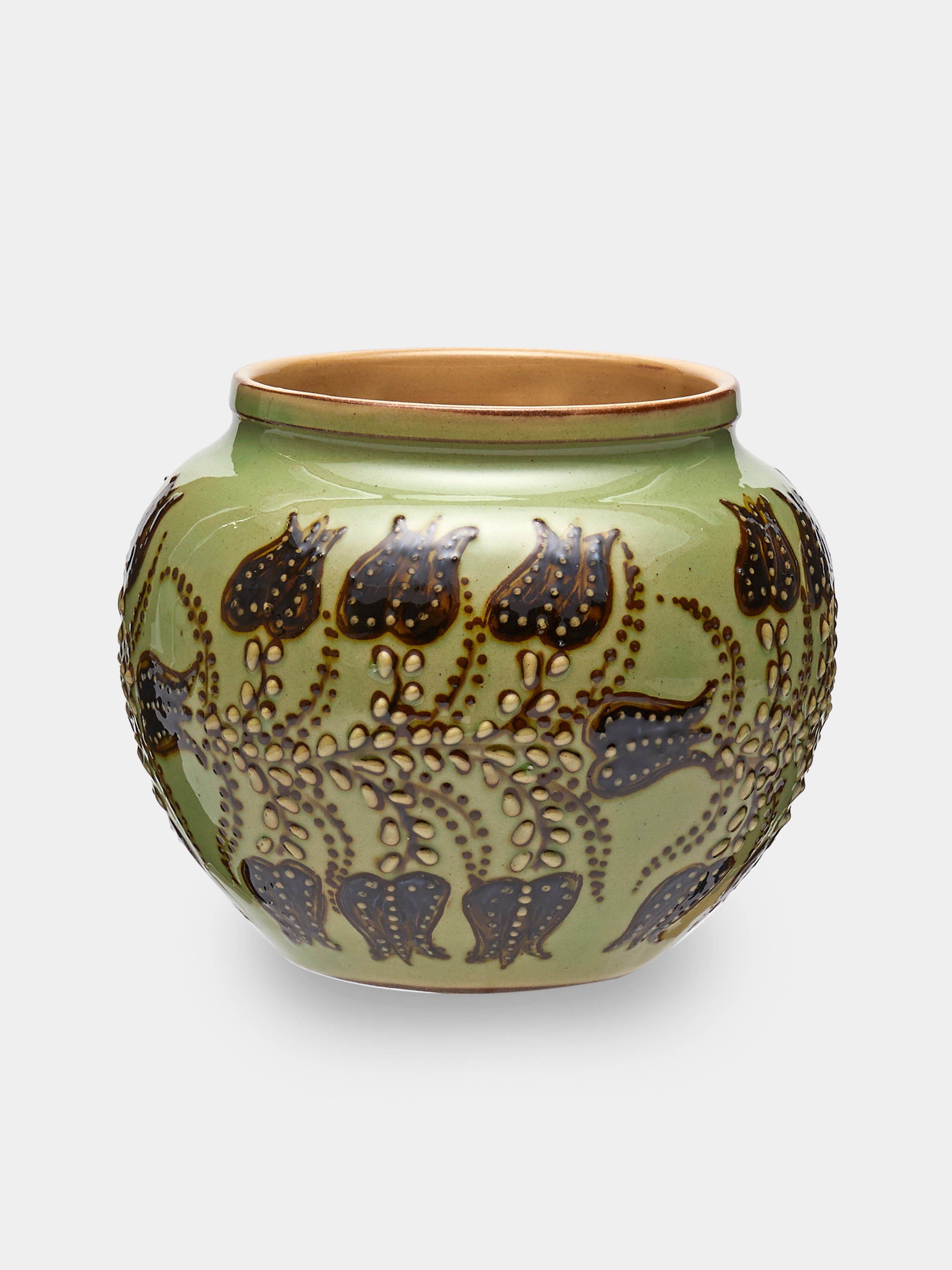 Jean-Christophe Hermann grew up near Lake Annecy in France, and recalls visiting an old pottery at just five years old that inspired him to pursue ceramics – a moment that led to the opening of Poterie d’Évires in 1971. Influenced by the landscape of their Haute-Savoie home, the Hermann family – Jean-Christophe and David, the father and son duo – hand-paint local delights onto their light, earthy and decorative clay; alpine flowers like tiny crocuses and soldanellas often feature, as well as native creatures such as Chamois and Ibex. ABASK made a special road-trip to the French Alps to hand-pick a curation from their exquisite collection. In 1981, after exploring his region’s brocante for many years, Jean-Christophe opened a museum dedicated to the pottery and folk art of Savoie. It’s the largest and most comprehensive collection in the world and displays pieces that date as far back as the 12th century.