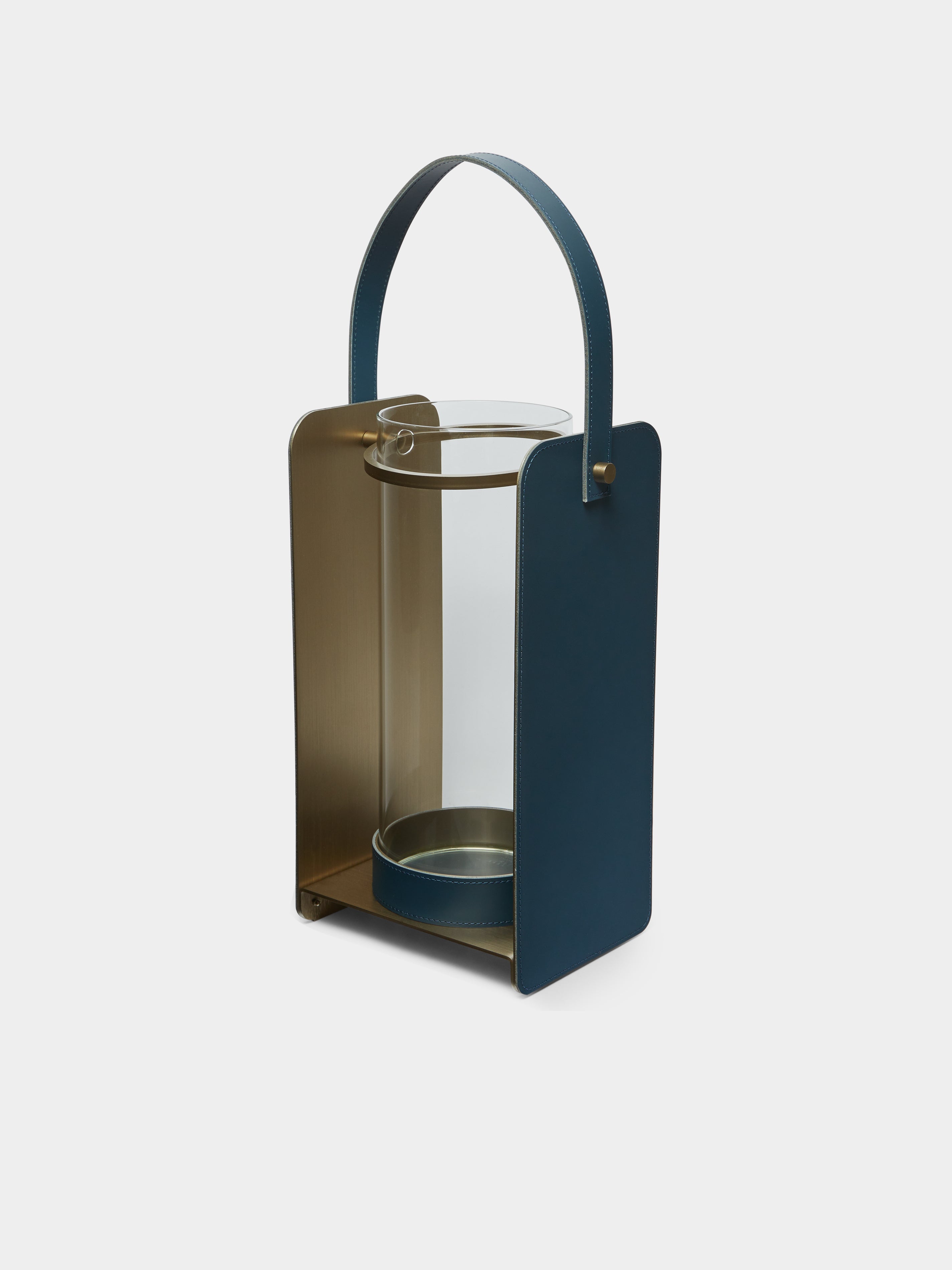 Lumen Glass and Leather Small Lantern39.5cm (h) x 22cm (w) x 14.5cm (d) / 15.4" (h) x 8.6" (w) x 5.7" (l)