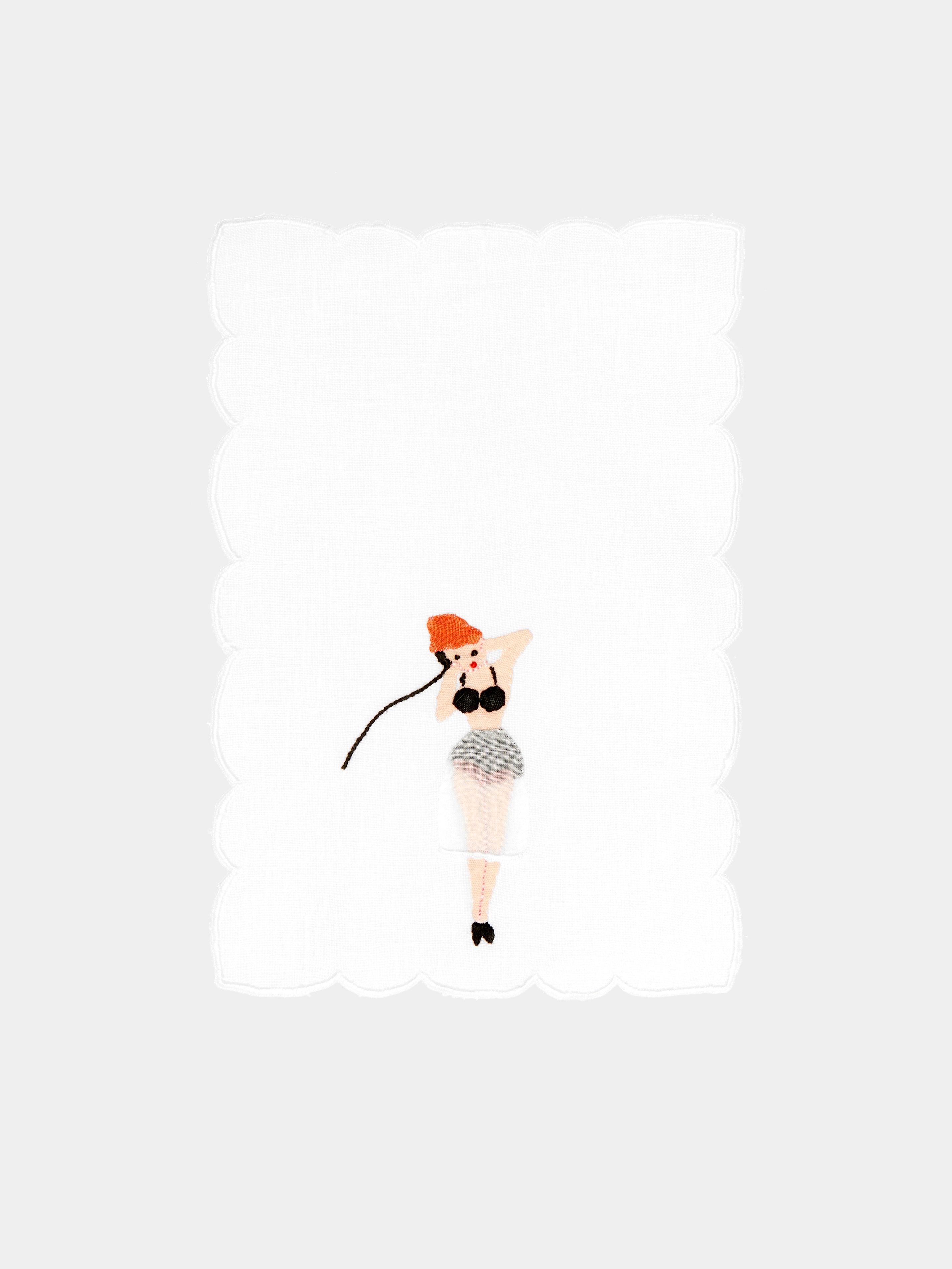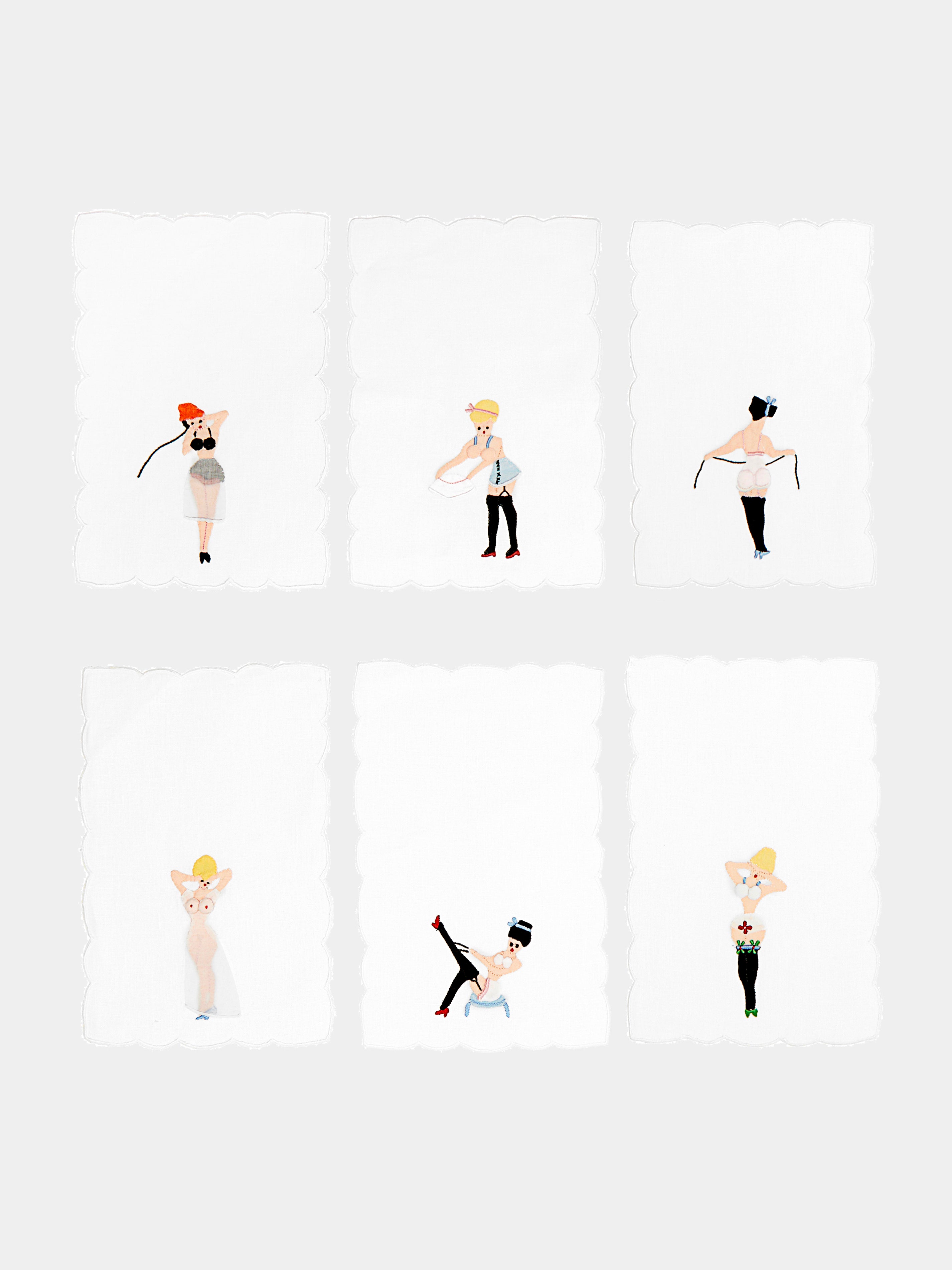 Taf Firenze Donnine Hand-Embroidered Linen Cocktail Napkins (Set of 6)
